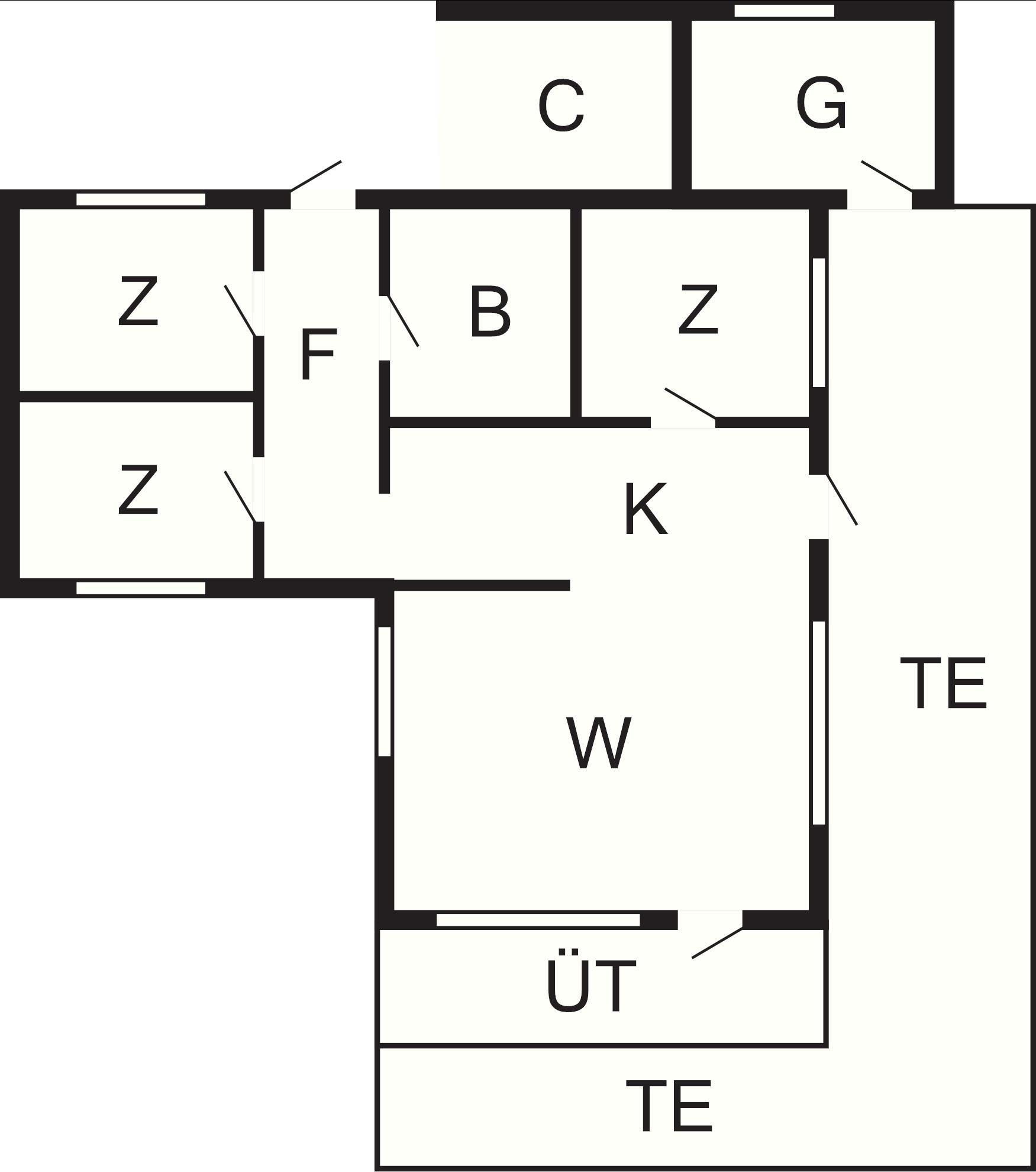 Off. Küche: Hochstuhl, E-Herd, Kühlschr. m. Gefrierfach, Mikrow., Abzugsh., Kaffeem.