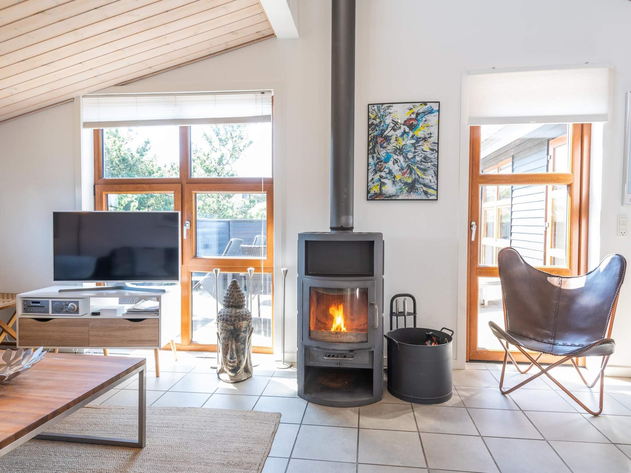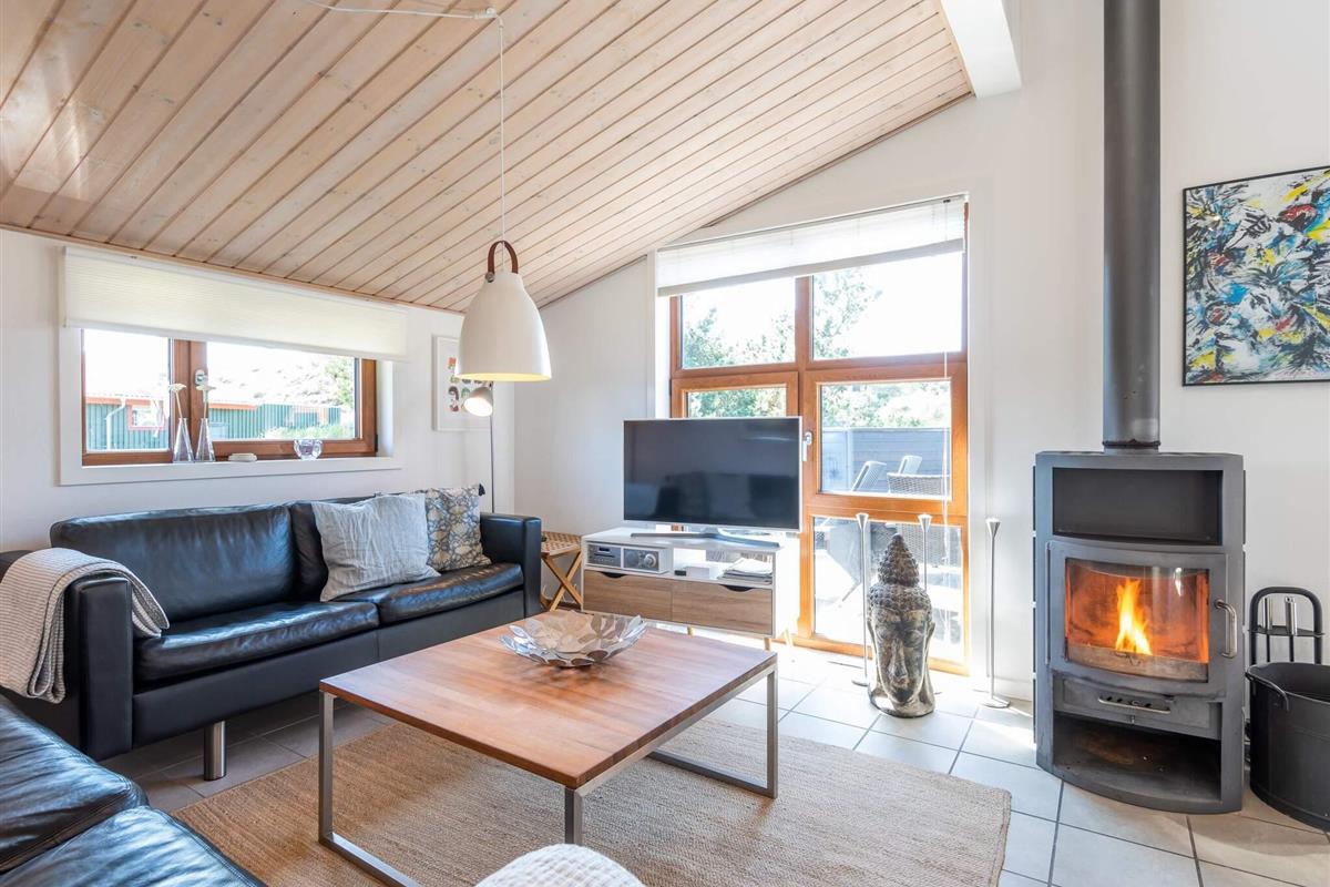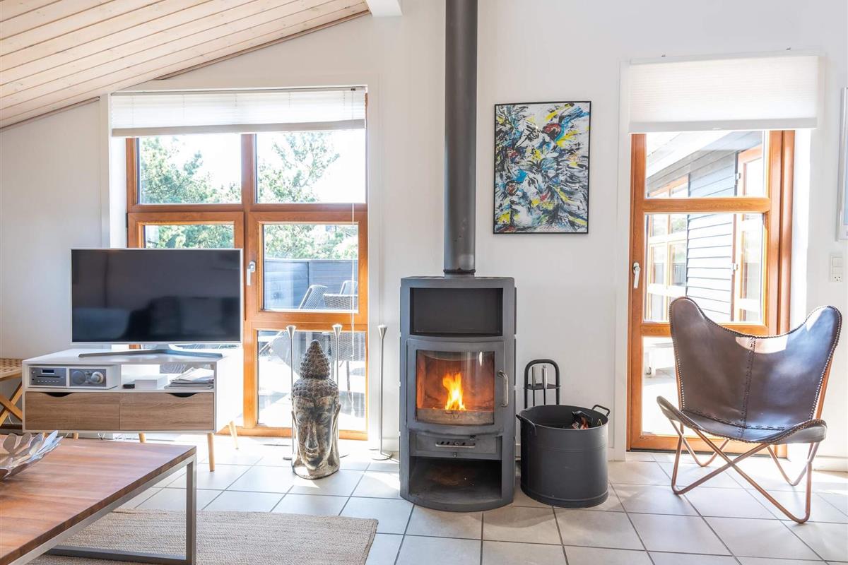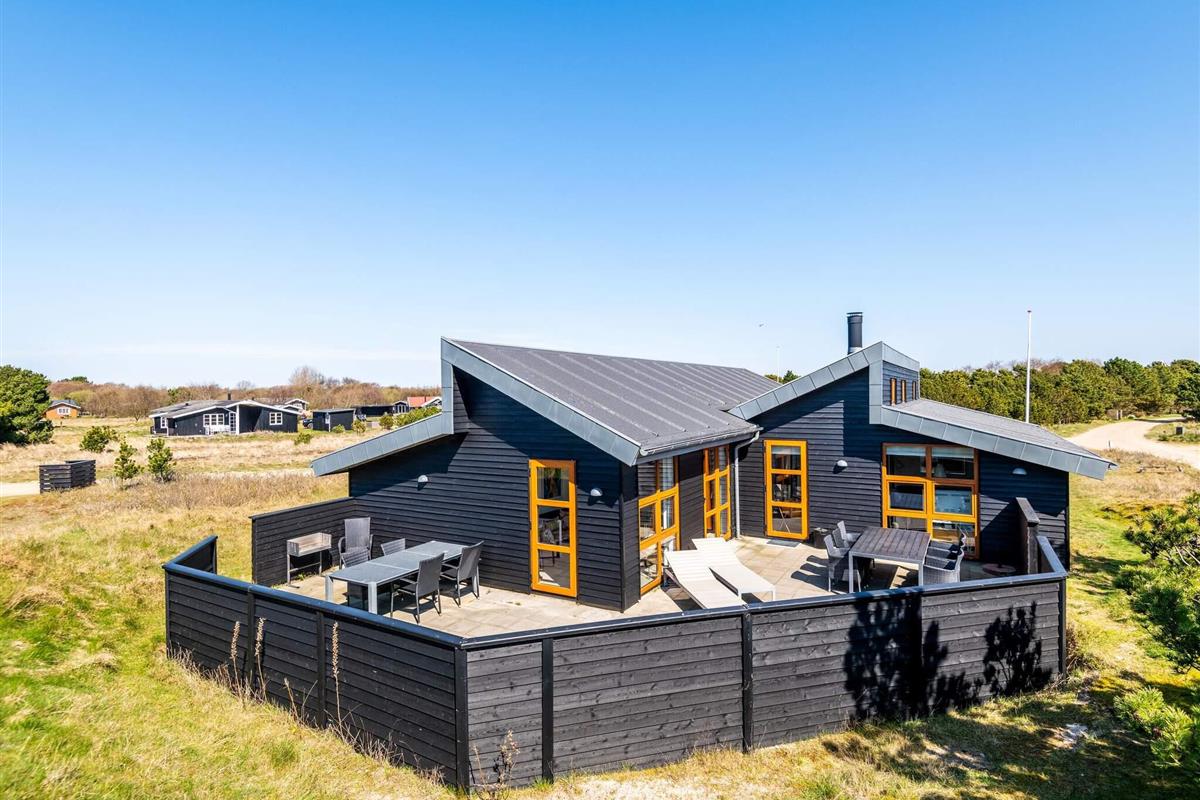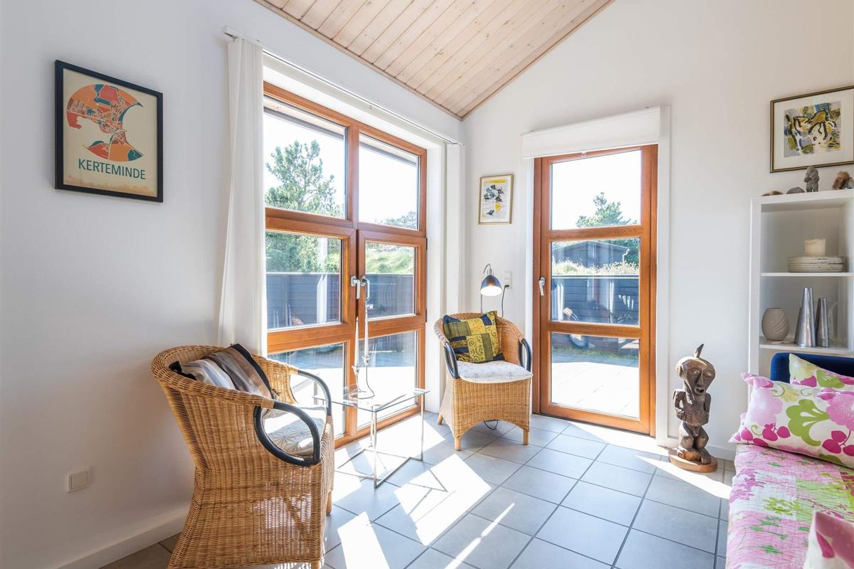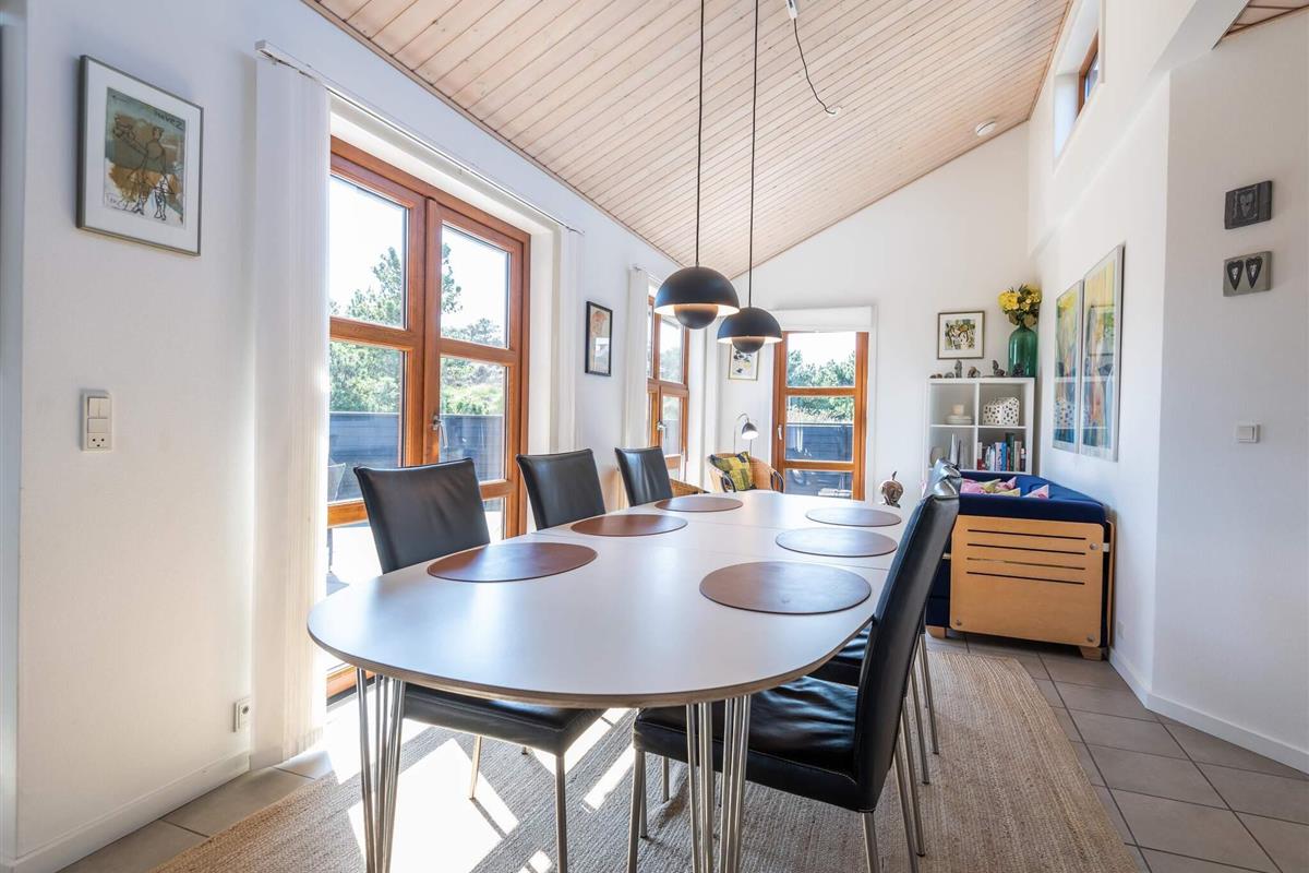 WECHSELTAG FREITAG - Architektgezeichnetes Ferienhaus mit spannenden Details, wie besonderer Lichteinfall, Waschraum und gemütlichen Ecken um das Ferienhaus. Besonders eingerichtet mit jeglicher Ausstattung. Eine grosse Küche mit praktischem Klinkerfussboden und Fussbodenheizung - ein natürlicher Sammelpunkt für die ganze Familie, wenn das Essen zubereitet wird. Von der charmanten Stube, selbstverständlich mit Kaminofen und mehreren Ausgängen auf die Terrassen, ist ein wunderbarer Ausblick auf die Natur, die in dieser Umgebung hügelig ist. Das Ferienhaus hat 2 schöne Badezimmer, von denen das eine Sauna und Badewanne ausgestattet ist. Strand und Einkaufs- möglichkeiten sind in kurzem Abstand. Ein wirklich schönes,durchdachtes Ferien- haus in Rindby. Schöne Ferienhäuser auf Fanö an der Nordsee in Dänemark! Endreinigung ist im Preis enthalten!