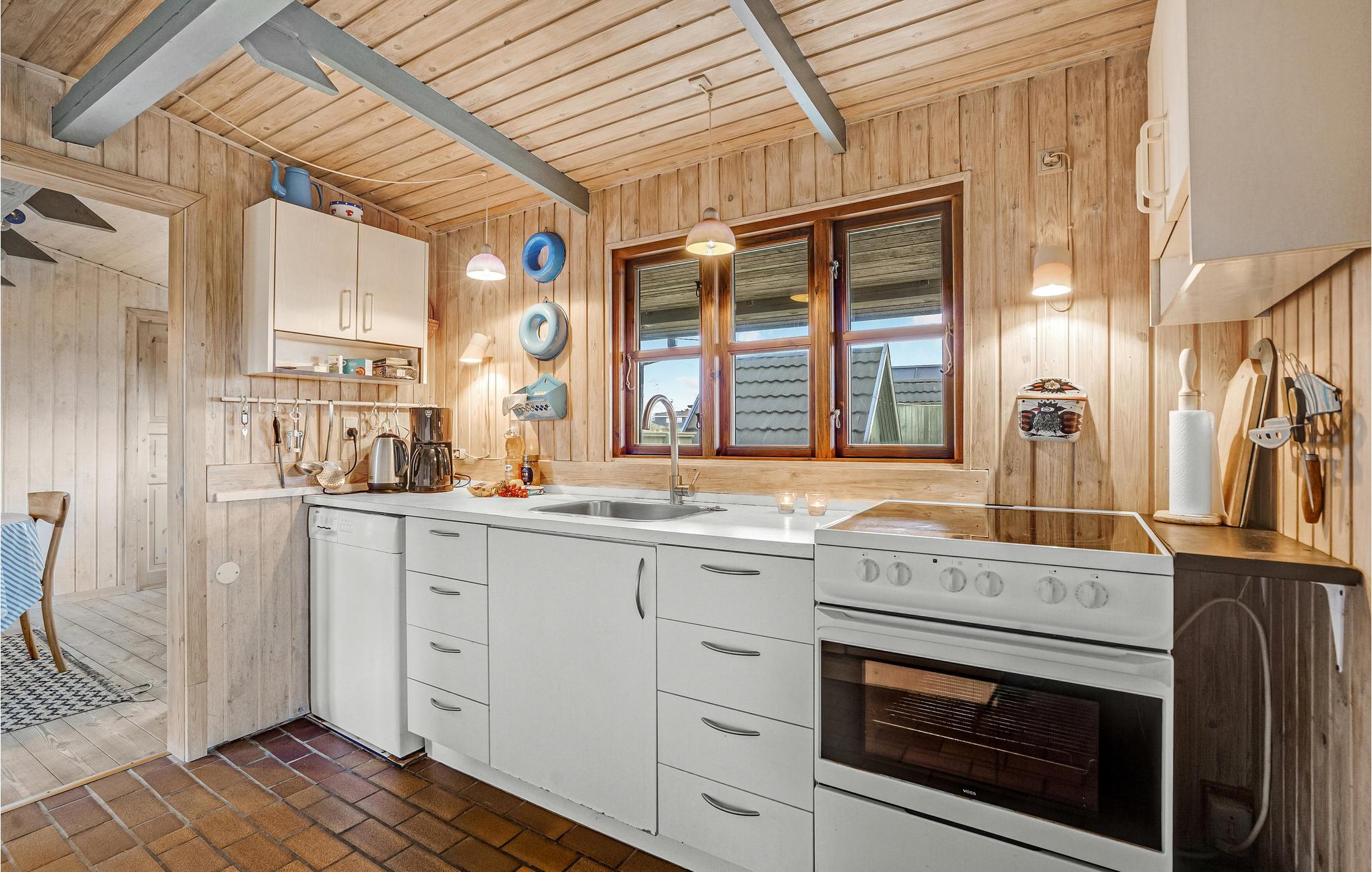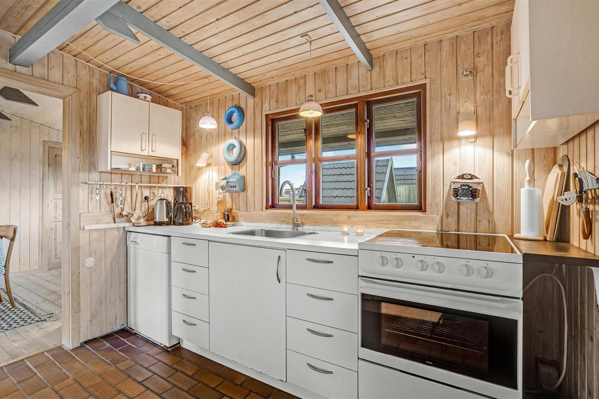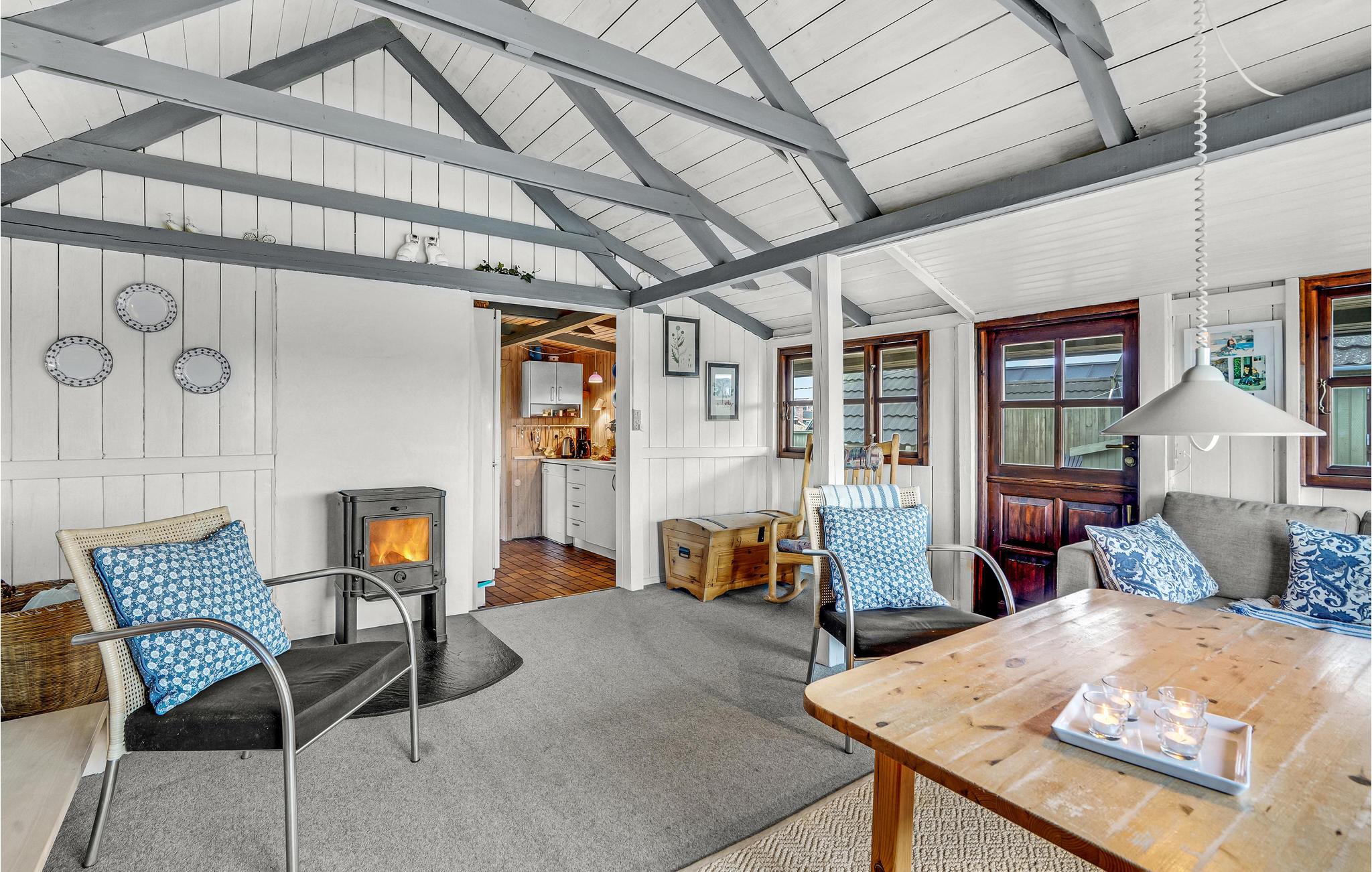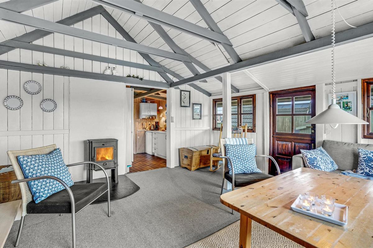 Je vakantiehuis in Rindby is open en uitnodigend en klassiek ingericht. Hier kun je genieten van de charmante sfeer en het aangename licht dat binnenvalt door de schuiframen, terwijl je opwarmt voor de houtkachel na een lange wandeling. In de ruime keuken is genoeg ruimte voor culinaire projecten, terwijl je kinderen zich kunnen vermaken met bordspellen of puzzels aan de eettafel. Het huis heeft ook een afgesloten binnenplaats tussen het vakantiehuis en het bijgebouw.