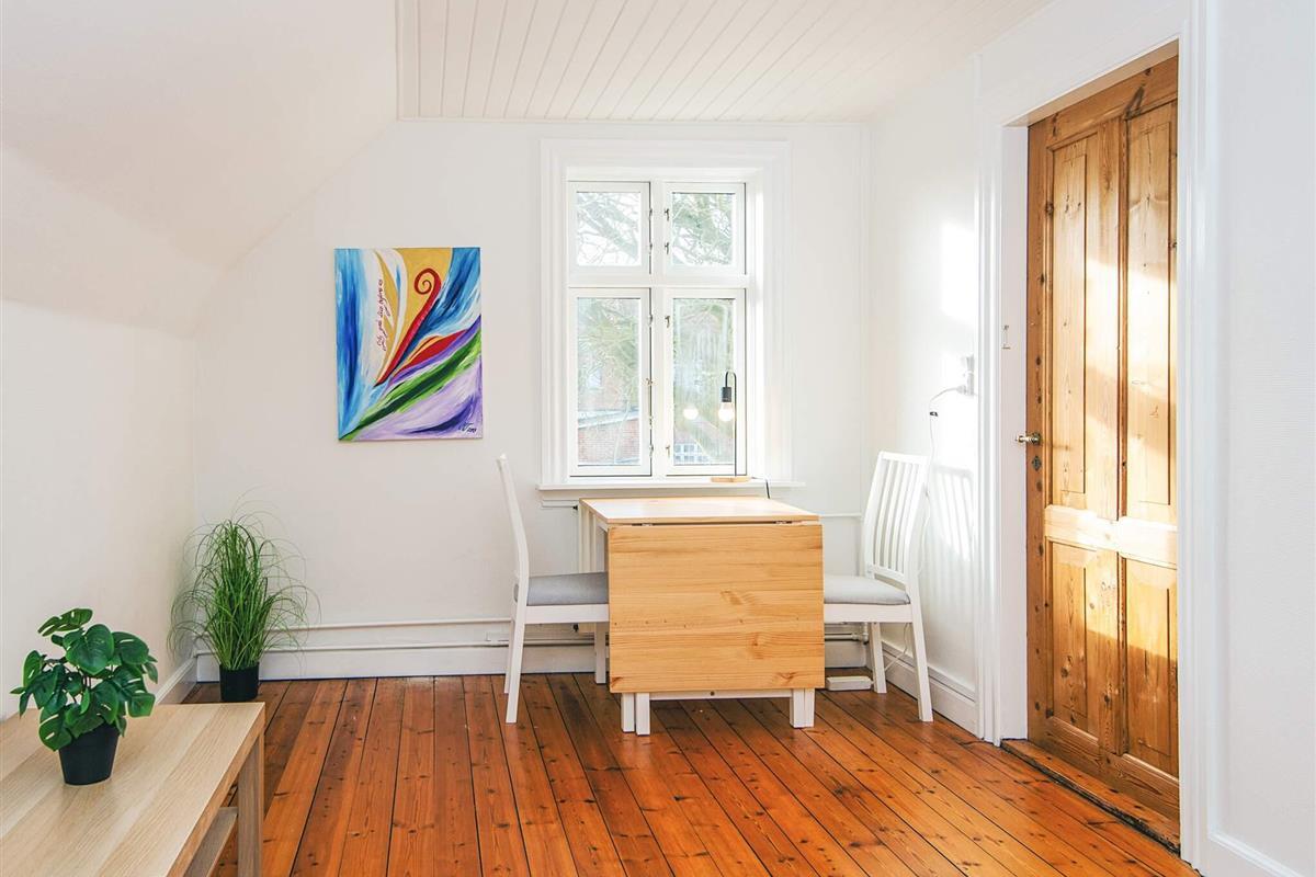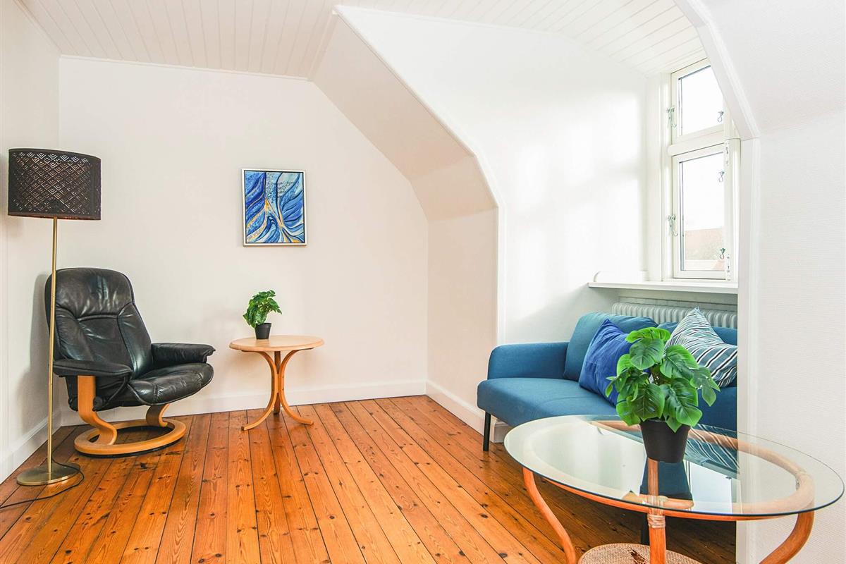Diese charmante 2-Zimmer-Wohnung ist 62 m² groß, nur 1 Minute zu Fuß von Einkaufsmöglichkeiten und 3 Minuten vom Marktplatz, dem Ringkøbing Fjord und dem Hafen entfernt. Die Lage bietet Ruhe und eine schöne natürliche Umgebung. Sie haben auch die Möglichkeit, ein separates Yogastudio nebenan zu mieten, und das Anwesen verfügt über einen schönen Naturgarten mit einem Apfelbaum und einem Steinkreis, perfekt für entspannende Momente.