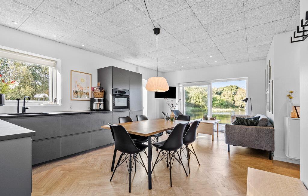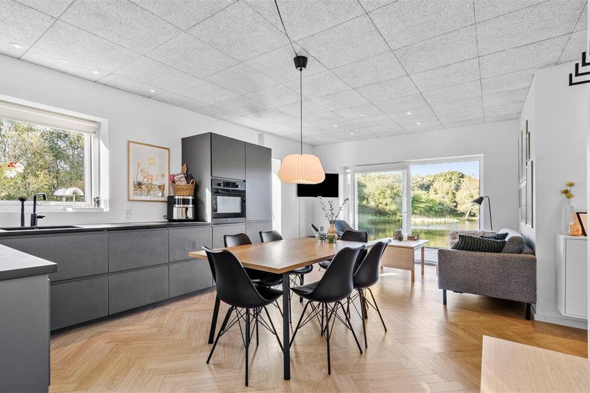 In Hee, vlakbij Ringkøbing, verwelkomt je vakantiehuis je midden in de rust van de natuur en direct aan een klein meer. Het moderne vakantiehuis ligt op een idyllische locatie en biedt een prachtig uitzicht vanaf zowel het terras als de woonkamer. Begin je dag met een gezellig ontbijt aan de elegante eettafel terwijl je geniet van het uitzicht op het water. De grote ramen aan de voorkant laten veel licht binnen en combineren binnen- en buitenruimtes op een prachtige manier. De stijlvolle en open woonkamer biedt ruimte voor ontspannende uren. Maak het jezelf gemakkelijk op de bank of gebruik de ruime keuken om samen te koken.