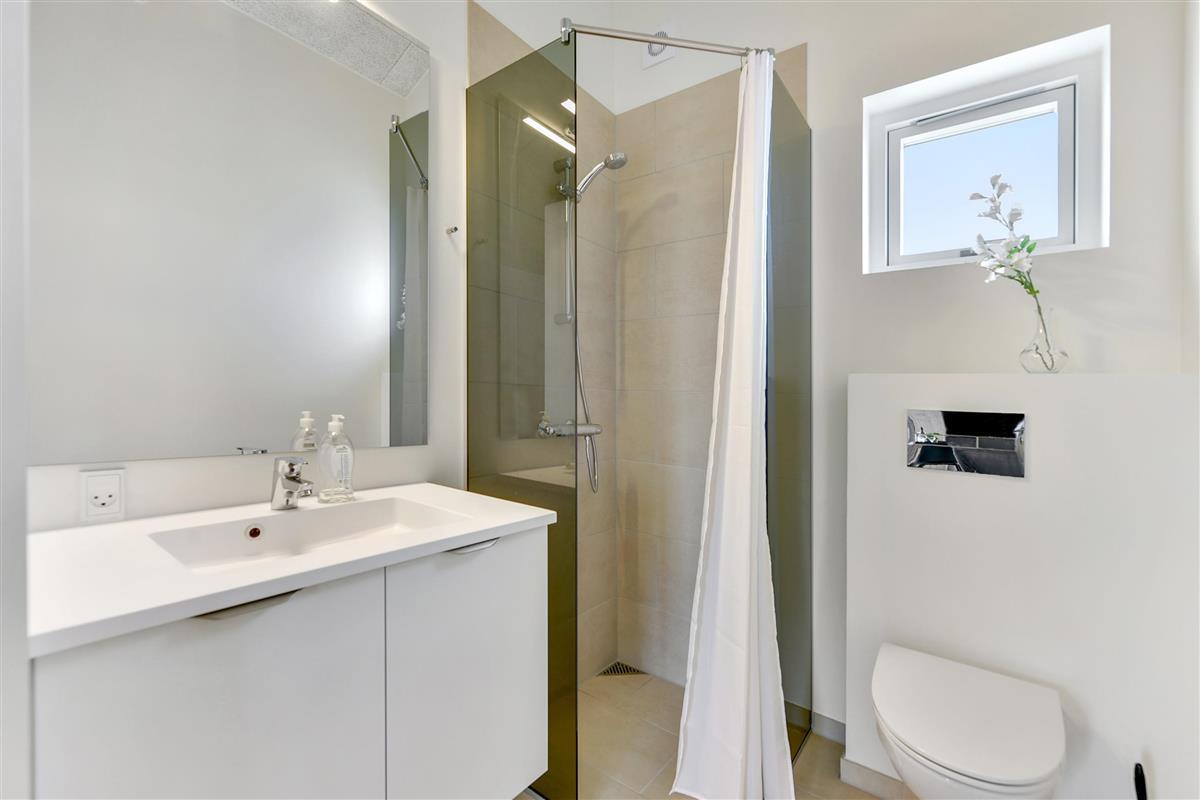 Badkamer: wc, wastafel, douchecabine, wasmachine en droger