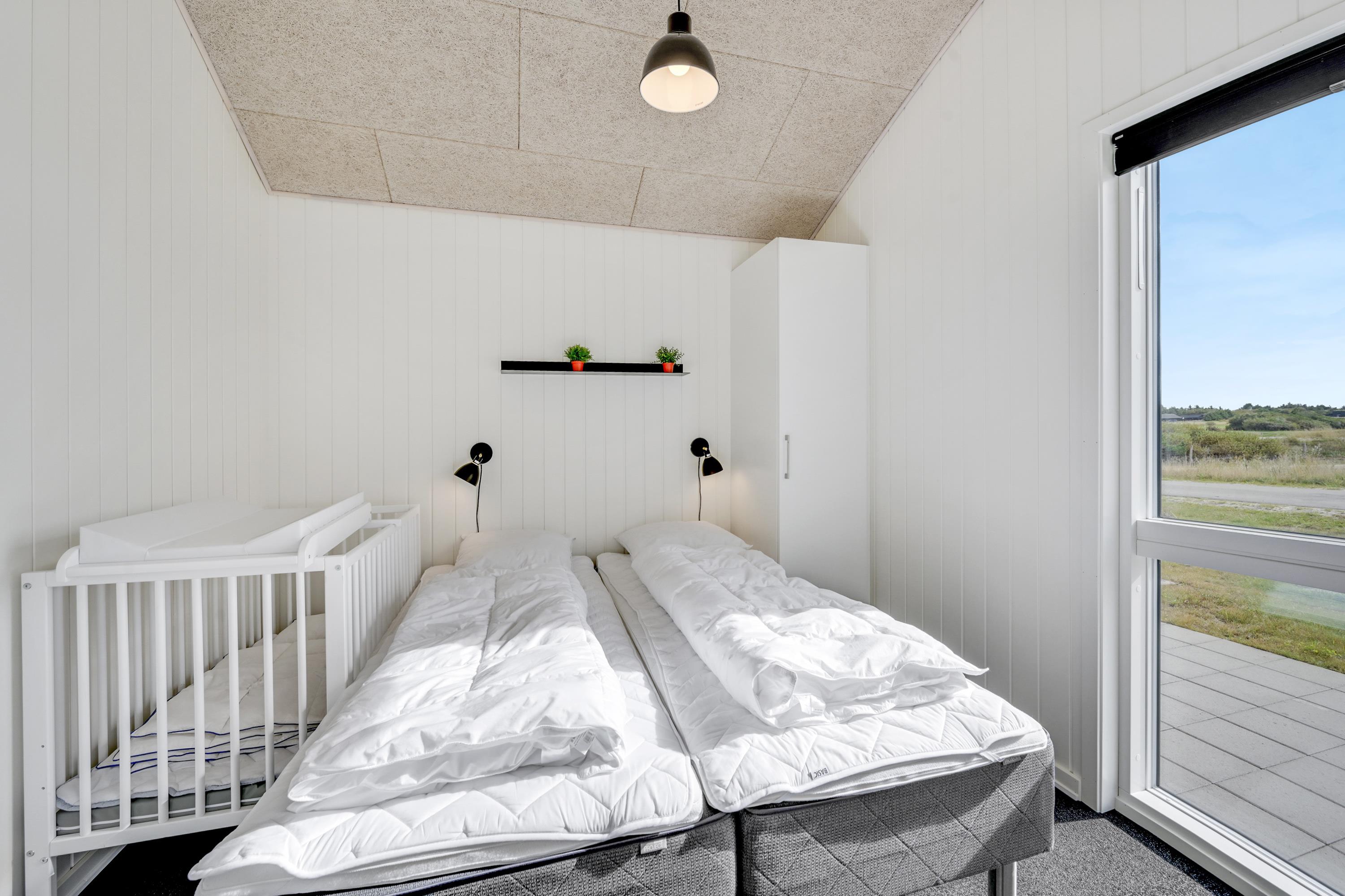 Slaapkamer 1: Een tweepersoonsbed en een kinderbedje