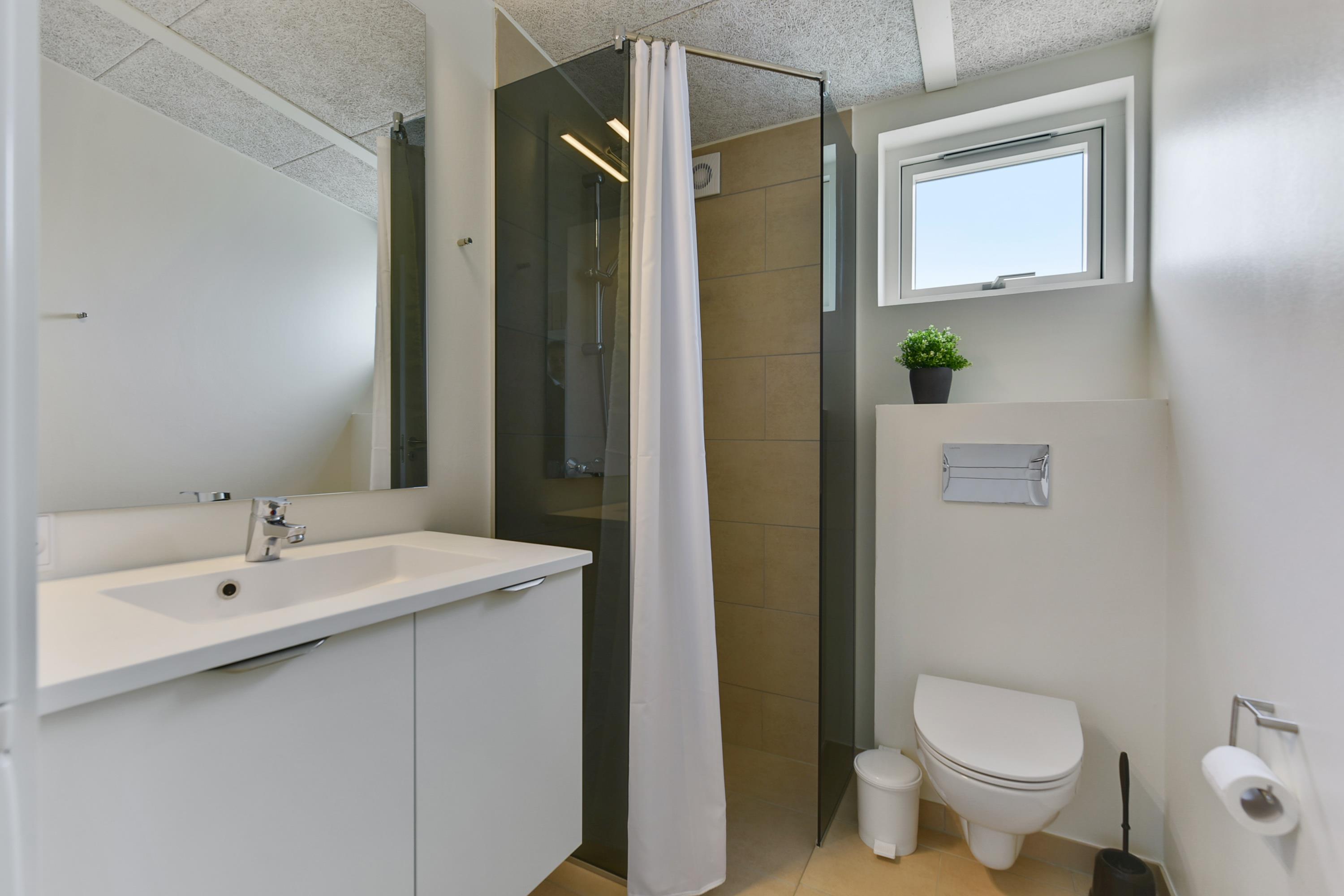 Badkamer: wc, wastafel, douchecabine, wasmachine en droger
