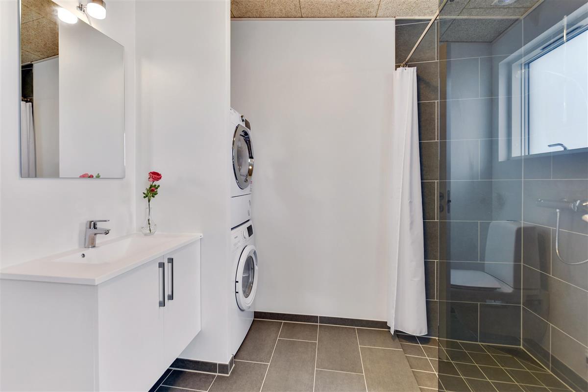 Badkamer 1: wc, wastafel, douchecabine, wasmachine en droger
