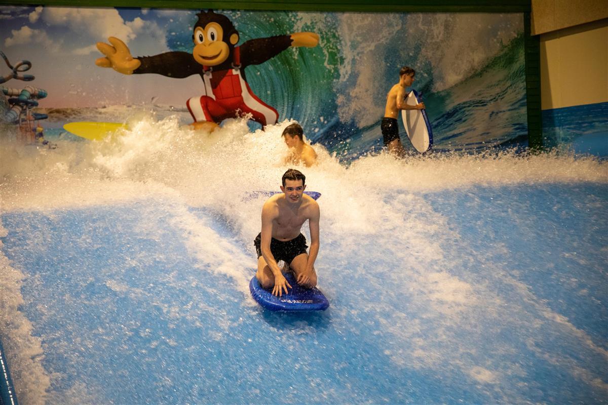 Probeer ook de grote Wave Pool, waar je zelf de hoogte van de golven bepaalt – helemaal vooraan in het bassin zijn er enorme golven, terwijl er aan de waterkant kleinere golven zijn. Een hit voor zowel kleine als grote golvenfans!