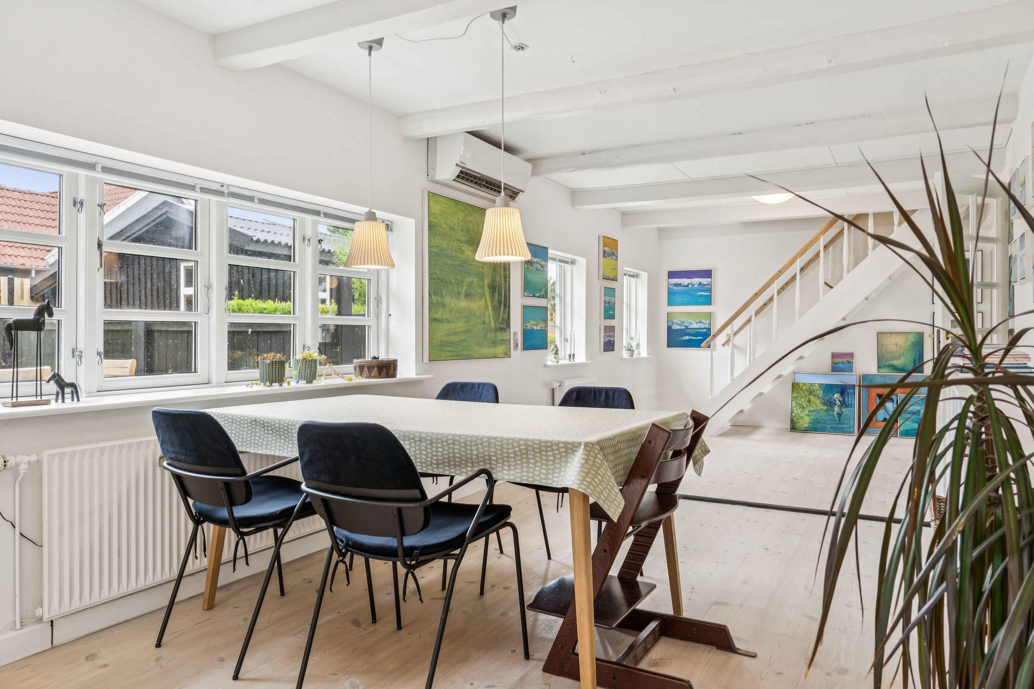Heerlijk zomerhuis met ruimte voor leven en rust. De lichte gemeenschappelijke ruimtes zijn verdeeld over 98 vierkante meter met een open keuken en een uitnodigende zithoek. Grote ramen verbinden met de natuur en het terras verlengt de zomerdagen terwijl je geniet van de frisse lucht. De omgeving biedt brede zandstranden aan de Noordzee, rustige fjordwateren en mooie duinlandschappen. Fiets- en wandelpaden nodigen uit tot ontdekking, terwijl wind- en kitesurfen avonturiers aantrekken. Enkele van Denemarken’s beste golfbanen liggen in de buurt en surfscholen bieden instructie voor zowel beginners als gevorderden. Fjordzeilen en vogelspotten brengen natuurliefhebbers dicht bij de karakteristieke marskgebieden. De charmante stad verwelkomt je met geplaveide straatjes, gezellige cafés en speciaalzaken met lokaal vakmanschap. Markt dagen in de haven presenteren verse producten en restaurants serveren regionale specialiteiten. Kunstgaleries en kleine musea liggen op korte afstand en evenementen zoals muziekfestivals trekken bezoekers van ver en nabij. Het zomerhuis heeft drie knusse slaapkamers met plaats voor zes personen. De functionele indeling garandeert privacy en flexibiliteit voor families of vrienden. Een volledig uitgerust badkamer en een extra gastentoilet completeren het comfort, terwijl bergruimte je vakantie georganiseerd houdt. Let op: Niet te huur voor commercieel gebruik.