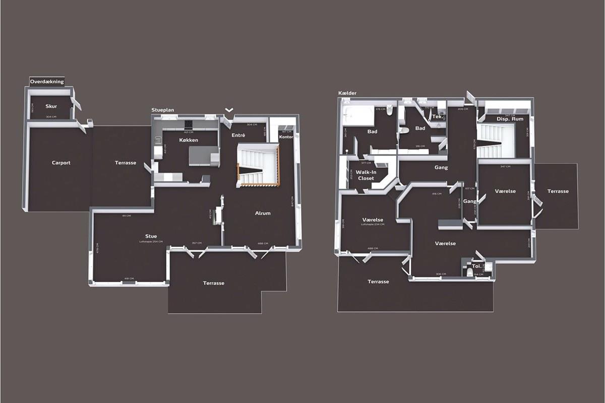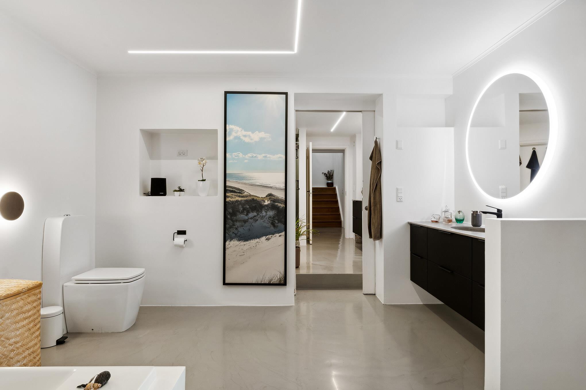 The basement has three spacious bedrooms with room for up to 6 people – ideal for restful nights and privacy. There are also two modern bathrooms, one of which is part of a private suite with a bedroom, walk-in wardrobe and separate dressing room. A sunken bathtub for two invites you to relax – perfect after an eventful day.