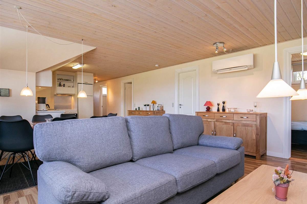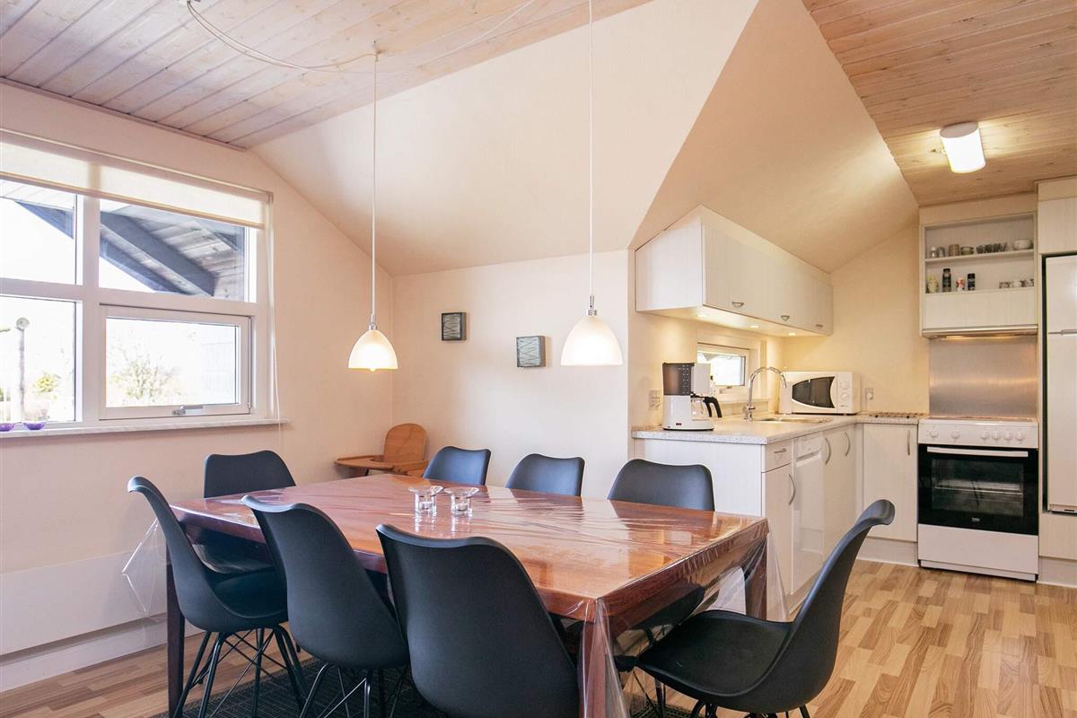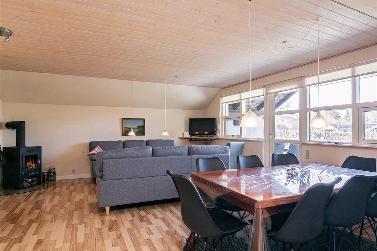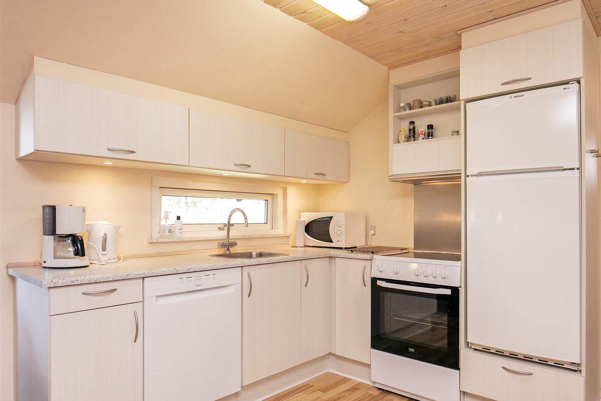 Innen erwarten Sie ein offener Küchen-/Wohnbereich mit Essecke und Holzofen sowie drei Schlafzimmer mit jeweils zwei Schlafplätzen in Betten. Außerdem Badezimmer mit Dusche/WC im Haus und praktischer Hauswirtschaftsraum mit Waschmaschine. In der Umgebung gibt es gute Angelmöglichkeiten.