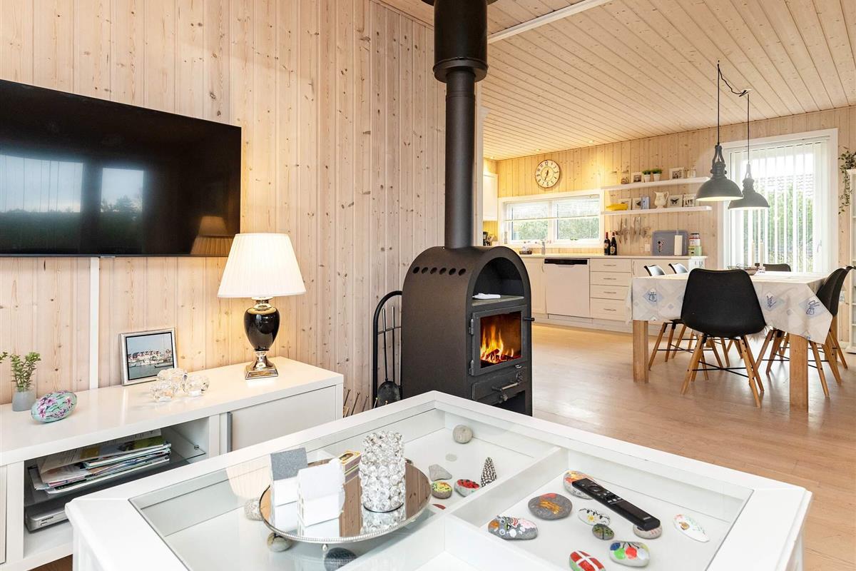 Die offene Küche ist komplett mit modernen Geräten ausgestattet und geht nahtlos in den Essbereich über – ein einladender Raum für gemeinsame Mahlzeiten und Familientreffen. Das geräumige Wohnzimmer bietet eine gemütliche Atmosphäre mit bequemer Sitzecke, Fernseher und kostenlosem WLAN – ideal zum Entspannen nach einem erlebnisreichen Tag auf der Insel. Große Glastüren führen direkt auf die Terrasse, wo Sie sonnige Morgenstunden, Abendessen oder einfach nur die Natur genießen können.