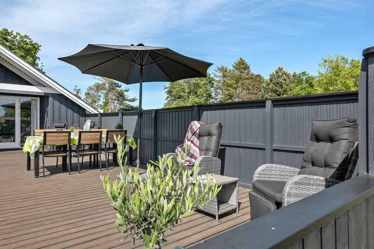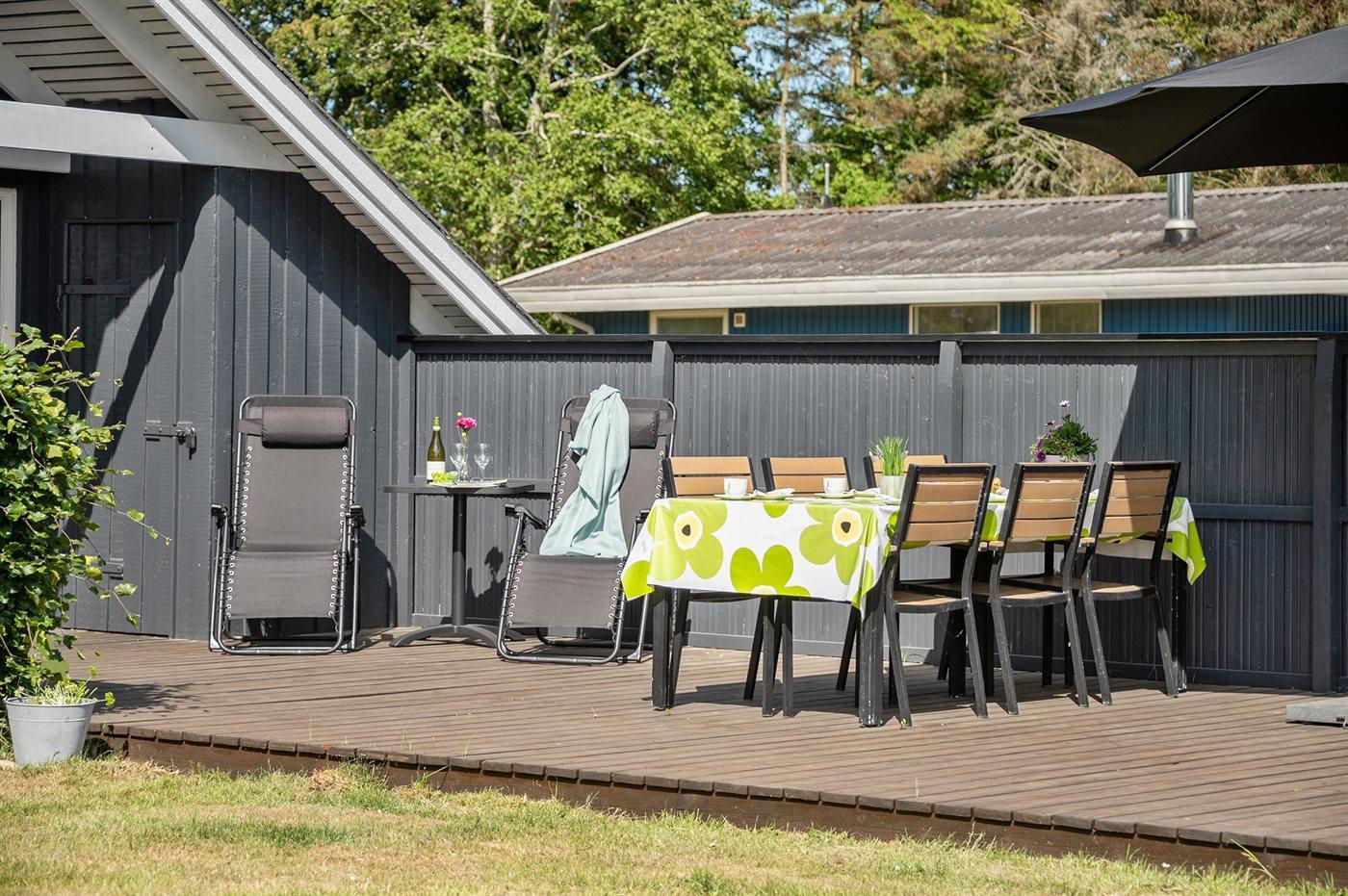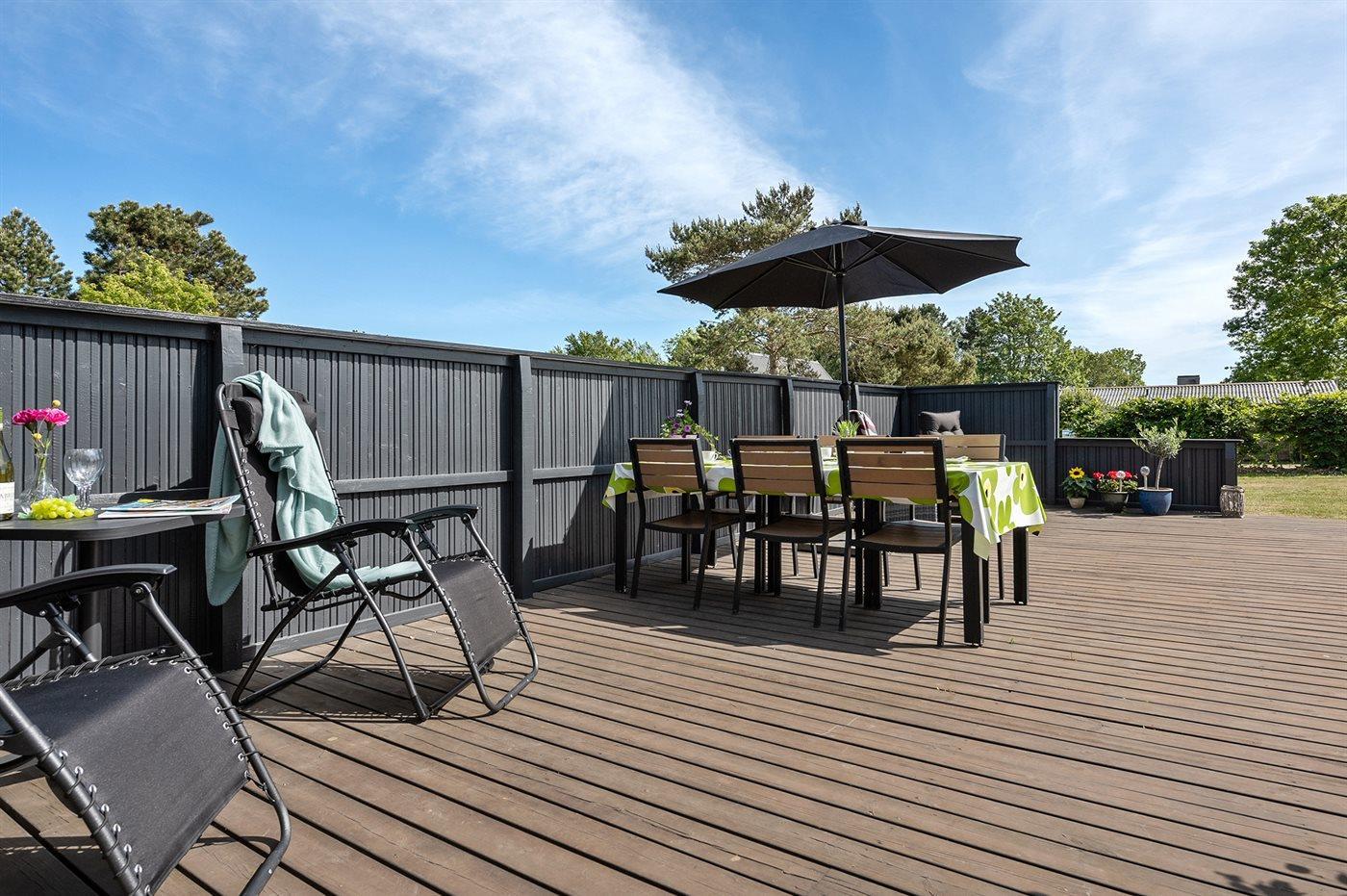 De vakantiewoning is gelegen op een 1273 m² groot aangelegde tuin. Afstand tot de zee 1000 m. Dichtstbijzijnde winkel 1000 m. Er is een golfbaan op een afstand van 7500 m. Bij de vakantiewoning hoort 40 m² terras. Daarnaast is er een 8 m² groot overdekt terras. Schommel. Barbecue. Parkeerplaats bij het huis.