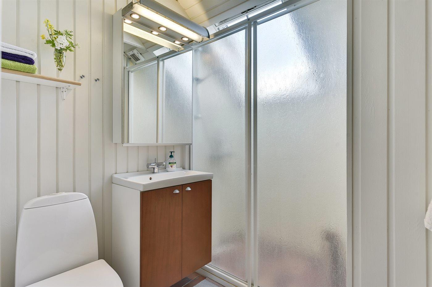 Er is 1 badkamer met douchehok en 1 toilet.