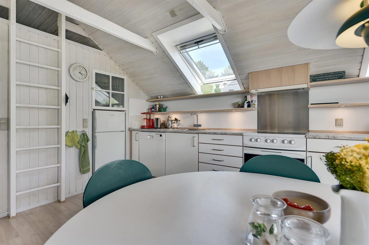 De keuken is uitgerust met koelkast Er zijn 4 keramische kookplaten, heteluchtoven en vaatwasser.
