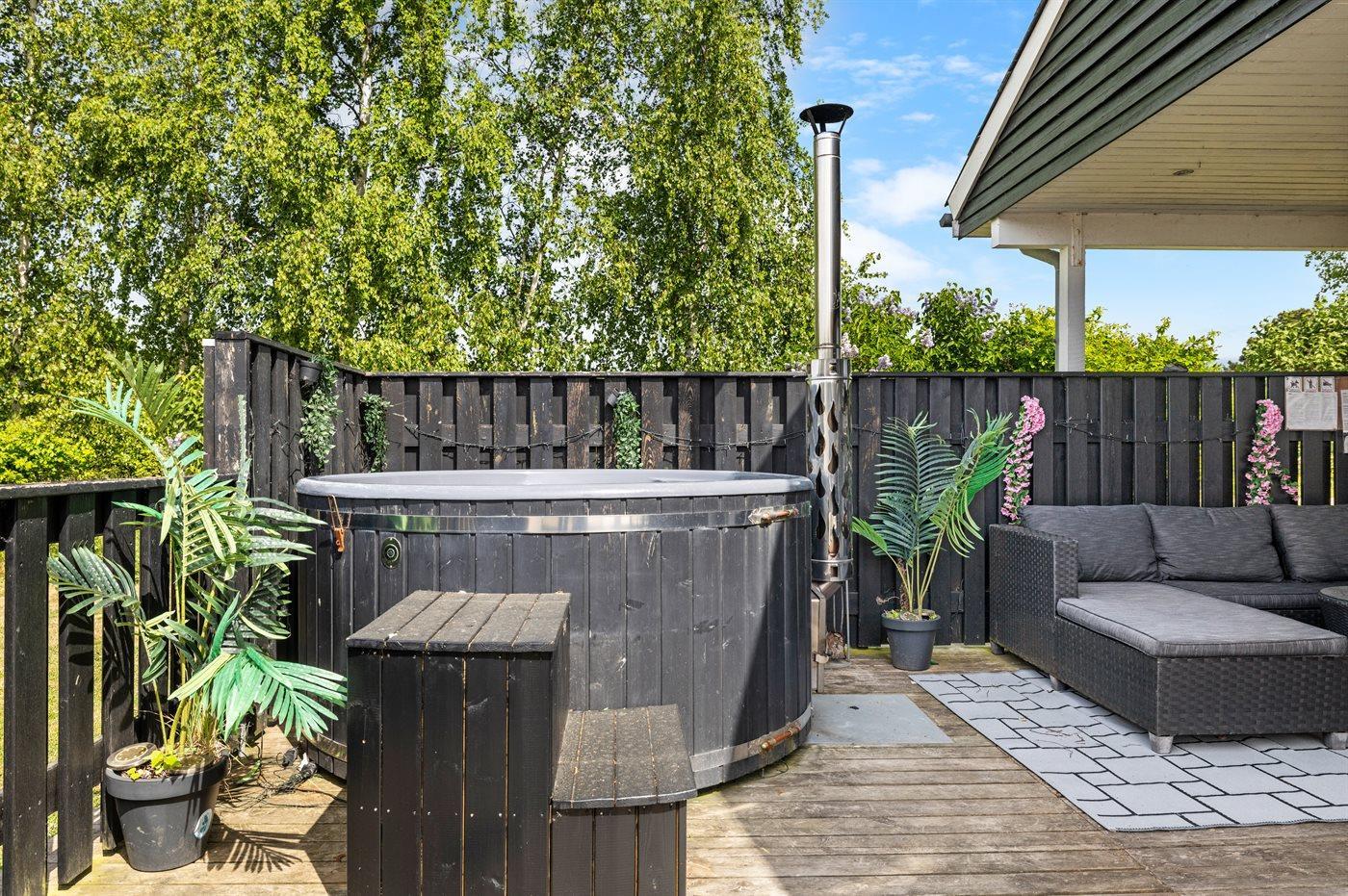 De vakantiewoning is gelegen op een 1590 m² groot aangelegde tuin. Afstand tot de zee 700 m. Dichtstbijzijnde winkel 2900 m. Bij de vakantiewoning hoort terras. Daarnaast is er een overdekt terras. Schommel. Zandbak. Barbecue. Parkeerplaats bij het huis.