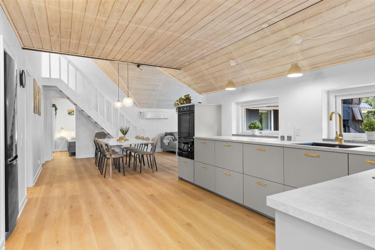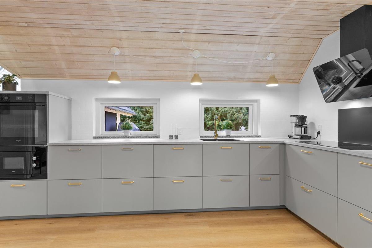 De keuken is uitgerust met koelkast Er is 4 inductiekookplaten, heteluchtoven, magnetron en vaatwasser.