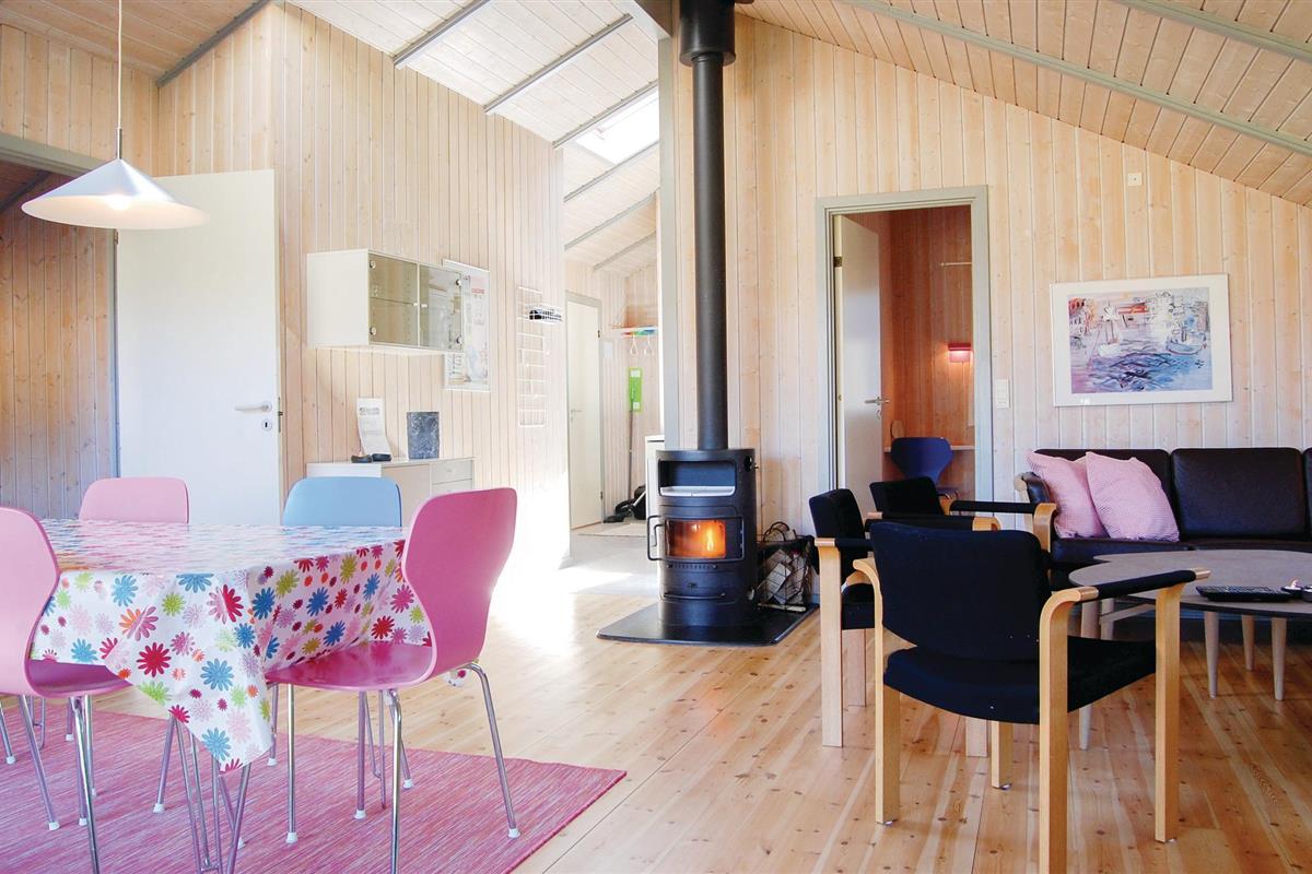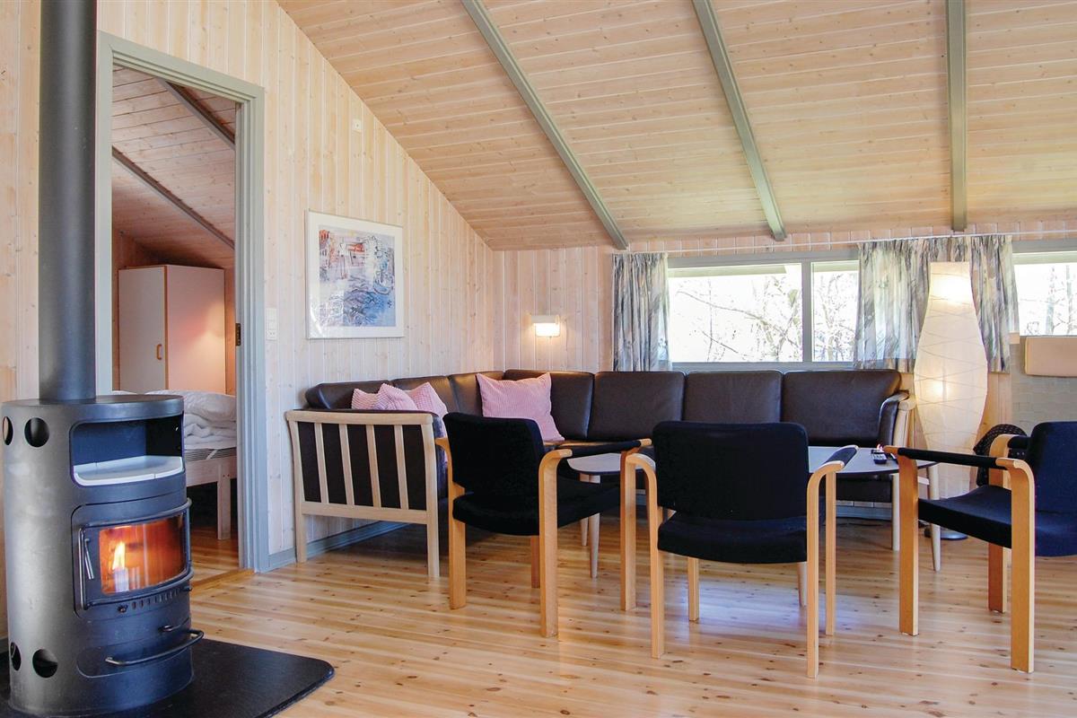 Het houten huis ligt aan een van de mooiste en meest geschikte badstranden van Langeland voor gezinnen. Natuurlijk perceel met zandbak en schommels van 1200 m², waarvan 700 m² beschermd rietland dat niet gemaaid wordt. Het huis is modern uitgerust. Er is ook een sauna voor maximaal 4 personen in de grote badkamer. Een goed vakantiehuis voor een gezin. Vanuit Ristinge Hale heeft u een prachtig uitzicht op de zee en richting Marstal en het eiland Ærø. Op de kleine heidevelden tussen Langeland en Ærø is veel te beleven voor vogelaars. Een kilometer naar het noorden ligt Ristinge Havn, een oude haven voor netten- en fuikenvissers en nu een gezellige haven voor kleine bootjes. Het is nog steeds mogelijk om verse vis te kopen.