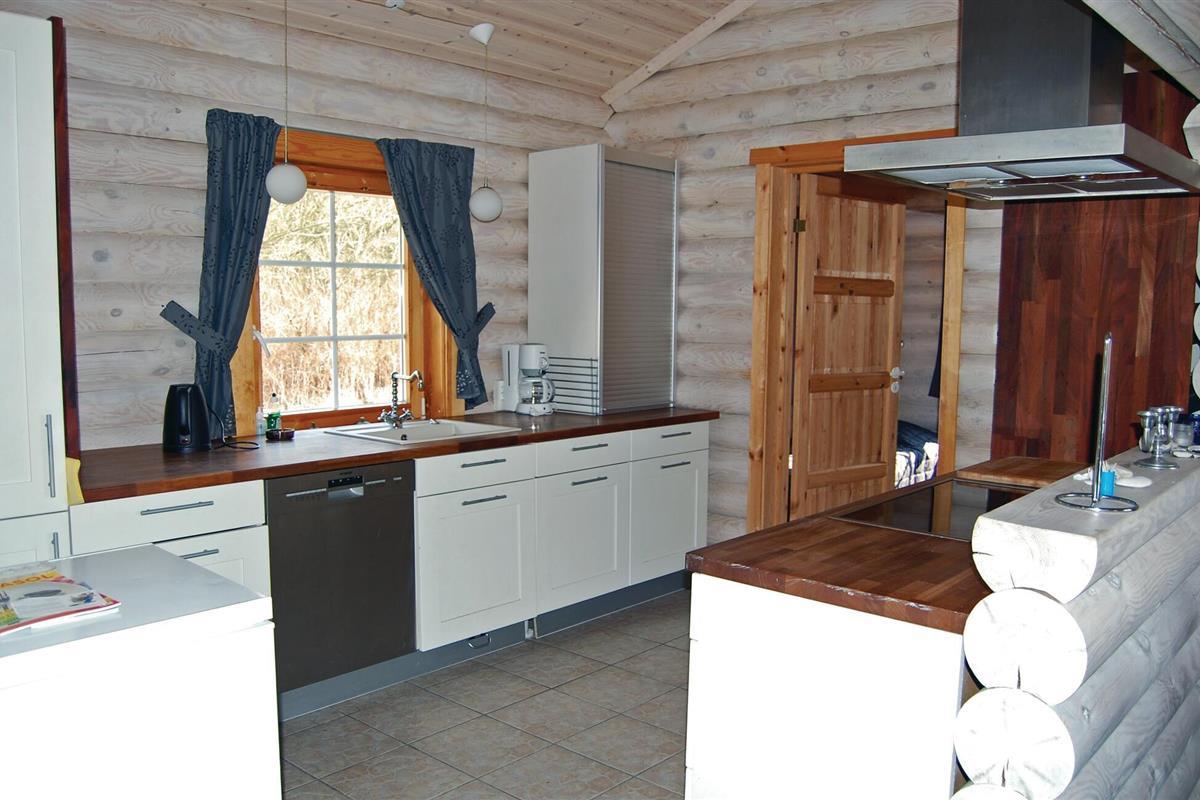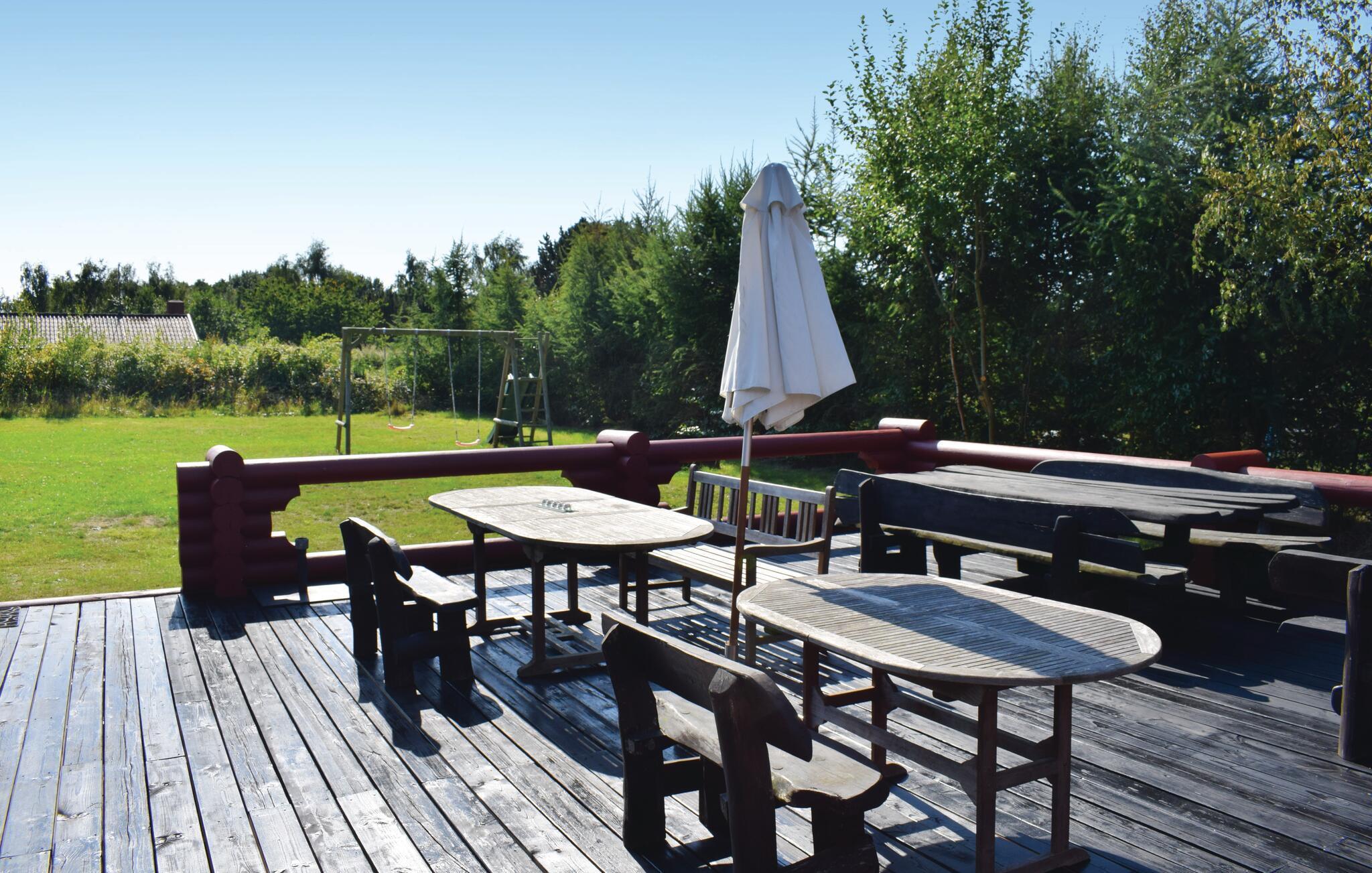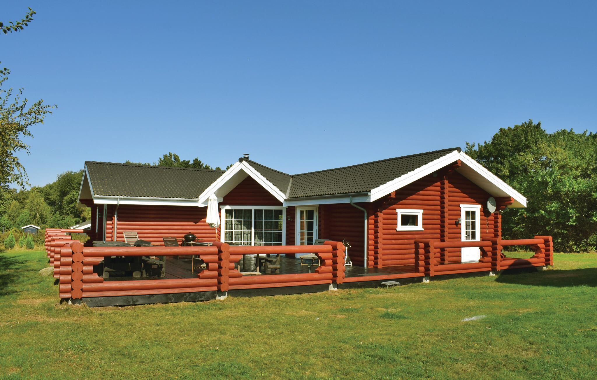 Ontspan in deze ruime blokhut op Langeland met whirlpool, open keuken en speeltuin, vlak bij het zandstrand van Ristinge.