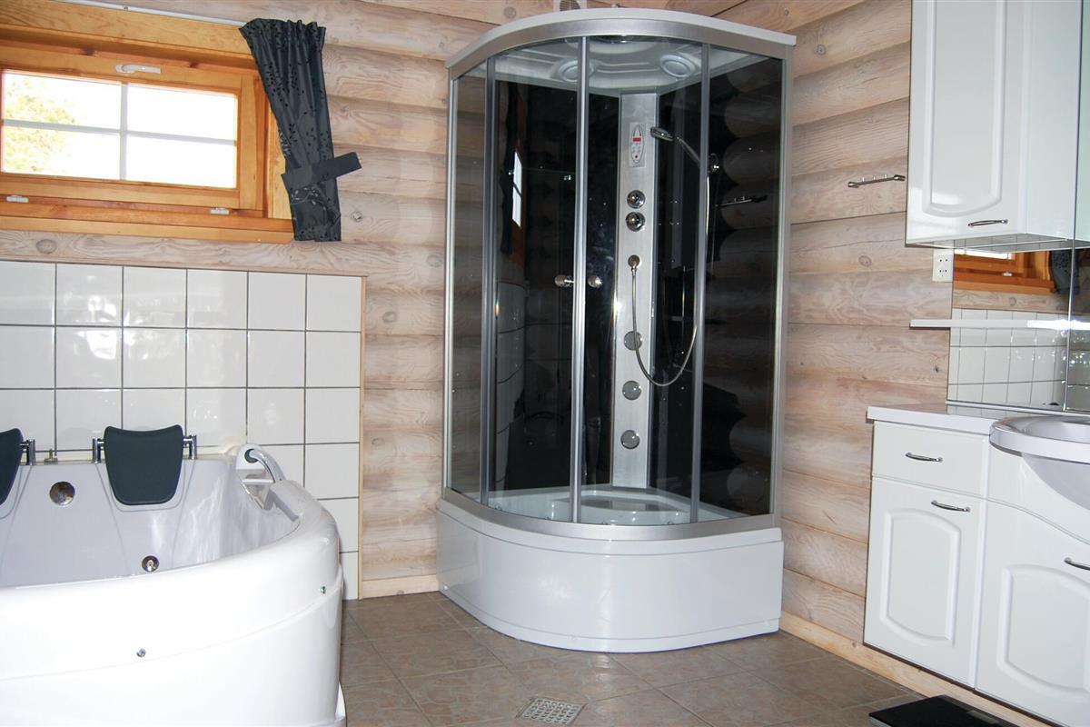 Het huis is een ruime, rustieke blokhut en ligt op een rustig vakantiepark. Het biedt ruimte voor grotere gezinnen of groepen die een vakantie dicht bij de natuur willen doorbrengen. De inrichting combineert rustieke meubels met moderne voorzieningen, waardoor het huis een gezellige sfeer heeft. Houten vloeren in de woonkamers zorgen voor een praktische en uitnodigende sfeer. De open keuken is goed uitgerust en stelt je in staat om met gemak maaltijden te bereiden. Je kunt volledig ontspannen in de eigen whirlpool van het huis.