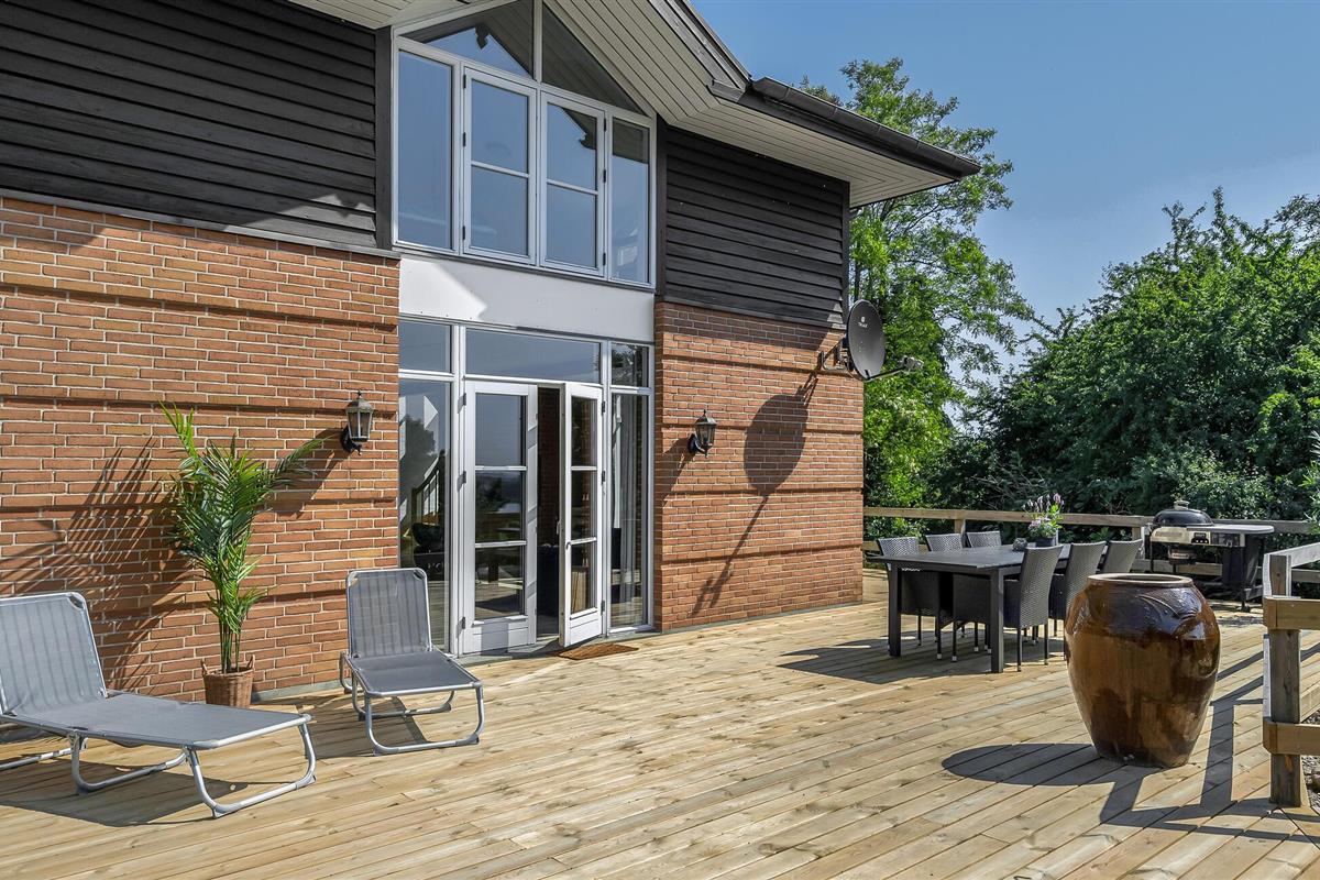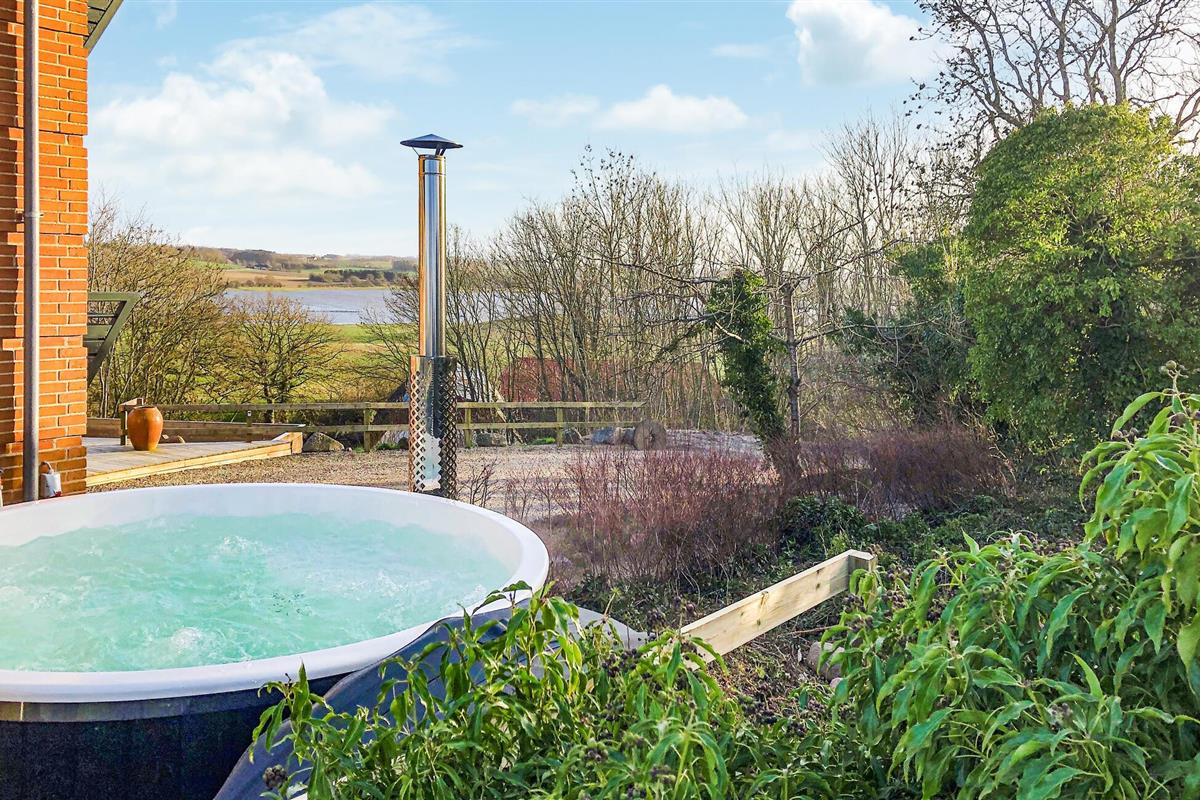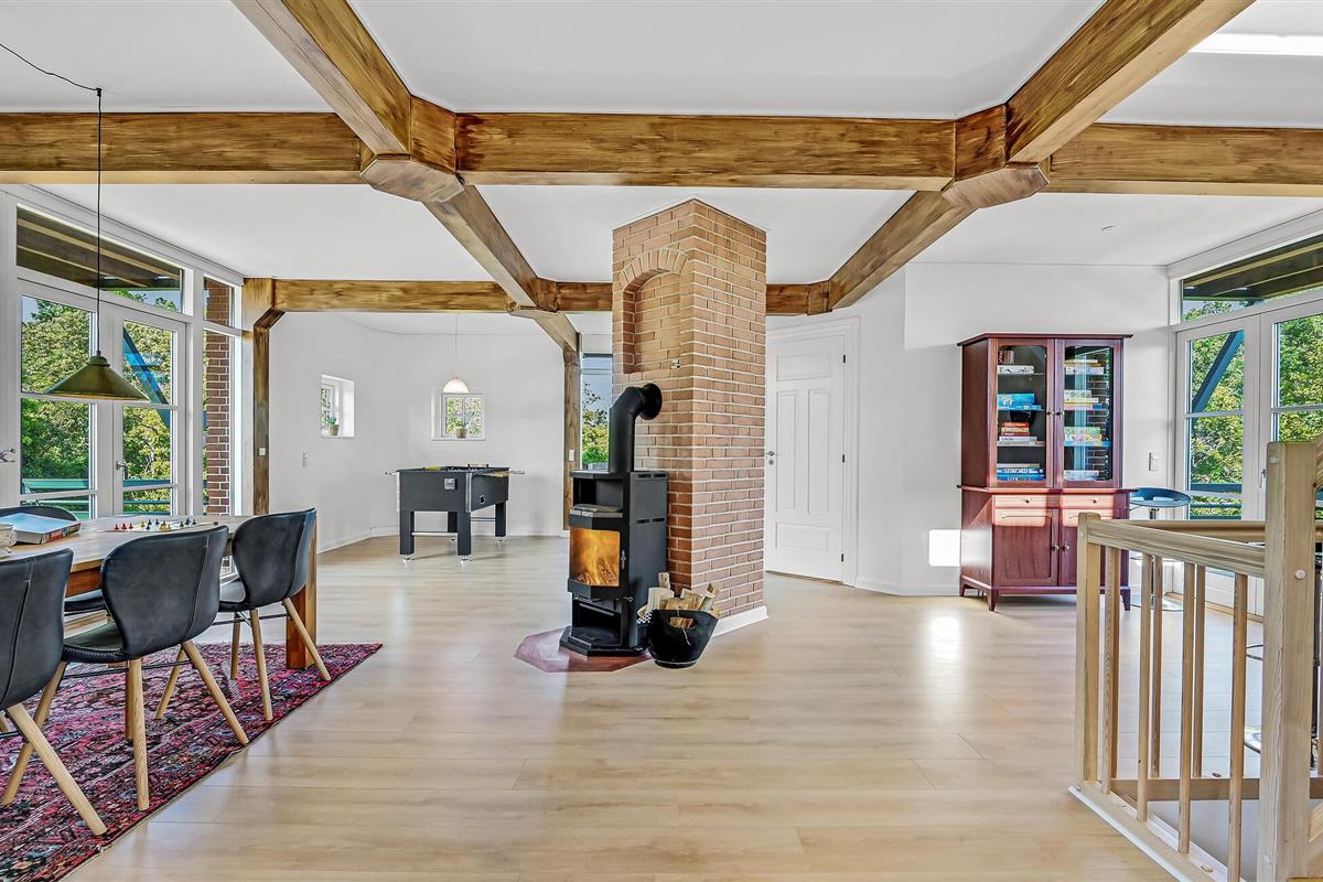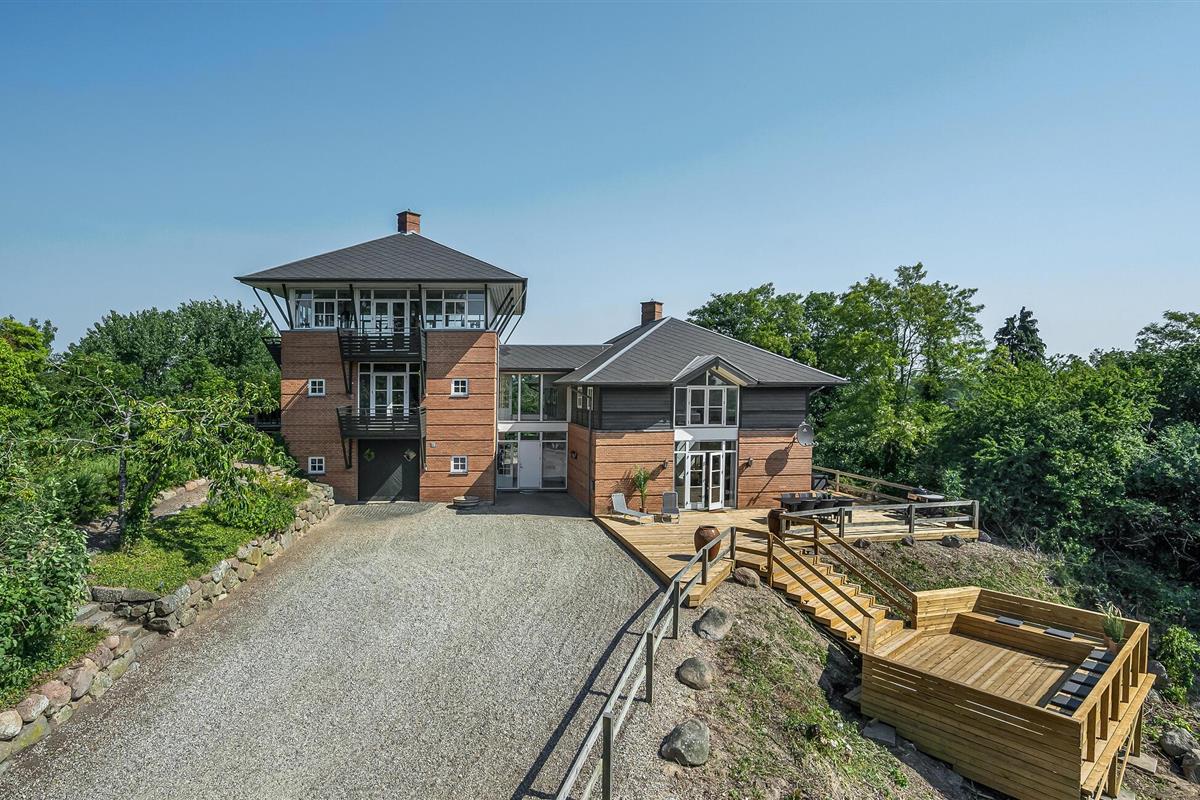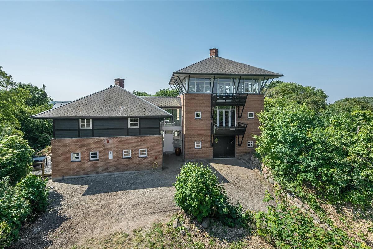 Hesselbjerg Mølle is de populaire naam voor de woning. Het ligt op een heuvel die een van de hoogste is op Langeland. Op de 2e verdieping komt u vanuit de woonkamer op de drie balkons en geniet u van een panoramisch uitzicht over grote delen van zuidelijk Langeland en het brakwatergebied Tryggelev Nor, een prachtig vogelparadijs. Op deze verdieping staat ook een ½-spel biljart van Søren Søgaard. Het huis heeft 3 open haarden, één per verdieping. Dit zorgt ook in de winter voor de juiste sfeer. De activiteitenruimte bevindt zich in de voormalige garage. Het huis heeft klinkers en houten vloeren bedekt met losse tapijten.