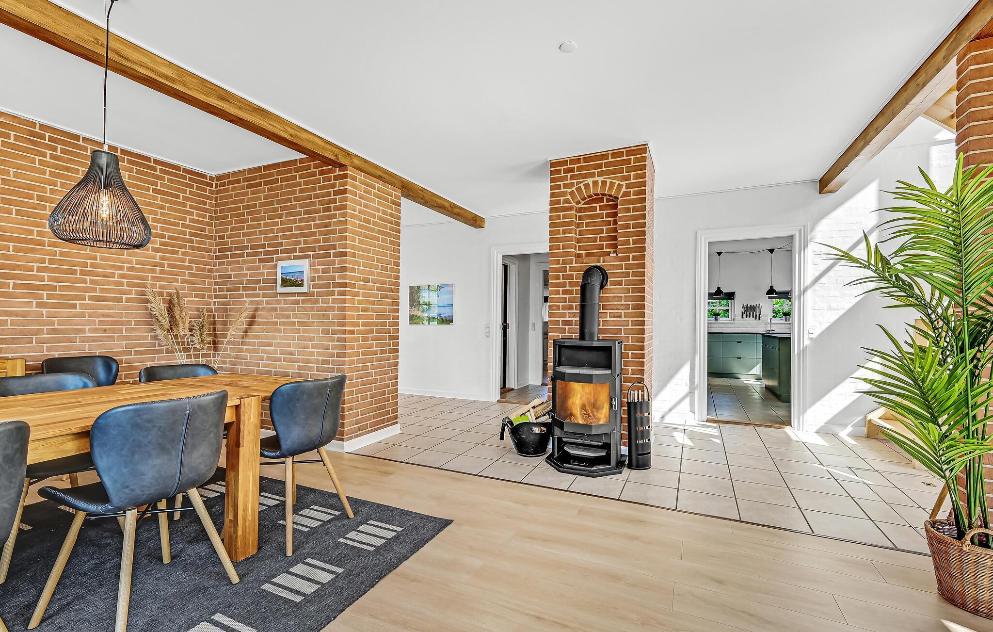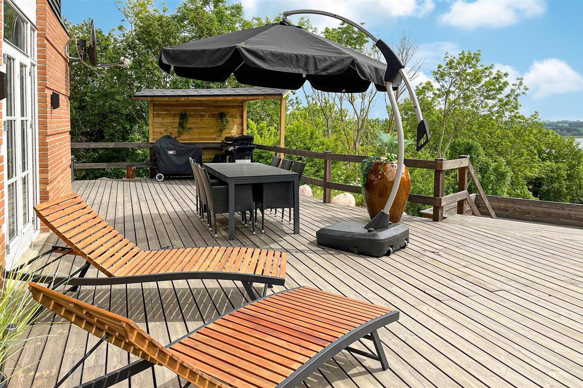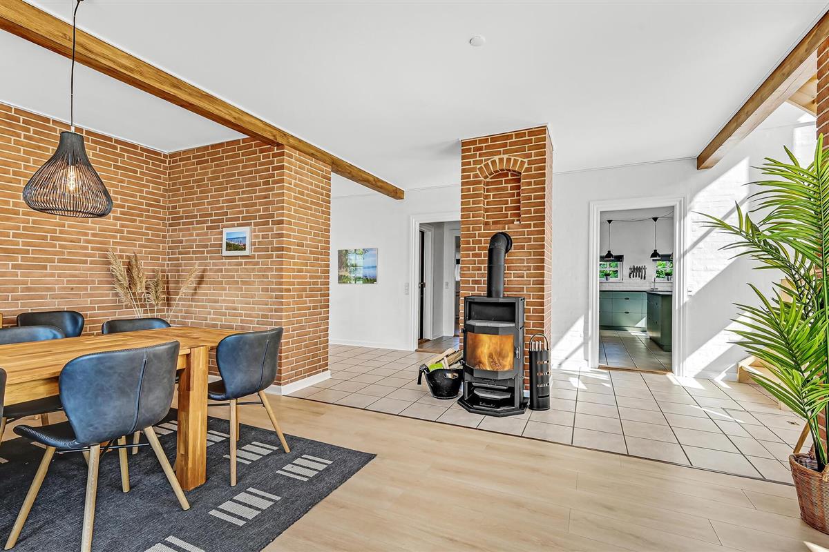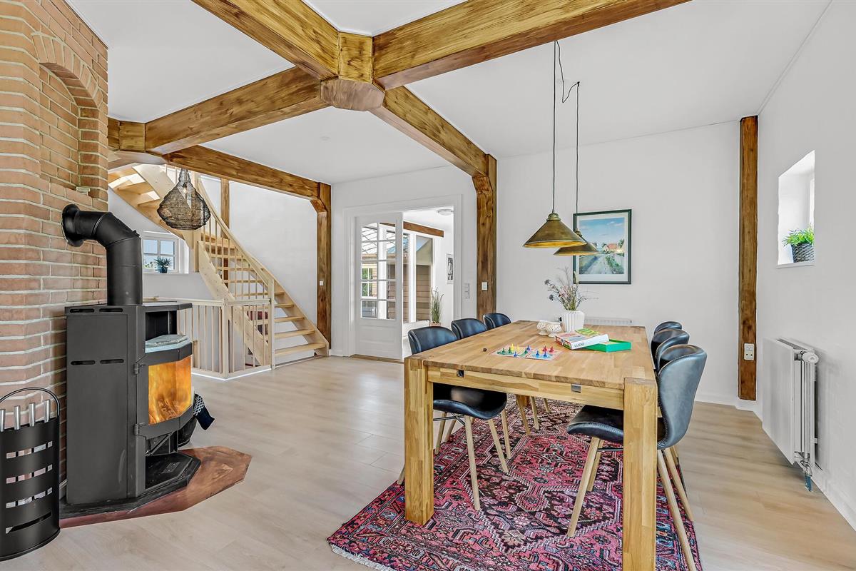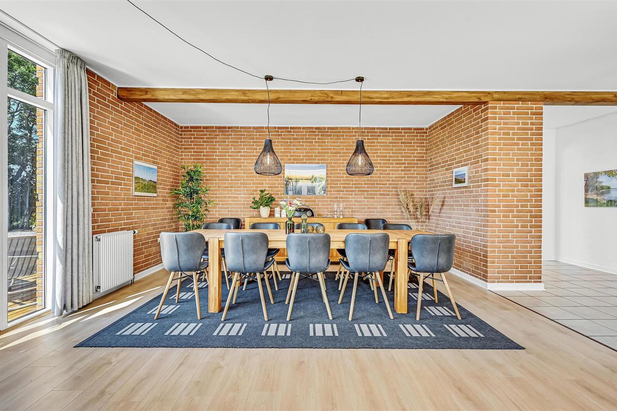 Hesselbjerg Mølle is de populaire naam voor de woning. Het ligt op een heuvel die een van de hoogste is op Langeland. Op de 2e verdieping komt u vanuit de woonkamer op de drie balkons en geniet u van een panoramisch uitzicht over grote delen van zuidelijk Langeland en het brakwatergebied Tryggelev Nor, een prachtig vogelparadijs. Op deze verdieping staat ook een ½-spel biljart van Søren Søgaard. Het huis heeft 3 open haarden, één per verdieping. Dit zorgt ook in de winter voor de juiste sfeer. De activiteitenruimte bevindt zich in de voormalige garage. Het huis heeft klinkers en houten vloeren bedekt met losse tapijten.