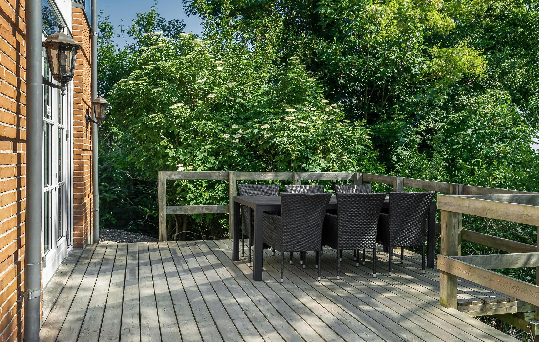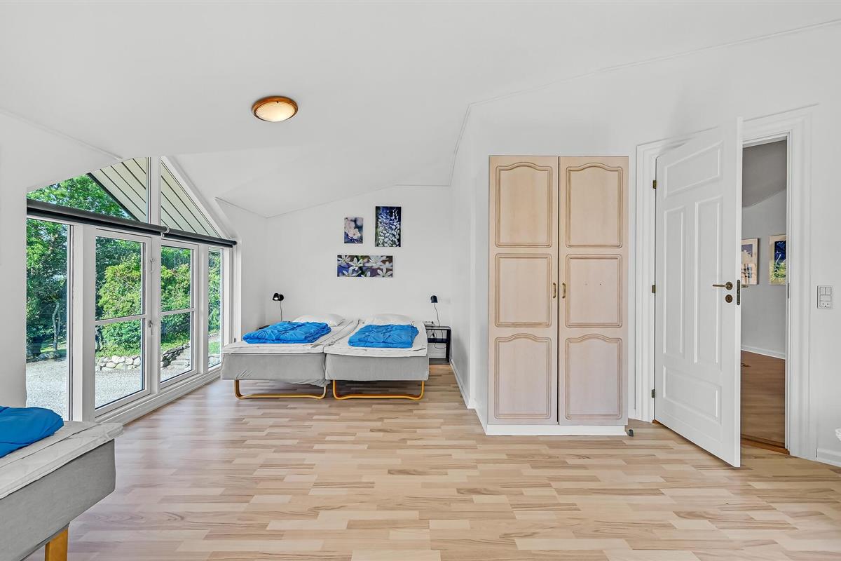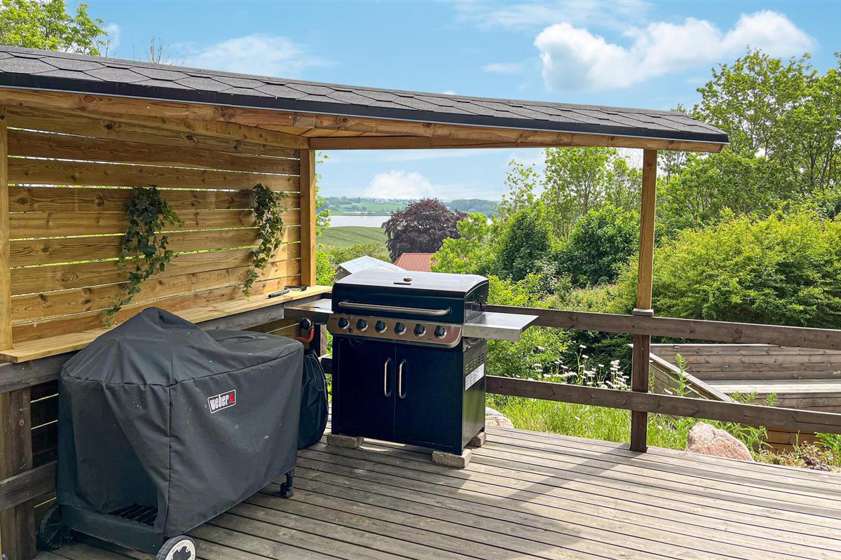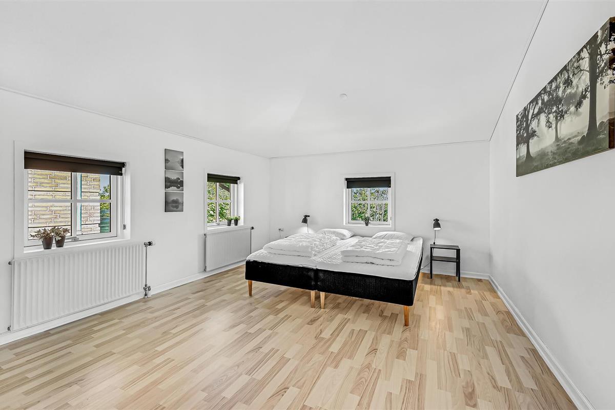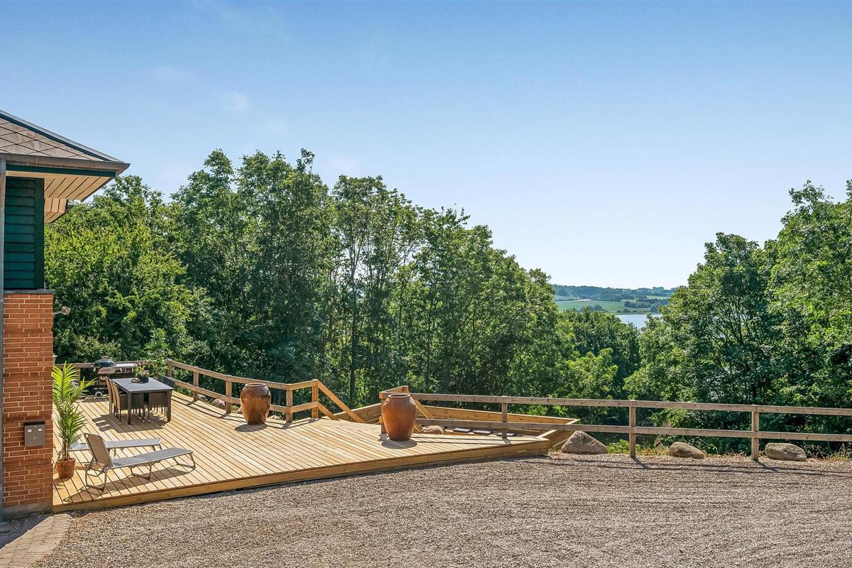 Hesselbjerg Mølle is de populaire naam voor de woning. Het ligt op een heuvel die een van de hoogste is op Langeland. Op de 2e verdieping komt u vanuit de woonkamer op de drie balkons en geniet u van een panoramisch uitzicht over grote delen van zuidelijk Langeland en het brakwatergebied Tryggelev Nor, een prachtig vogelparadijs. Op deze verdieping staat ook een ½-spel biljart van Søren Søgaard. Het huis heeft 3 open haarden, één per verdieping. Dit zorgt ook in de winter voor de juiste sfeer. De activiteitenruimte bevindt zich in de voormalige garage. Het huis heeft klinkers en houten vloeren bedekt met losse tapijten.
