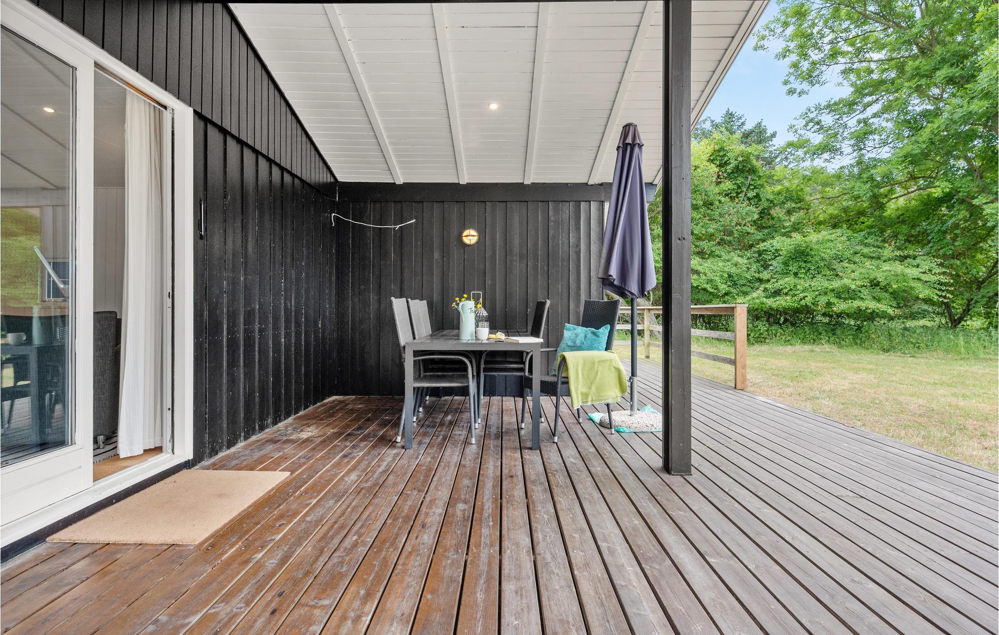 Mooie houten vakantiewoning direct aan het strand van Ristinge op Langeland, met terras, wifi en natuur in de buurt.