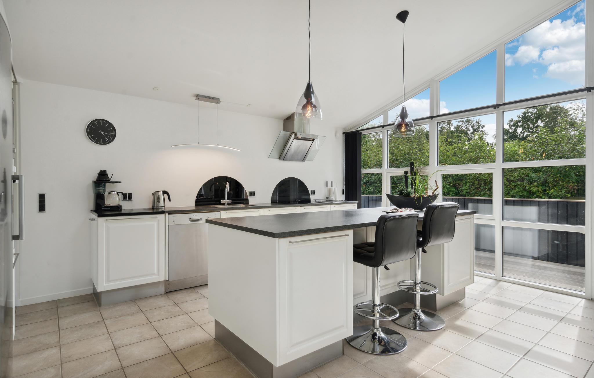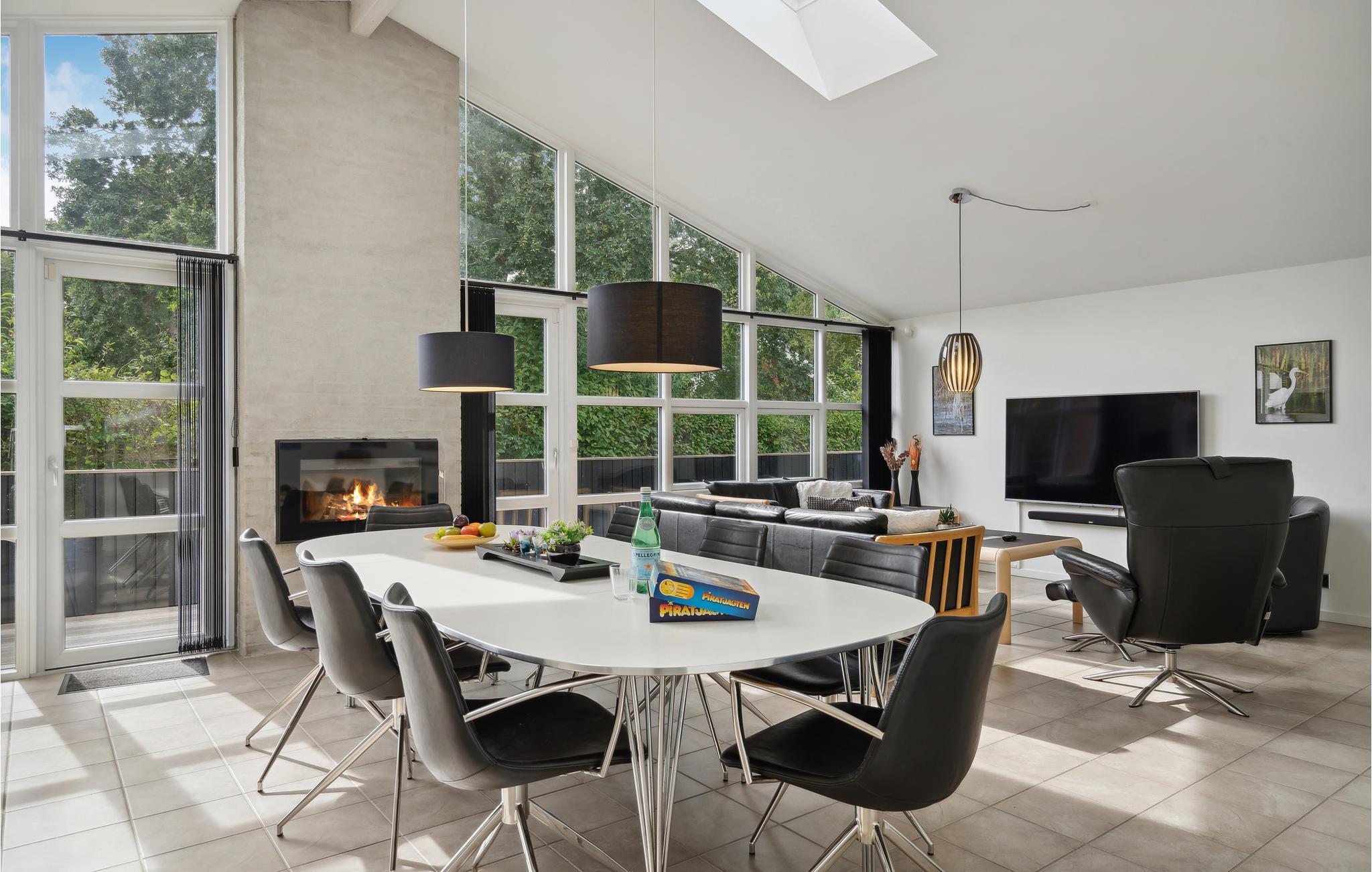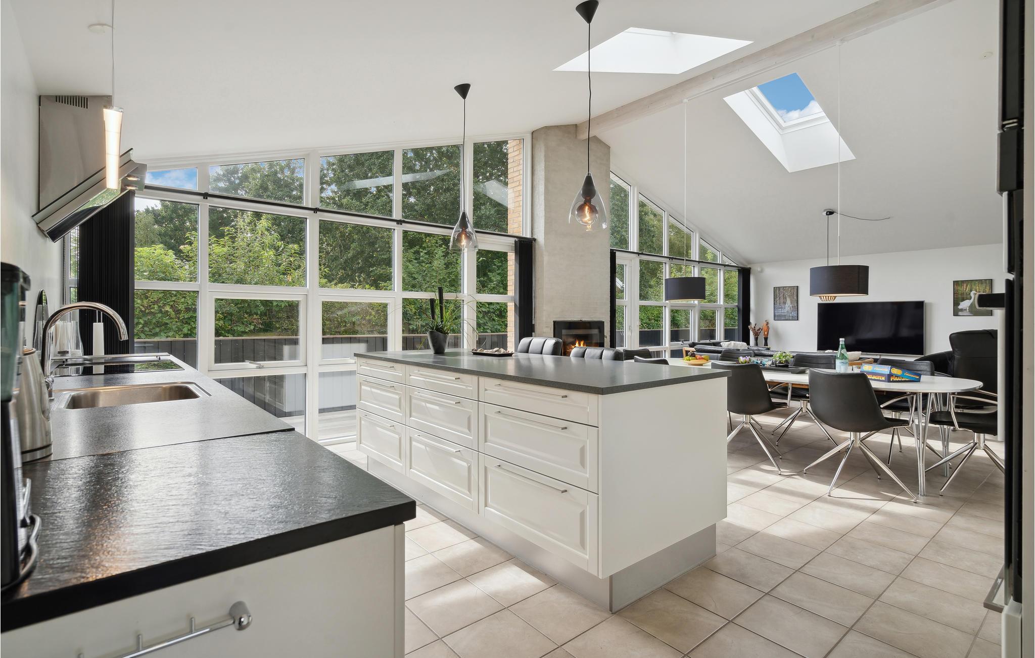 Trakteer jezelf op een ontspannen vakantie op het eiland Langeland en breng een geslaagde gezinsvakantie door in dit lichte en open vakantiehuis. De ruime woonkamer maakt indruk met zijn grote panoramische ramen en dakramen en combineert de keuken, eetkamer en woonkamer in één, zodat je altijd kunt deelnemen aan de gesprekken van anderen. Kom 's avonds samen om bordspellen te spelen aan de eettafel, te genieten van een vuurtje en plannen te maken voor de komende dagen. Het huis is goed uitgerust, waardoor koken in de open keuken een plezier is. Ook wellness wordt niet verwaarloosd. Je kunt je verheugen op een sauna en een bubbelbad geïntegreerd in de badkamer.
