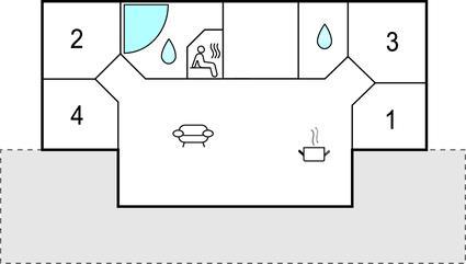 Badkamer (nr. 1) - Toilet: warm en koud water. Douche