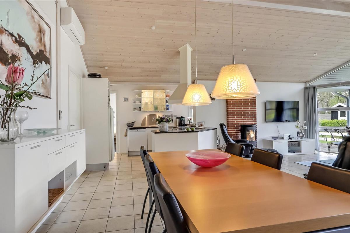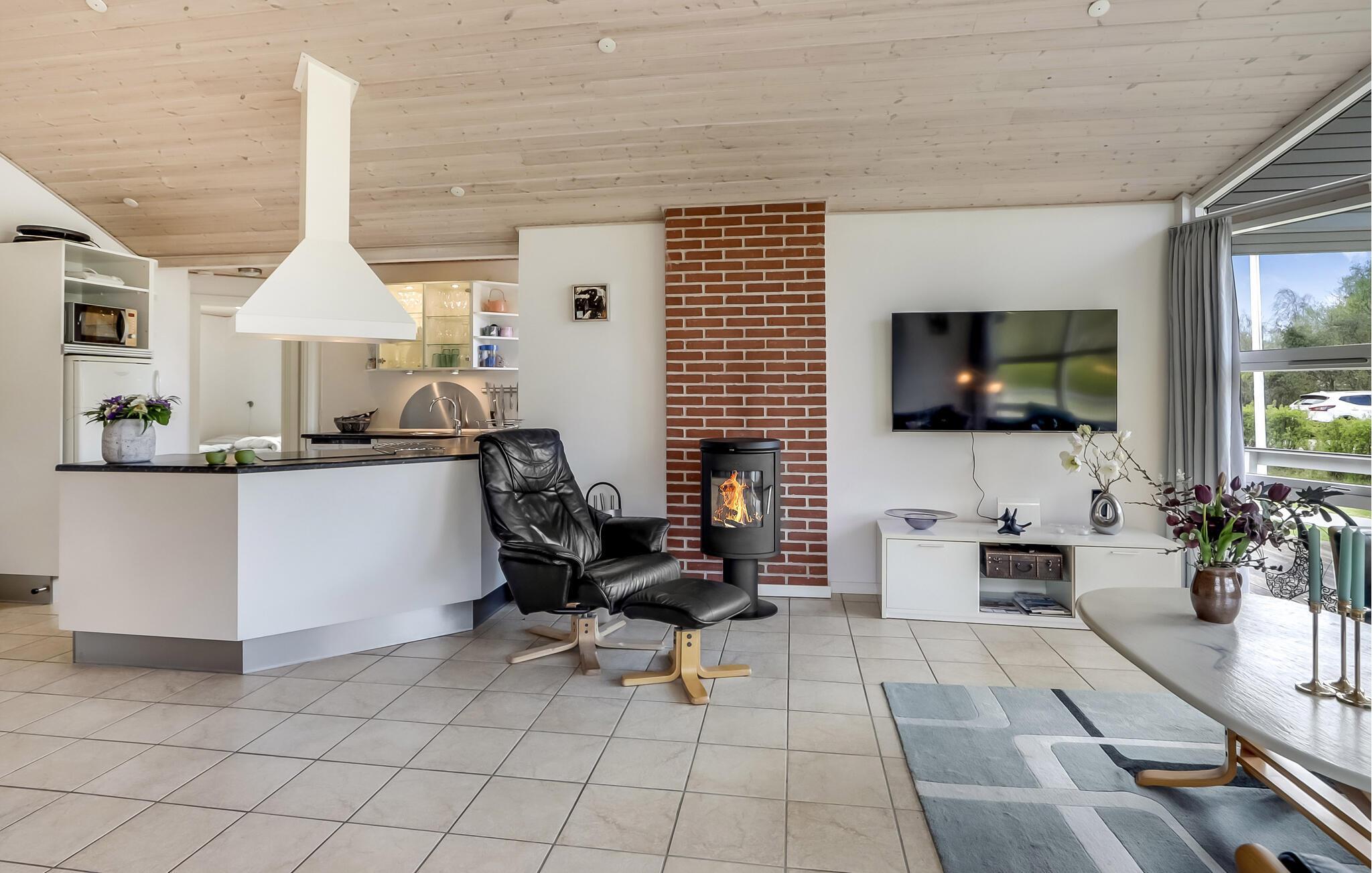 De lichtovergoten leefruimtes zijn klassiek en gezellig ingericht, zodat je je meteen thuis voelt. De open woon- en eetruimte nodigt uit tot gezelligheid, terwijl de goed uitgeruste keuken alles heeft om samen maaltijden te bereiden. Na een dag op het strand kun je ontspannen in de sauna of whirlpool en de avond afsluiten op het ruime, gedeeltelijk overdekte terras. Hier kun je genieten van gezellige barbecue-avonden terwijl je kinderen spelen op het ruime gazon.