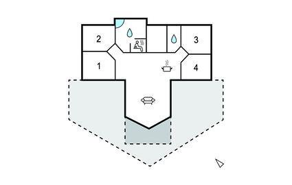 Badkamer (nr. 1) - Toilet: warm en koud water. Douche