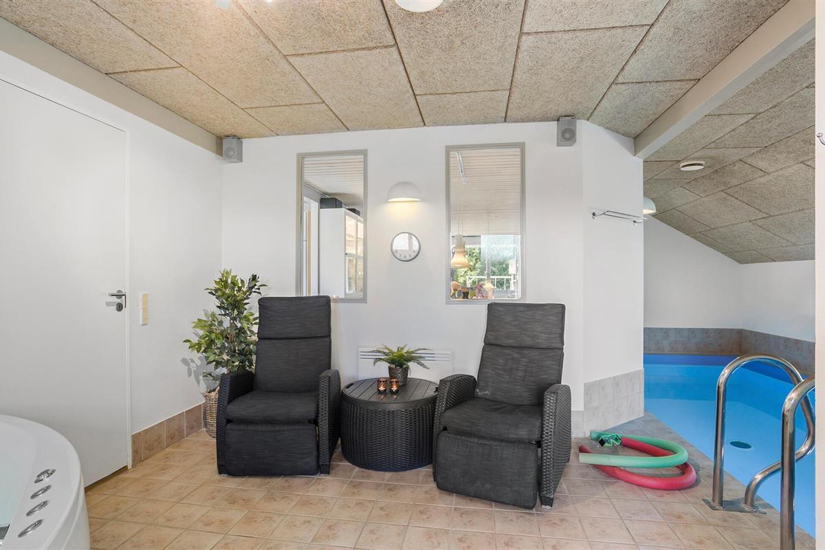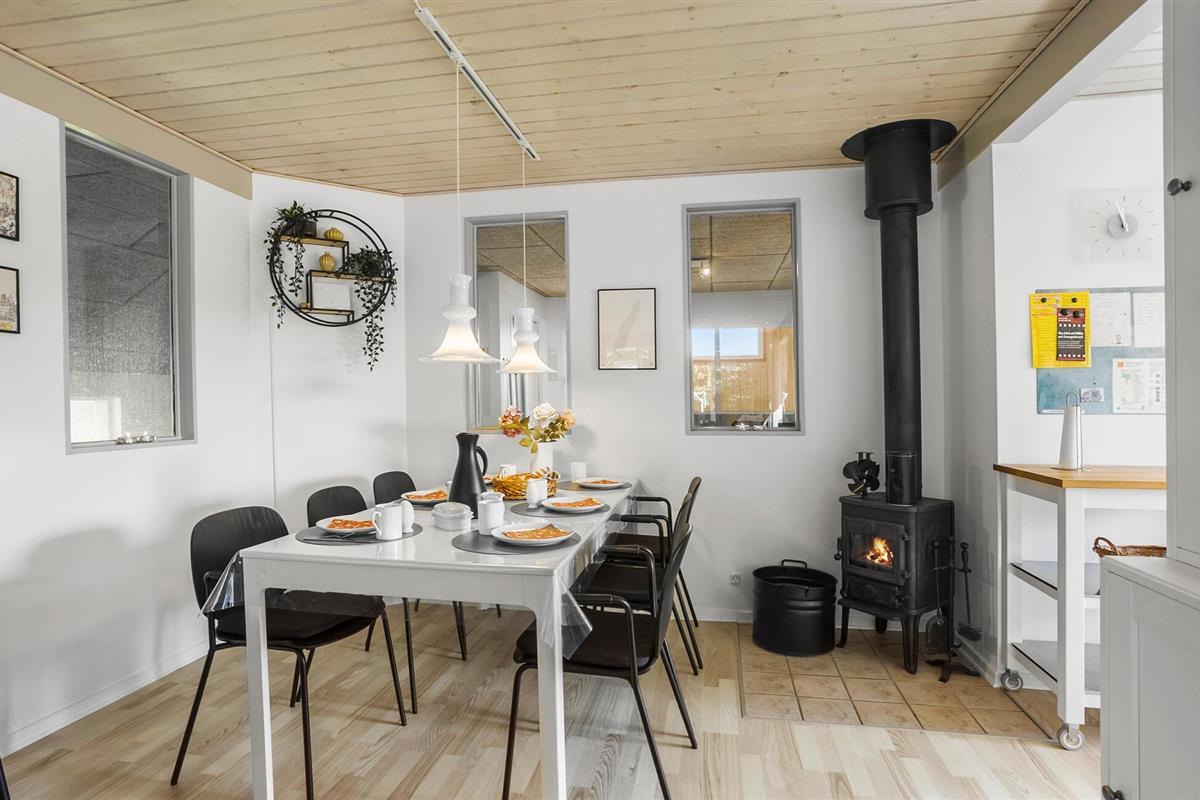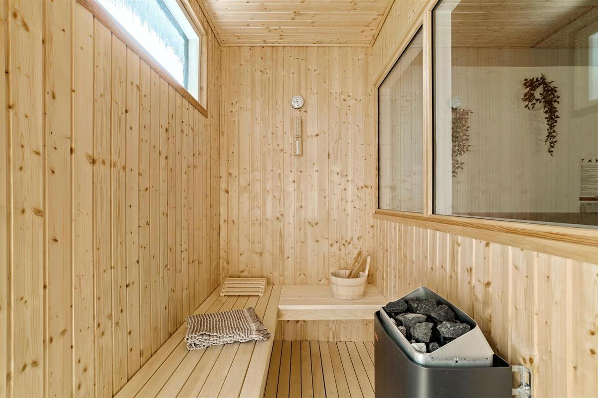 In het populaire vakantiehuisgebied bij Ristinge ligt dit mooie, gezellige en ruime houten huis, dat comfortabel en functioneel is ingericht. Houten vloeren in het hele huis, behalve in de badkamer en bij het zwembad. Het ligt op een tegen de wind beschermd natuurgrondstuk, omgeven door bomen. Hier worden rust en ontspanning gecombineerd met een actieve gezinsvakantie. Of natuuravonturen in de omgeving, of zwemmen in het zwembad gevolgd door verwennerij in de whirlpool en sauna. Vanuit de zwembadkamer met klinkervloer heeft u toegang tot het oostelijke terras. Niet ver van het huis ligt Ristinge Klitplantage met gemarkeerde wandelroutes in het omliggende natuurgebied. Een bezoek aan het bijzonder kindvriendelijke Hesselbjerg Strand mag niet ontbreken. Een bijzondere ervaring is het bekijken van de wilde paarden op de weilanden in het zuidelijke puntje van Langeland. Op slechts 7 km van het huis ligt de golfclub van Langeland en een put & take meer.