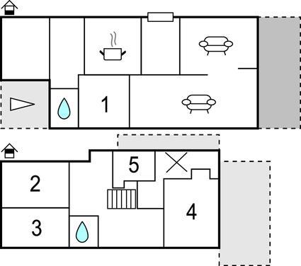 Slaapkamer (nr. 5) - 2 Slaapplaatsen. (1-persoonsbed(den)). 1 Slaapplaatsen. (Opklapbed(den) of matras(sen)).