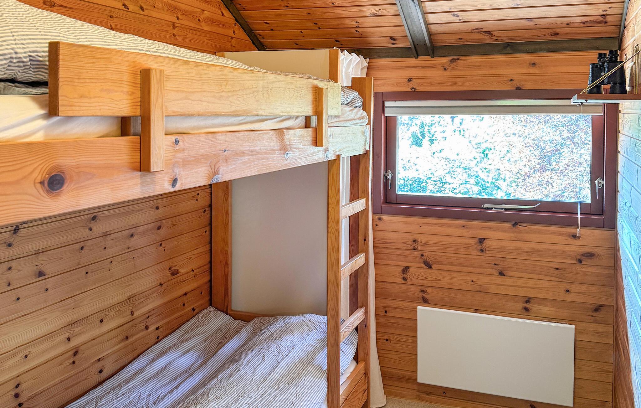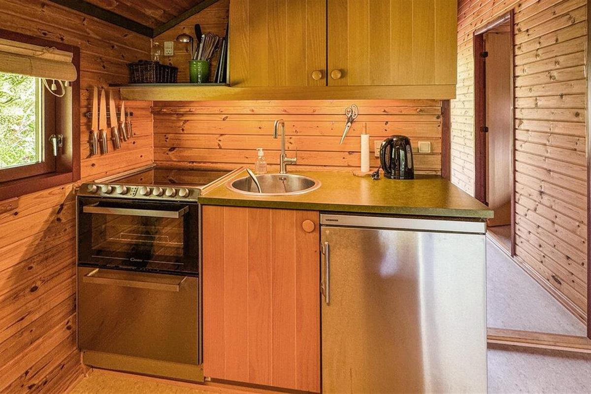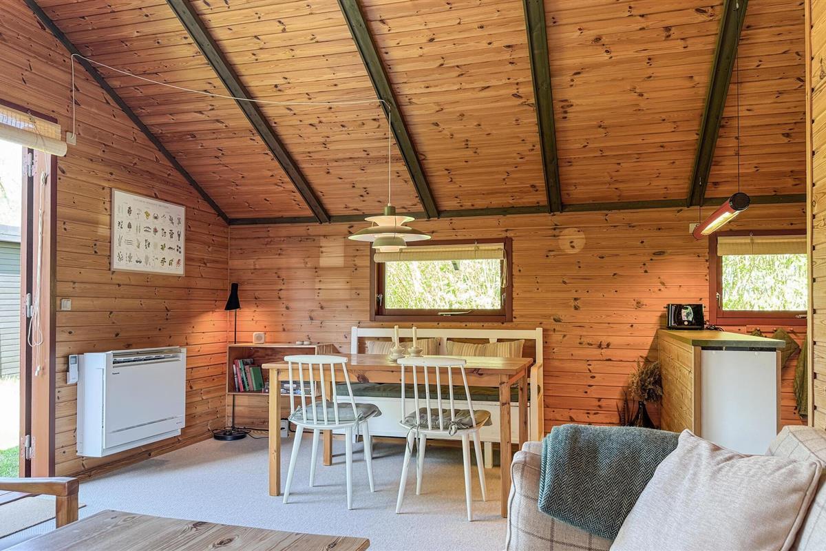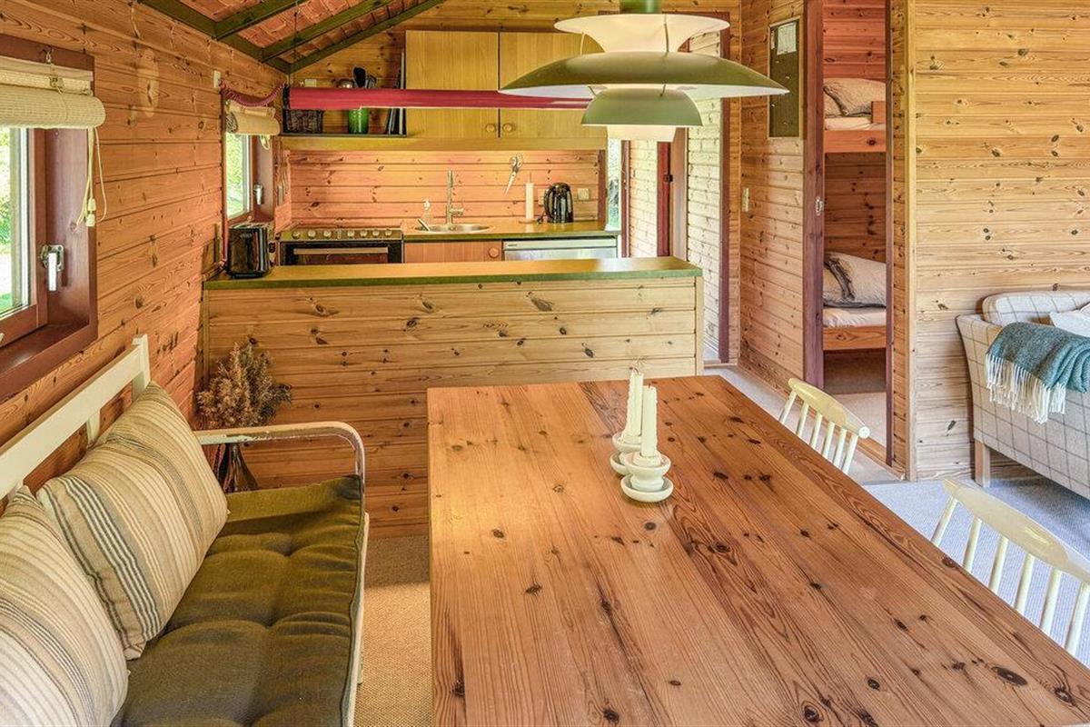 Geniet van de warme sfeer in je compacte huis met zijn lichtgekleurde houten lambrisering en liefdevol geselecteerde details. Ontspan op de gezellige bank, lees een boek in de alkoof, kook in de open keuken of neem plaats aan de eettafel voor een uitgebreid ontbijt.