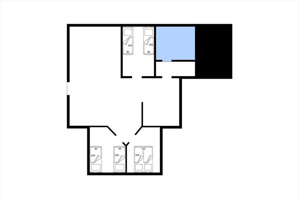 3 Schlafzimmer: 1 Doppelbett, 2 Betten, 2 Betten.