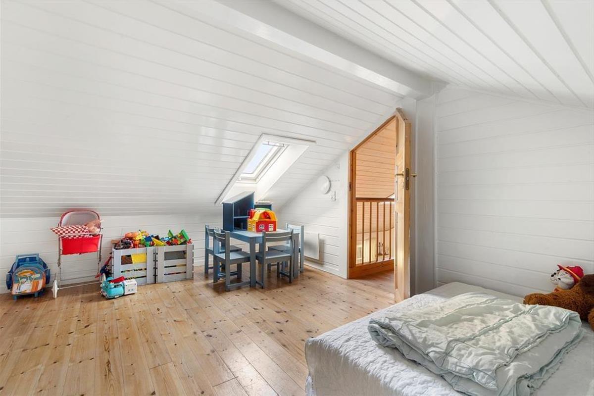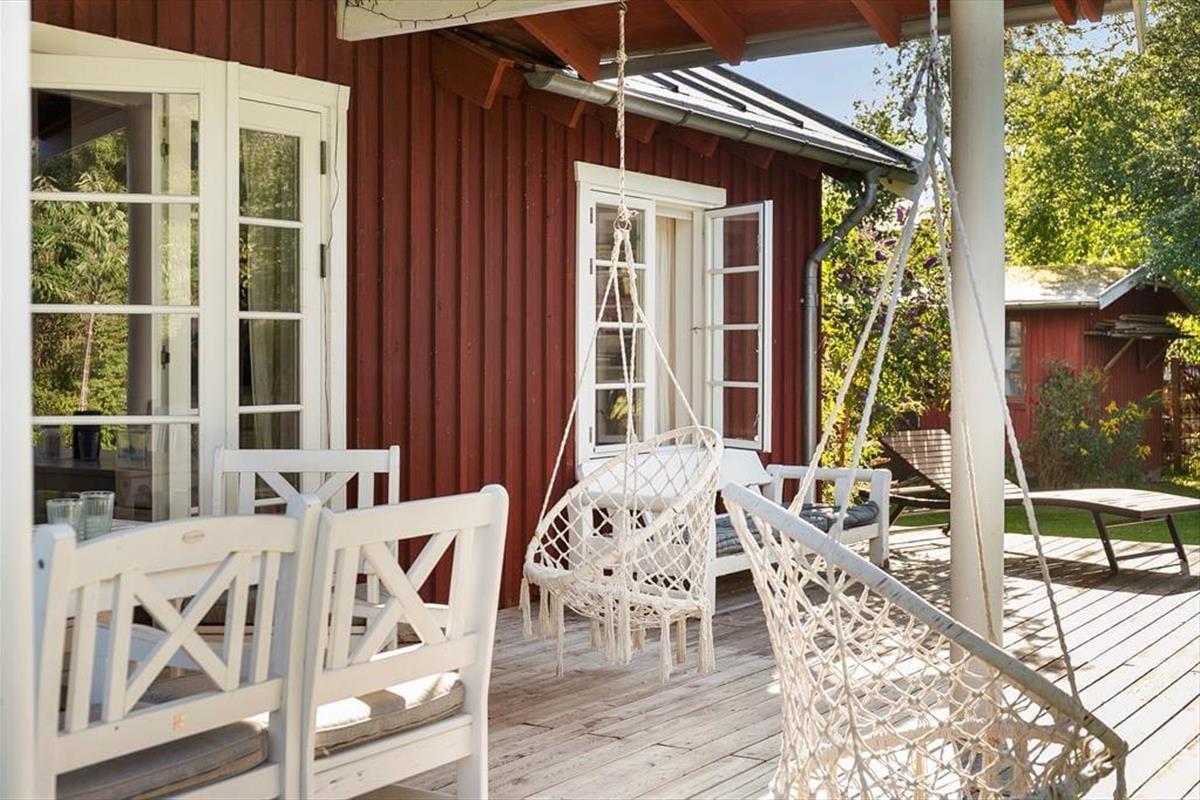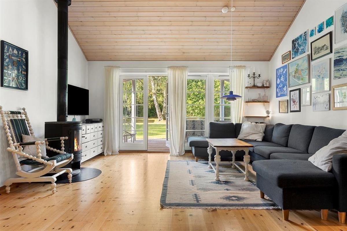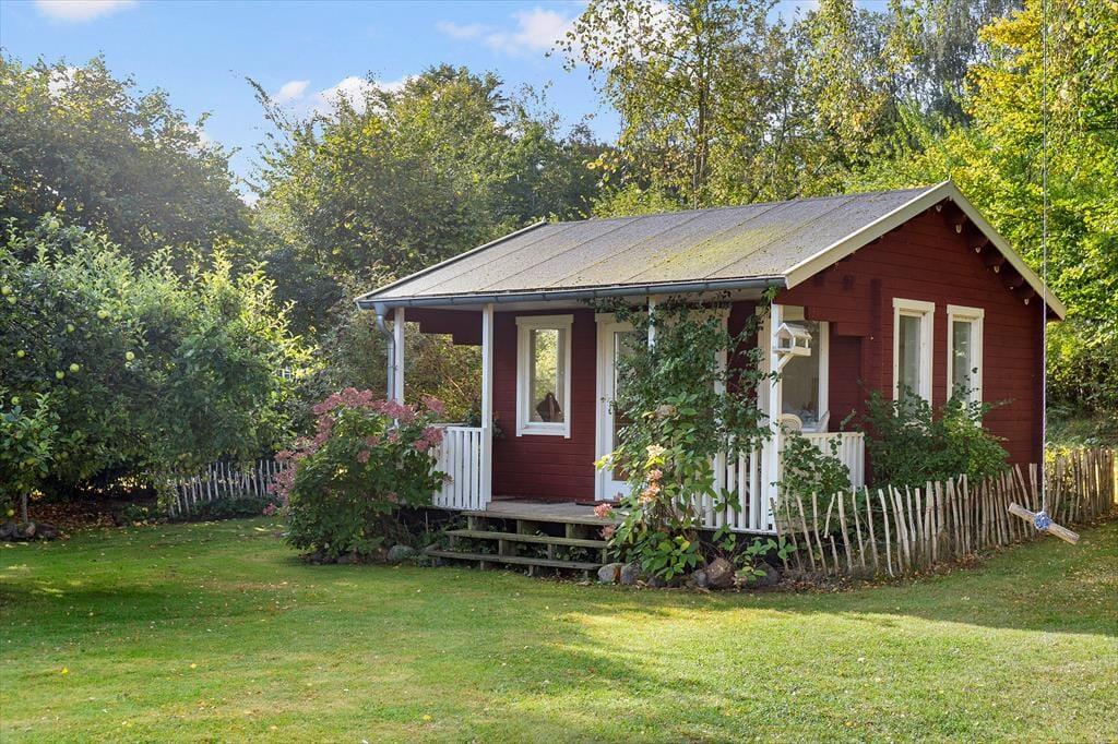 Hier erwartet Sie der schöne, geschlossene Garten – Sandkasten, Schaukeln und Rutsche zur großen Freude der Kleinen – genießen Sie ein Lagerfeuer im Garten, das den Rahmen für einen gemütlichen Abend mit Snobrød bildet.