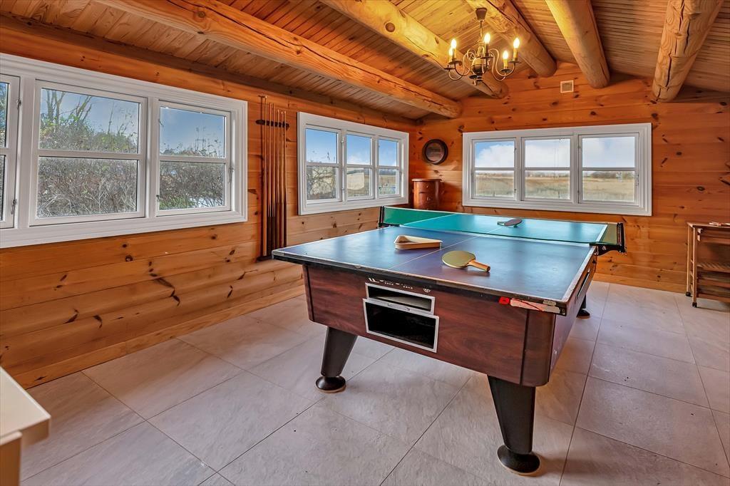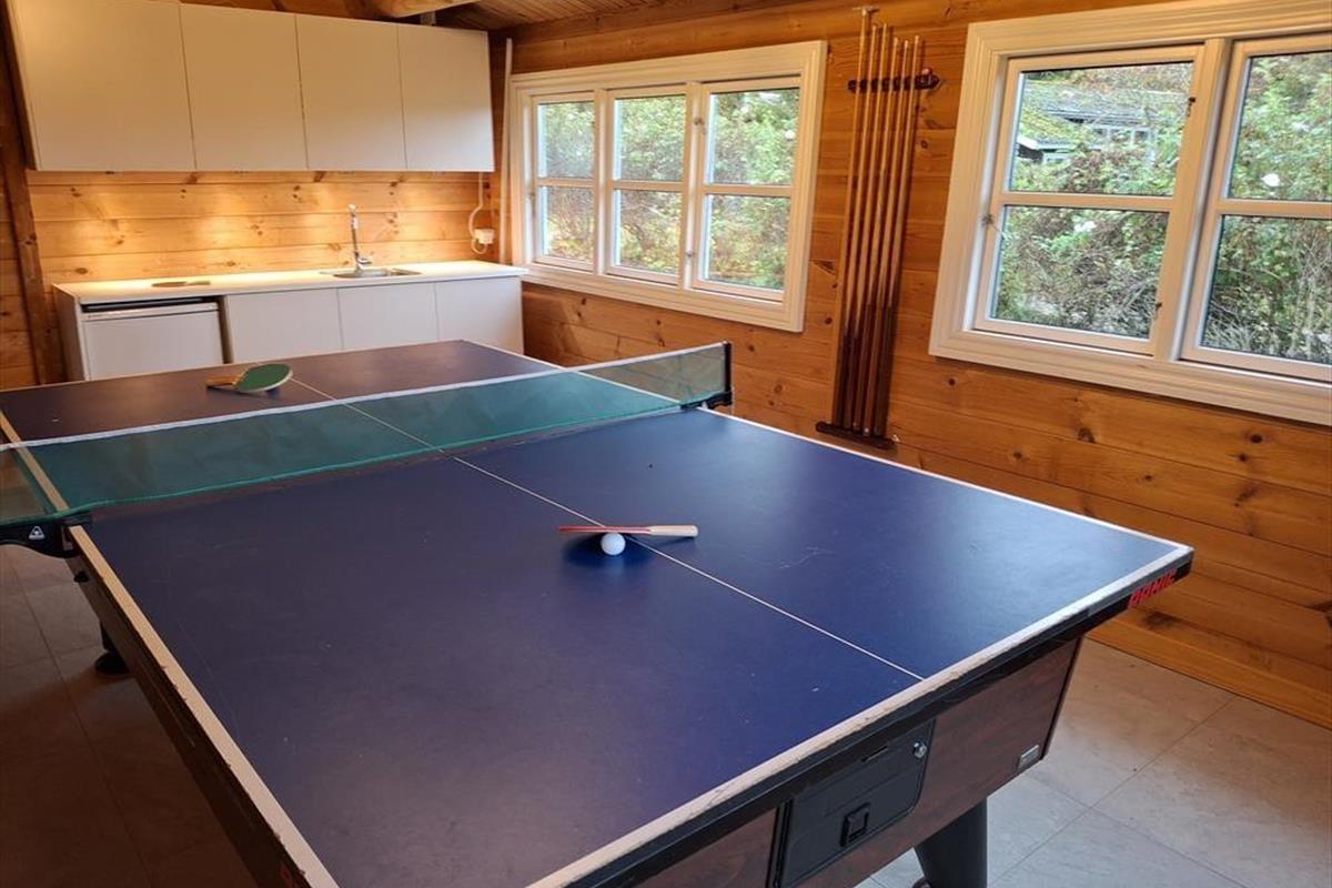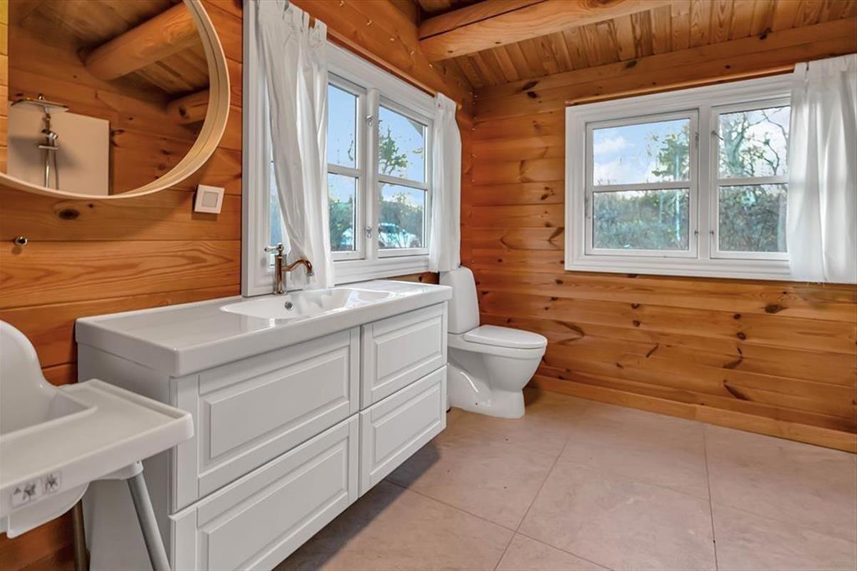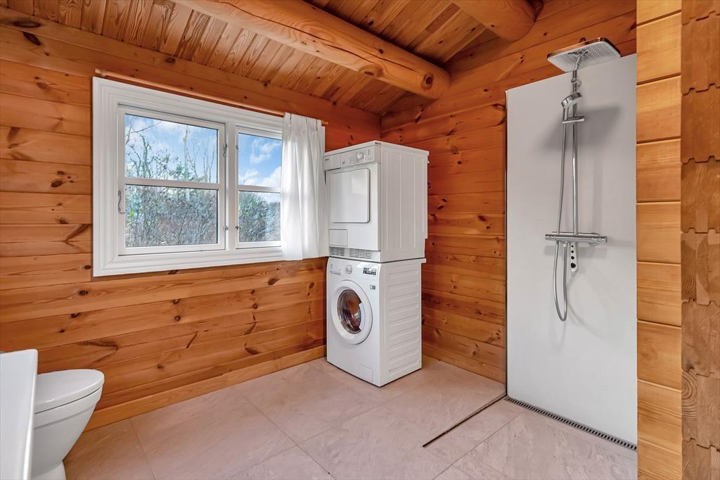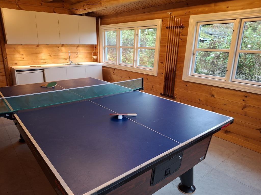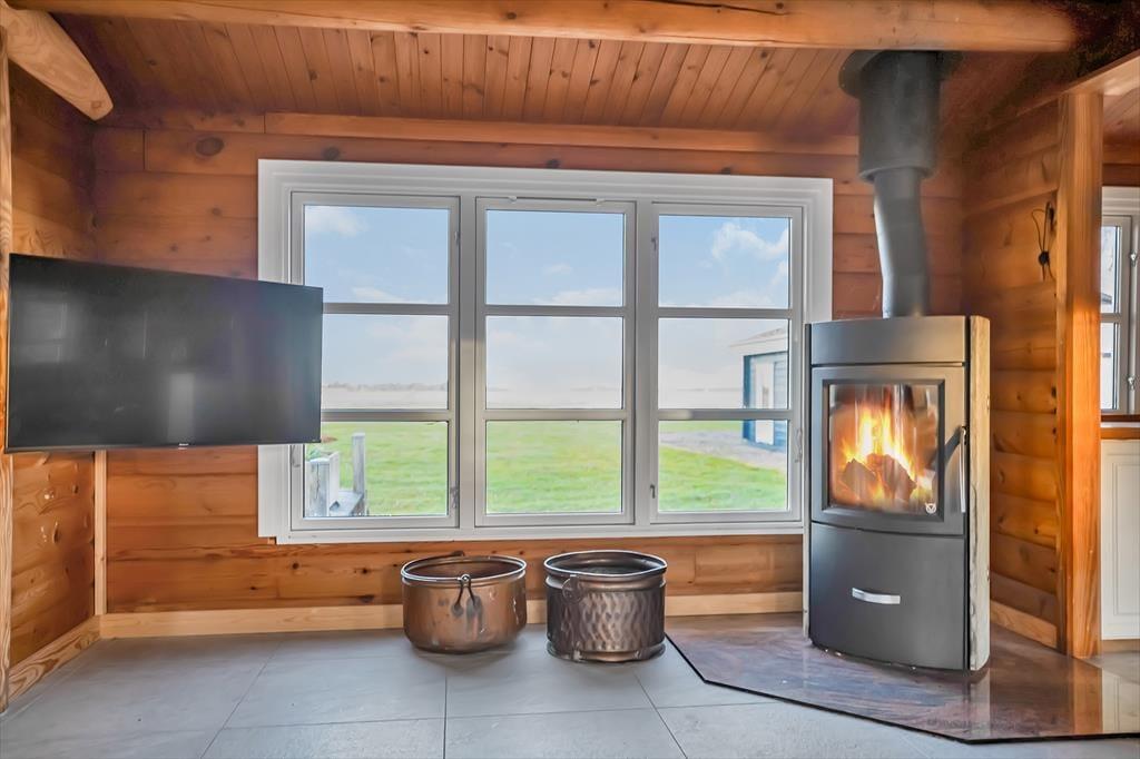 Wir betreten das Haupthaus und erkennen sofort, dass dies etwas Besonderes ist: ein Blockhaus, geschmackvoll eingerichtet, mit großen Fliesen auf dem Boden, einer großen offenen Küche, die an das Wohnzimmer und den Essbereich angrenzt. Überall hat man einen schönen Blick auf den Roskilde Fjord und die Brücke der Kronprinzessin Mary. mit Frederikssund im Hintergrund. Felder und Wiesen mit vielen Wildtieren direkt vor den Fenstern. Machen Sie es sich mit einem Glas Wein vor dem gemütlichen Holzofen gemütlich und beobachten Sie diese herrliche Szene. Das Haus verfügt über zwei Bäder und zwei Schlafzimmer; in einem davon wachen Sie mit dieser herrlichen Aussicht auf, so dass Sie am liebsten noch ein bisschen länger wach bleiben und die Aussicht genießen möchten. Das Nebengebäude ist ebenfalls ein Blockhaus im gleichen schönen Stil wie das Haupthaus und verfügt über ein Schlafzimmer mit Aussicht, ein Badezimmer und eine kleine Küchenzeile. Zusätzlich zu diesen schönen Bedingungen gibt es einen großen gemeinsamen Aktivitätsraum mit Billard und Tischtennis, so dass es ein großartiger Ort für einen Wettbewerb ist, um zu sehen, wer diese sportlichen Herausforderungen meistern kann.