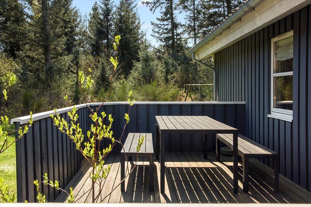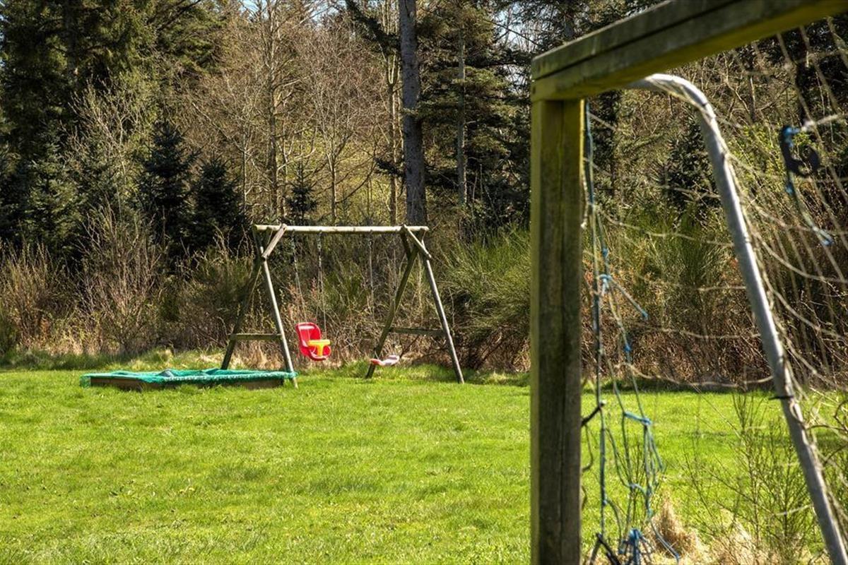 Wenn die Sonne scheint, ist der Außenbereich des Ferienhauses der perfekte Ort, um sich zu entspannen. Das große Naturgrundstück und der gepflegte Rasen bieten viel Platz für Spiel und Aktivitäten im Freien. Du kannst warme Sommerabende auf der großen Holzterrasse genießen – ob mit einem guten Buch in einer Liege, beim Grillen eines leckeren Abendessens oder bei einer ruhigen Auszeit mit Blick auf die Natur. Die ruhige Lage des Hauses ermöglicht es dir, die Geräusche der Natur zu hören – vom Zwitschern der Vögel bis hin zum sanften Wind, der die Bäume rauschen lässt. Hier kannst du den Stress des Alltags vergessen.