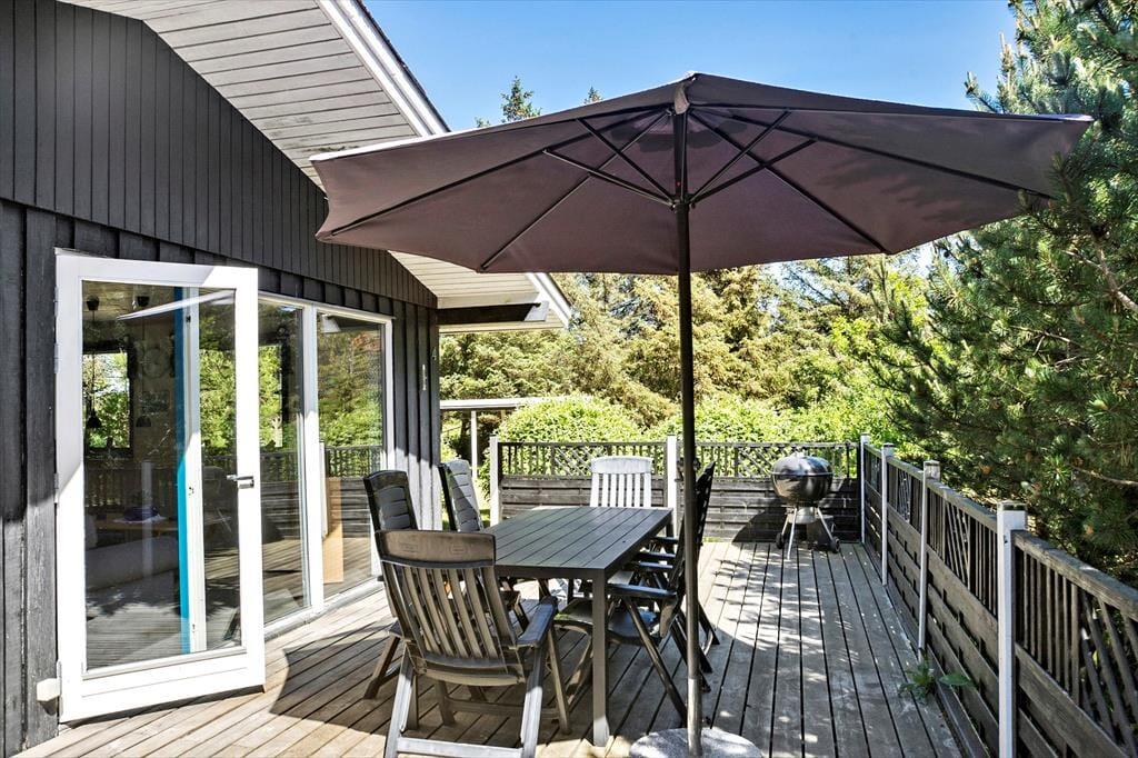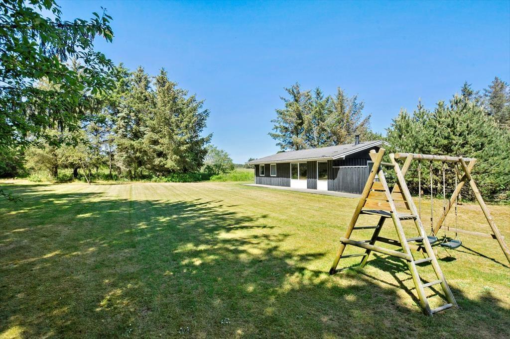 Das Ferienhaus liegt auf einem ungestörten Grundstück umgeben von Bäumen und verschiedenen Pflanzenarten. Auf dem großen Rasen können die Kinder stundenlang Fangen oder Fußball spielen. Das Haus verfügt über zwei schöne Terrassen, eine davon fast komplett abgeschirmt, sodass man im Windschatten sitzen und alle Mahlzeiten des Tages in der schönen Natur genießen kann. Für die Kleinsten gibt es einen Sandkasten und eine Schaukel und mit dem Grill und den Gartenmöbeln, die Ihnen zur Verfügung stehen, wird der Urlaub garantiert ein Erfolg.