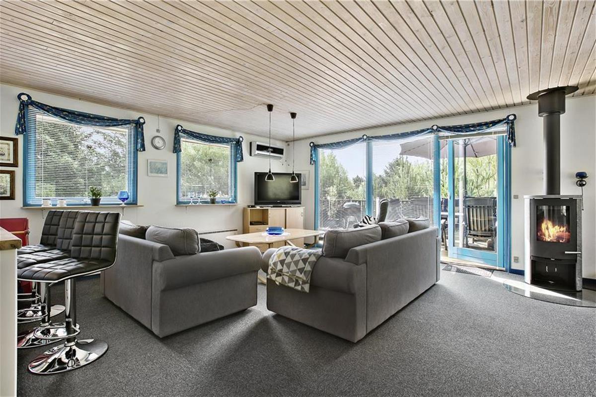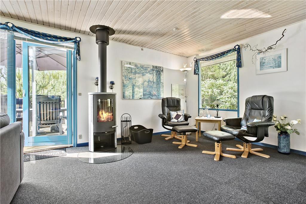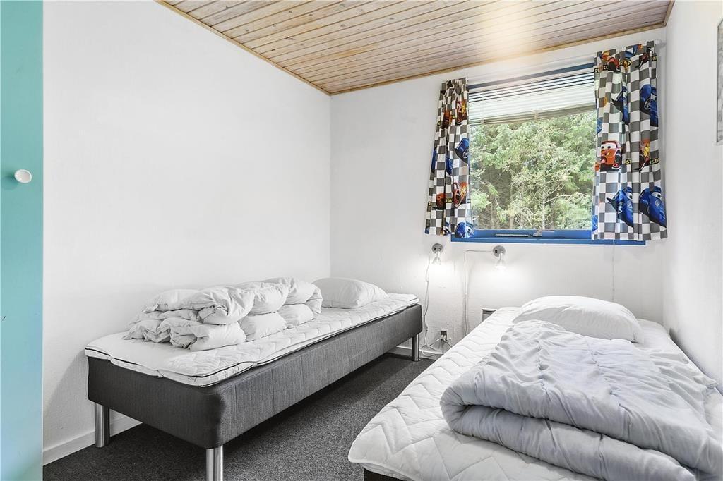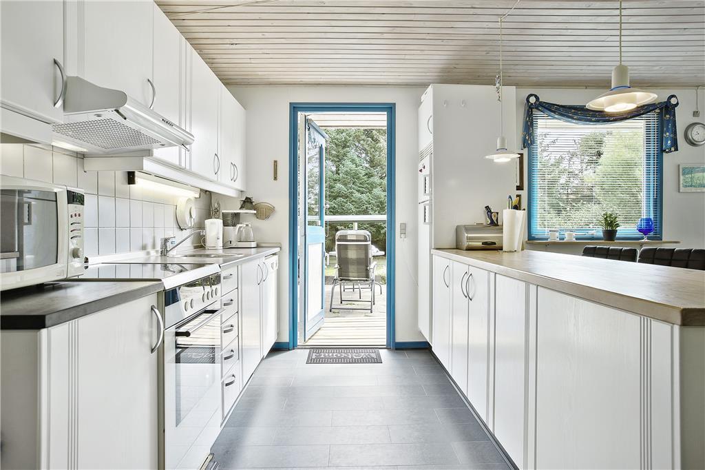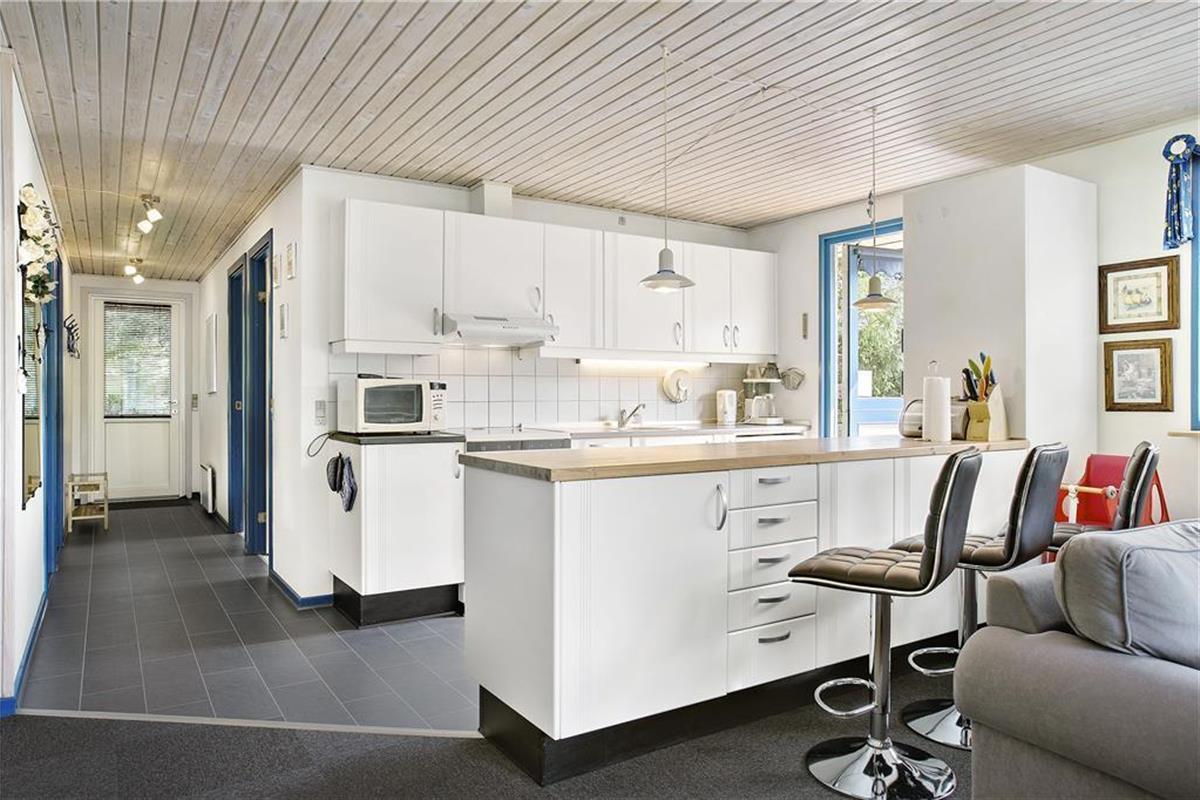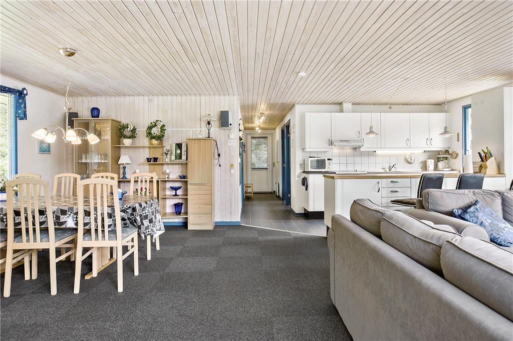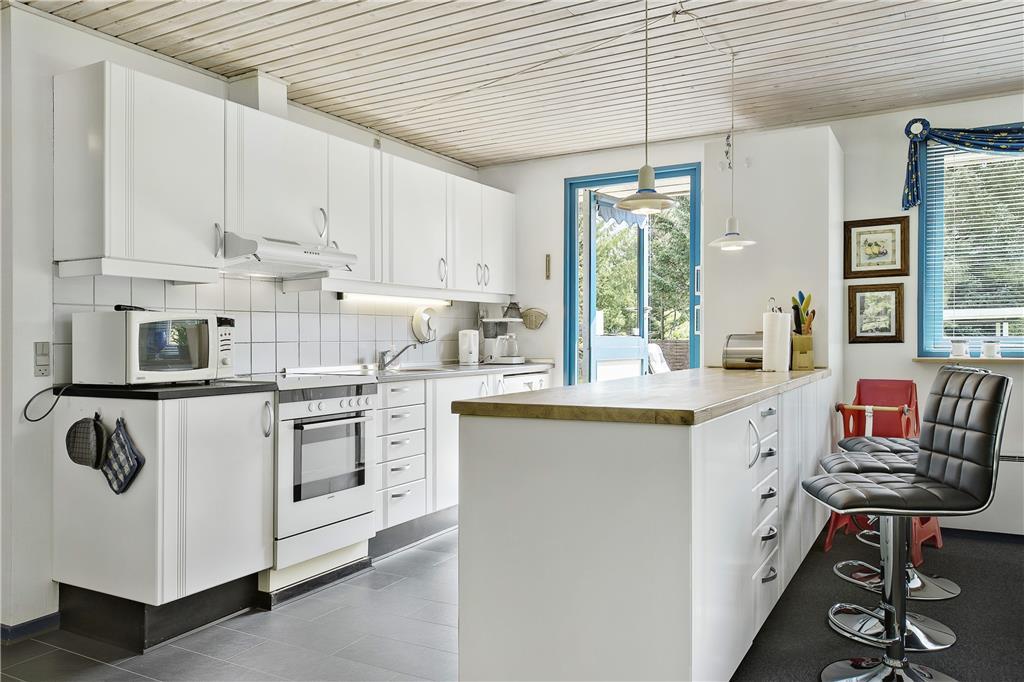 Das Haus ist schon etwas älter, wurde aber renoviert und ist sehr gepflegt. Besonders hervorzuheben ist die helle und moderne Küche, welche mit guten Haushaltsgeräten ausgestattet ist und in offener Verbindung zum gemütlich eingerichteten Aufenthaltsraum liegt. Hier ist Platz für die ganze Familie, beim gemeinsamen Kochen und Essen. Der angrenzende Wohnbereich lädt dazu ein, es sich auf dem Sofa gemütlich zu machen mit einem guten Buch oder einem Film, während im Kaminofen das Feuer knistert. Vom Aufenthaltsraum aus gelangt man außerdem zum Badezimmer, sowie zu den drei Schlafzimmern des Hauses. Zwei der Zimmer sind mit Doppelbetten ausgestattet, während das dritte mit zwei Einzelbetten ausgestattet ist. Das Haus eignet sich daher sowohl für eine Familie mit Kindern, als auch für ein oder zwei Paare, die gerne einen tollen Urlaub miteinander verbringen möchten.