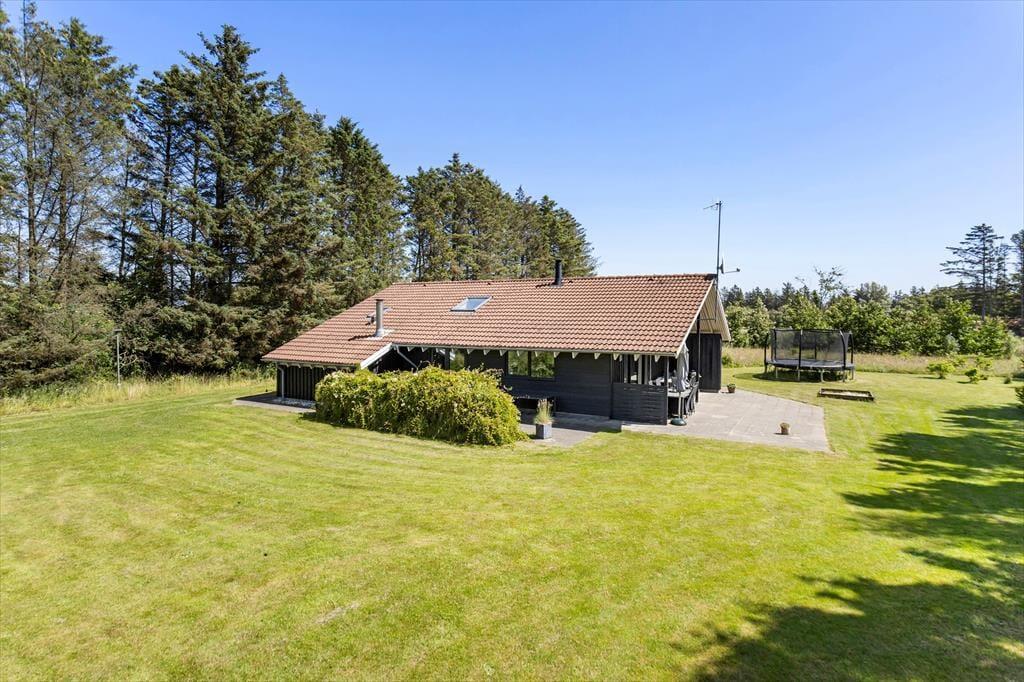 Das Ferienhaus liegt auf einem 5.524 m2 großen Rasengrundstück, umgeben von Bäumen. Eine Steinterrasse ist um das ganze Haus herum verlegt, sodass Sie jederzeit ein Plätzchen an der Sonne oder im Schatten finden. Der überdachte Teil der Terrasse in Richtung Süden lädt zum Grillen ein, während die Kinder auf der großen Wiese nach Herzenslust spielen und toben können. Terrassenmöbel, Liegestühle sowie ein Grill stehen Ihnen selbstverständlich zur freien Verfügung.