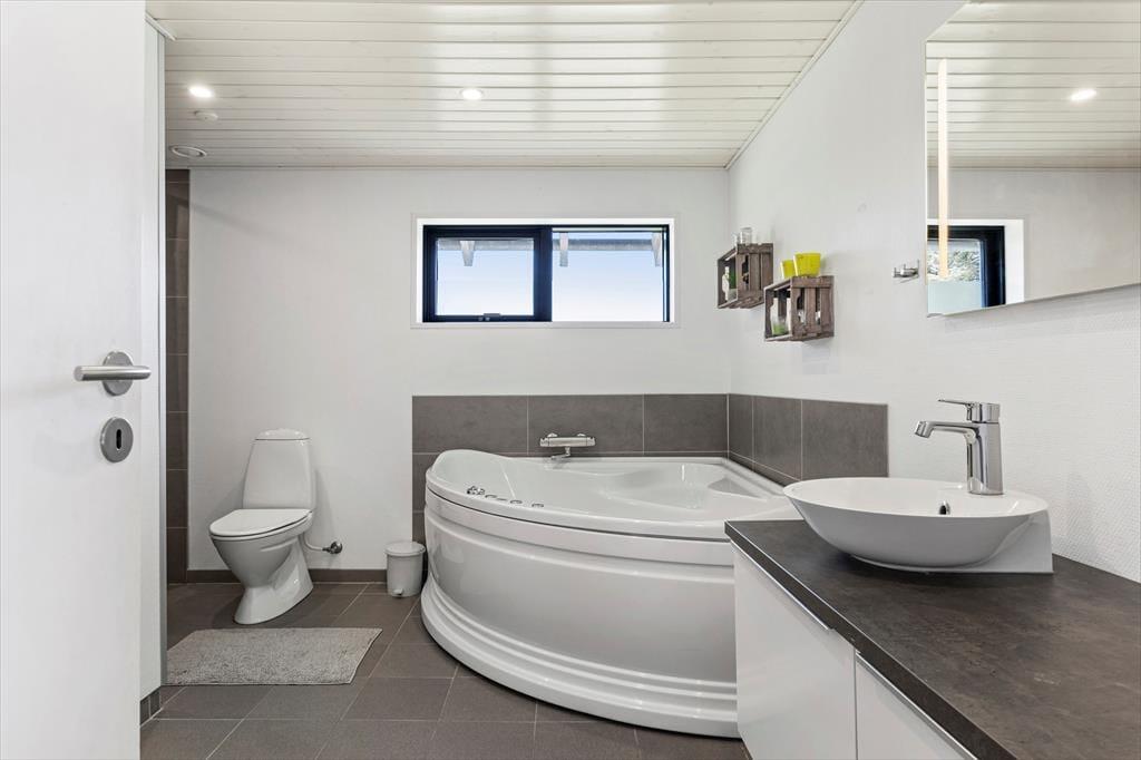 Das Ferienhaus liegt in Nr. Lyngby, nur wenige Kilometer nördlich von Løkken. Hier erwartet Sie faszinierende, raue Natur mit einer beeindruckenden Steilküste und tollen Aussichtspunkten über die Jammerbucht. Die Nordsee ist nur 900 Meter vom Haus entfernt und auch wenn der Strand nicht so breit ist wie in Løkken selbst, haben Sie auch in Nr. Lyngby tolle Möglichkeiten, am Strand zu liegen und zu baden. In der näheren Umgebung befinden sich auch viele tolle Ausflugsziele, unter anderem das tolle Wandergebiet Rubjerg Klitplantage, der alte Leuchtturm Rubjerg Knude Fyr, welcher auf einer großen Wanderdüne liegt, der Family Farm Fun Park mit vielen niedlichen und spannenden Tieren, sowie das Nordsee Oceanarium in Hirtshals, wo man das Leben in und an der Nordsee aus nächster Nähe erleben kann.