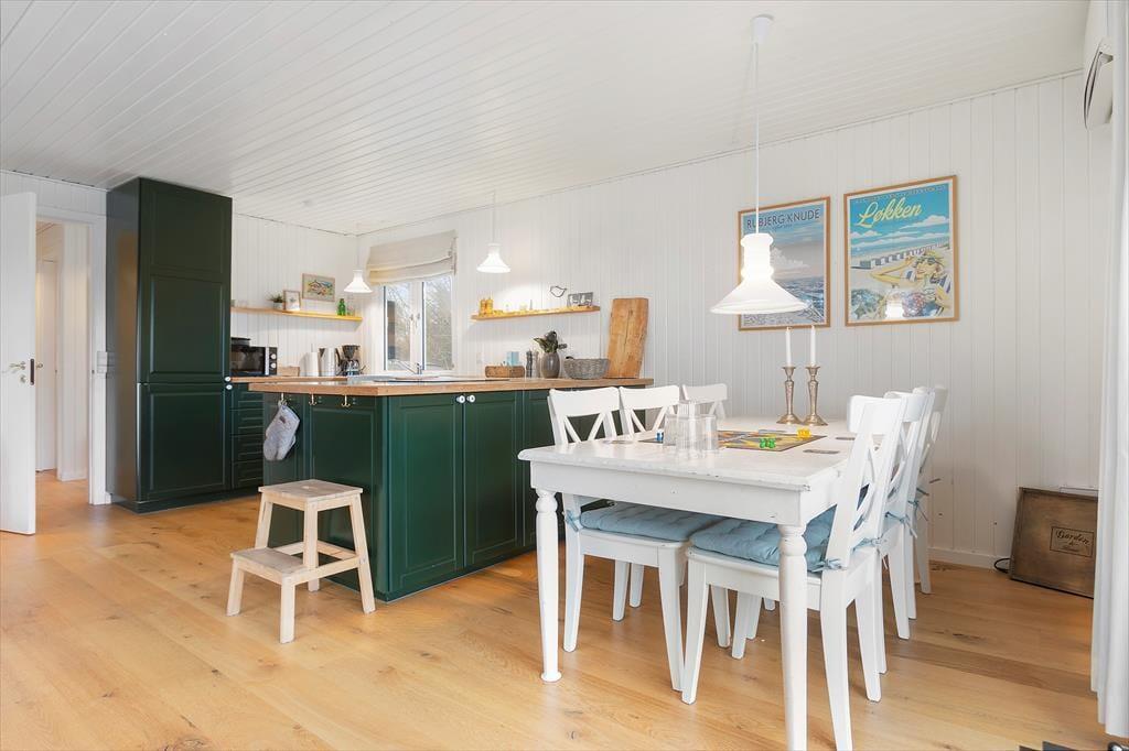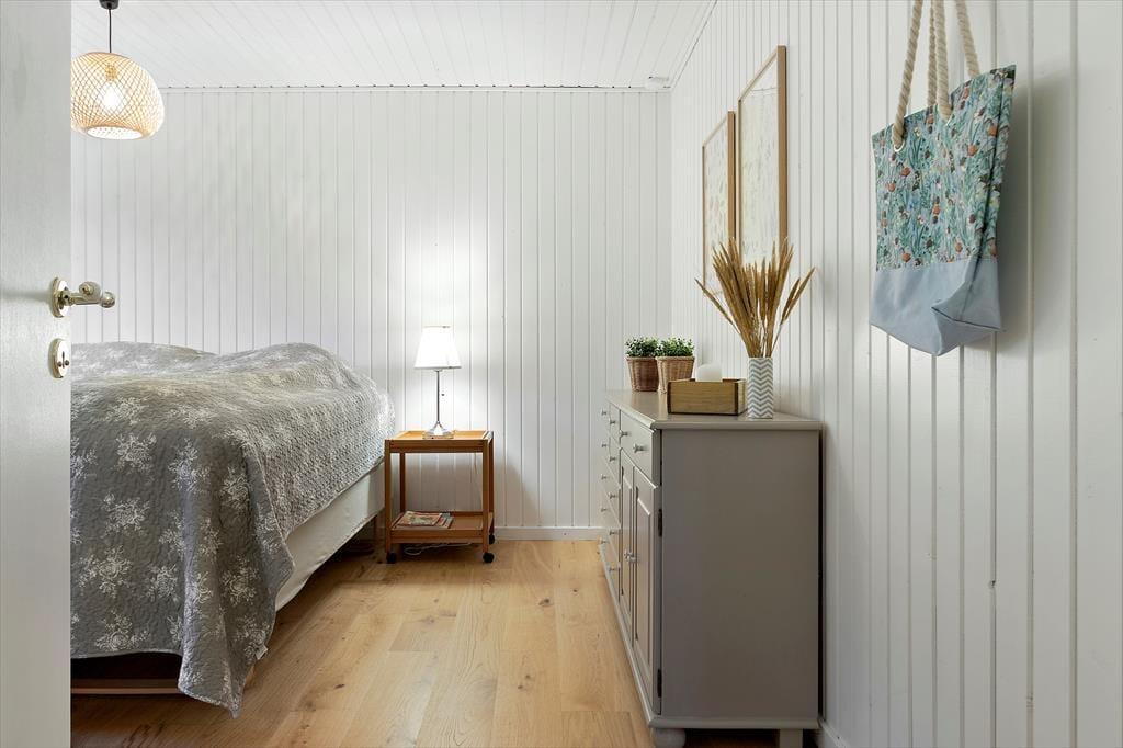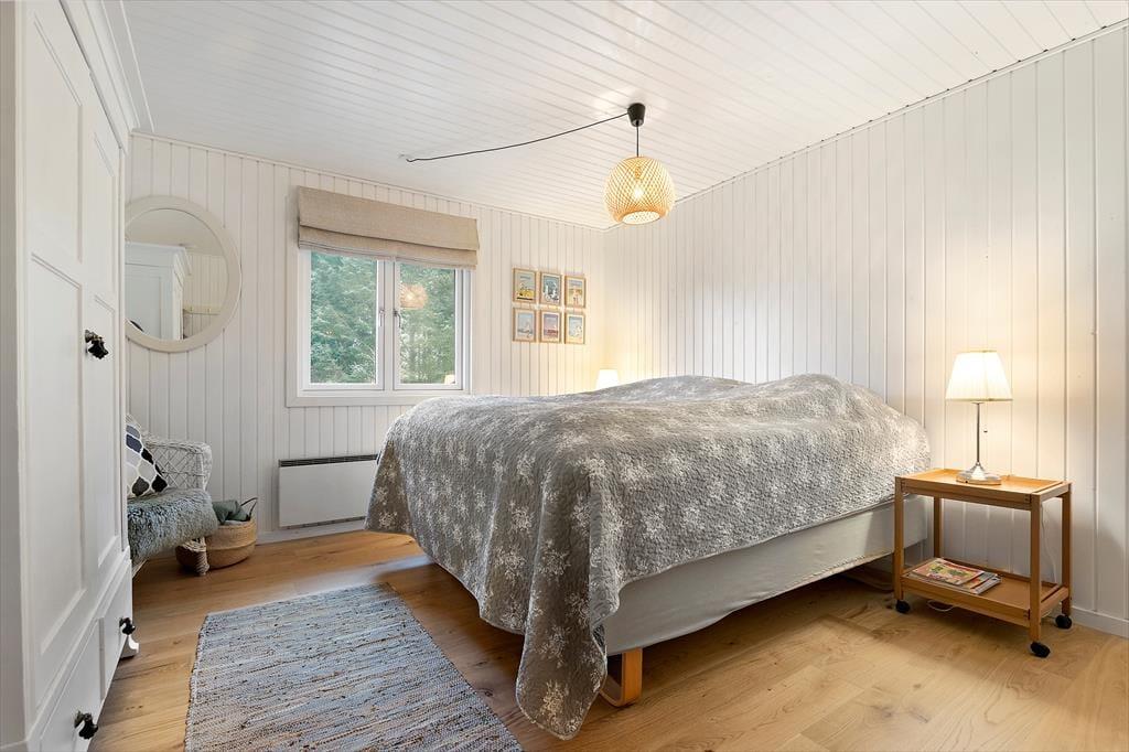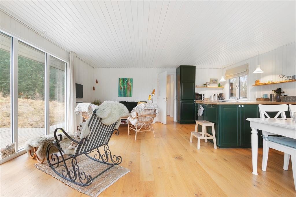 Eine umfassende Renovierung fand im Jahr 2020 statt, sodass das Ferienhaus innen wie außen besonders einladend erscheint. Im Inneren sind die 86 m² des Hauses sinnvoll auf drei Schlafzimmer, ein Badezimmer und ein gemütliches Wohnzimmer mit offener Küche verteilt. Überall sorgen weiß gestrichene Holzwände und die charmante Einrichtung für eine ganz besondere Ferienhaus-Atmosphäre. Obwohl alle Räume einladend sind, wird das Wohnzimmer wahrscheinlich der Ort sein, an dem ihr die meiste wache Zeit verbringt. Hier könnt ihr kochen, lange am Esstisch sitzen oder es euch auf dem Sofa gemütlich machen, während ihr Serien auf dem Flachbildschirm streamt oder einfach das Flackern des Kaminofens genießt.