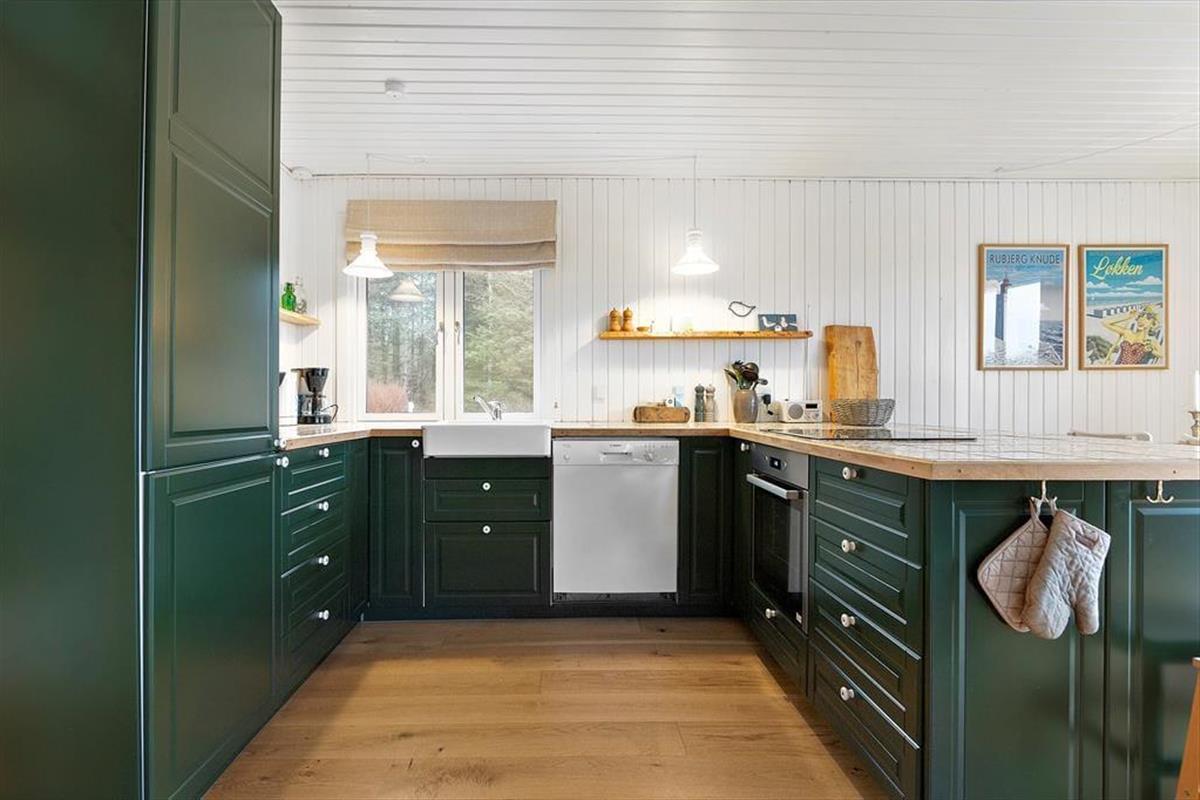 Das Ferienhaus befindet sich in der kleinen, abgeschlossenen Straße Bævervej in Nr. Rubjerg. Es ist ein grünes und ruhiges Feriengebiet nahe der Westküste, nur eine kurze Autofahrt von Løkken und Lønstrup entfernt. Noch näher liegt die Rubjerg Knude, die beeindruckend große Wanderdüne, die sich langsam in Windrichtung bewegt. Vom Gipfel der Düne aus könnt ihr den Blick über die Jammerbucht genießen und den Rubjerg Knude Leuchtturm erleben, der 2019 um 80 Meter landeinwärts versetzt wurde, um nicht ins Meer zu stürzen. Die schöne Natur lädt zu Wanderungen auf den vielen guten Pfaden ein, und natürlich bietet es sich auch an, bei entsprechendem Wetter Zeit am Strand zu verbringen.
