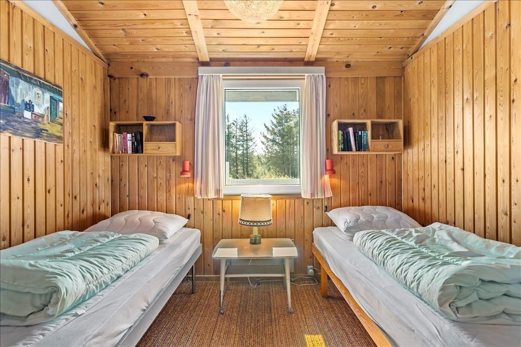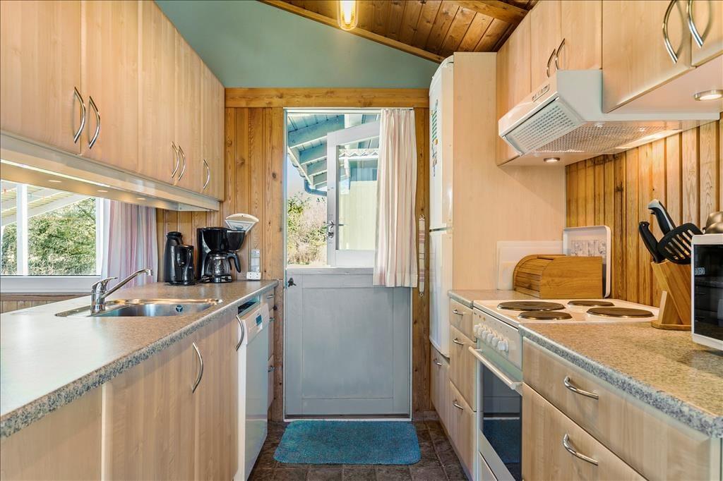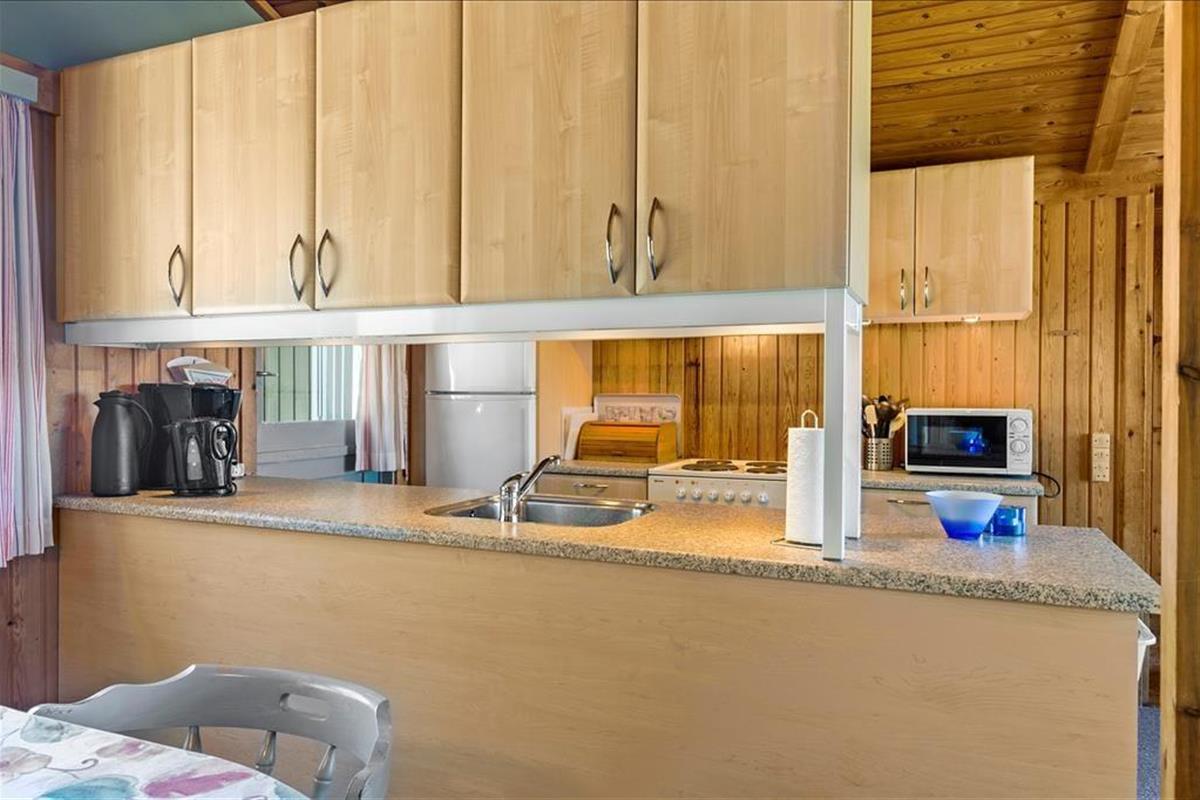 Das 68 m² große Holzferienhaus ist ein wunderbarer Ort, um die Tage zu verbringen. Neben einem Badezimmer und drei Schlafzimmern mit insgesamt sechs Schlafplätzen bietet das Haus einen charmanten Wohnbereich mit Wohnzimmer und Küche in offener Verbindung. Hier können Sie kochen, Brettspiele am Esstisch spielen und sich mit einem guten Film auf dem Sofa entspannen – vielleicht sogar mit Feuer im Kamin, wenn es draußen kühl ist. Bei wärmerem Wetter können Sie stattdessen die angrenzende Veranda nutzen, von der aus Sie die grüne Umgebung genießen können. Und wer weiß? Vielleicht sehen Sie Rehe draußen vorbeiziehen, während Sie drinnen Ihren Kaffee genießen.