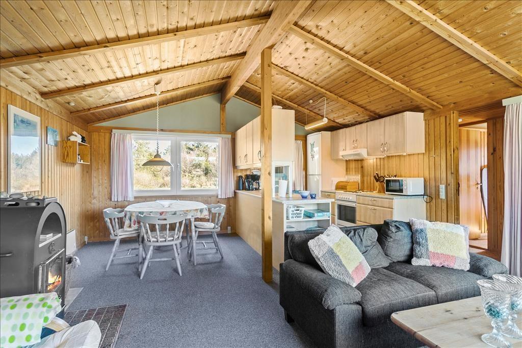 Das Ferienhaus liegt in einer Sackgasse in einer ruhigen und naturschönen Ferienhaussiedlung. Nur wenige hundert Meter westlich führt die steile Klippe hinunter zum Strand: Der Blick von oben ist atemberaubend, und wenn Sie hinunter zur Nordsee möchten, können Sie die nächste Treppe suchen und den Abstieg beginnen. Sie können auch einen Ausflug zur Rubjerg Knude machen, wo der schöne Leuchtturm einsam auf der beeindruckenden Wanderdüne thront. Oder Sie besuchen Lønstrup, wenn Sie Lust auf ein Restaurant, Geschäfte oder die vielen schönen Galerien der Küstenstadt haben.