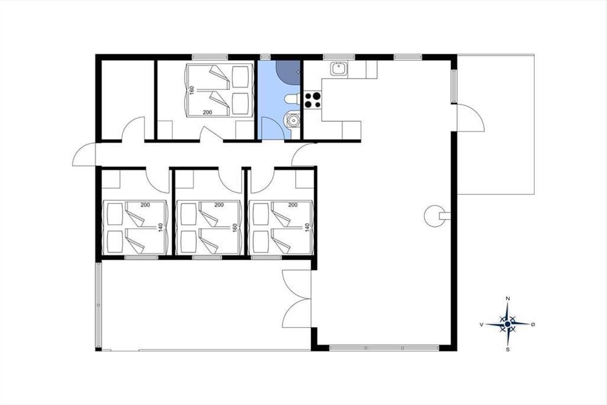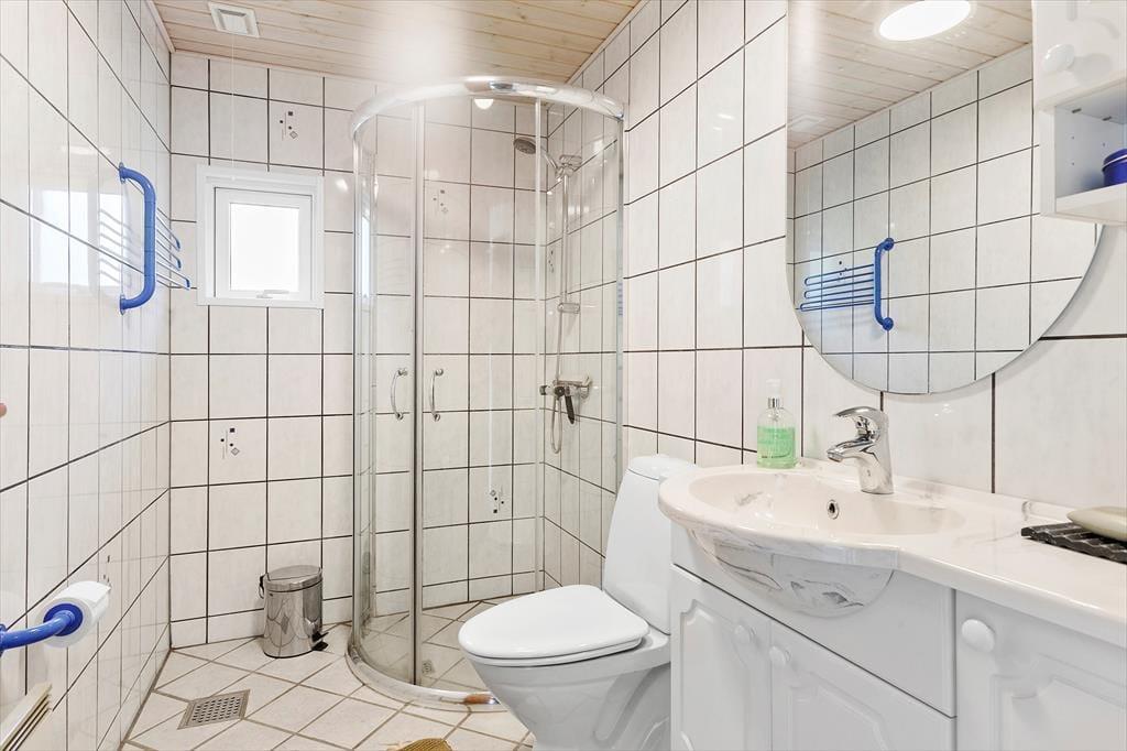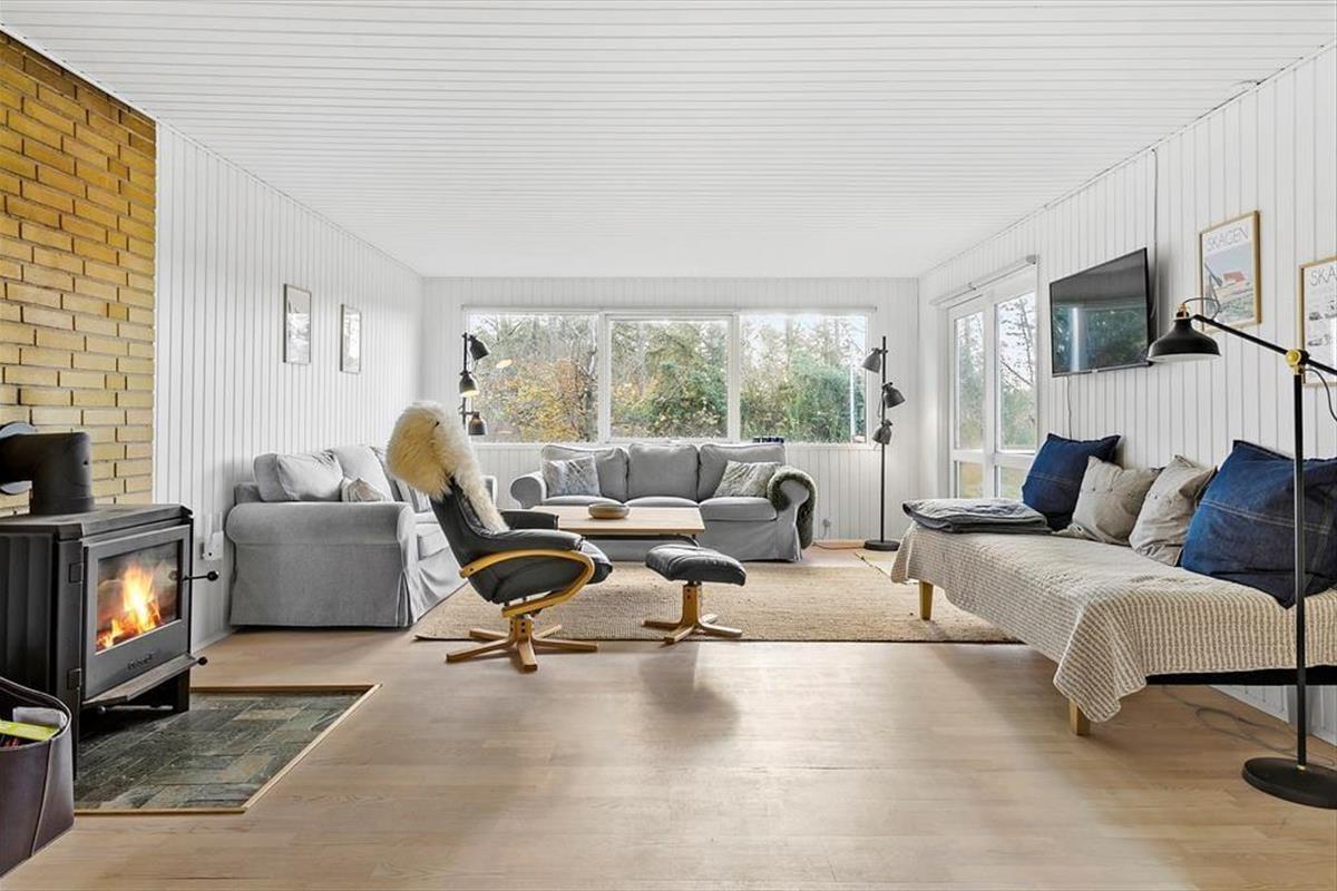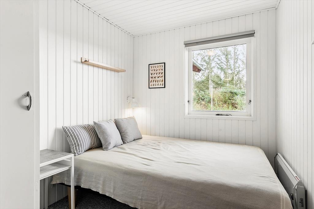 Das 90 m² große Haus hat eine wunderbare Atmosphäre und eine gut funktionierende Einrichtung, sodass es sich drinnen gut leben lässt. Der Grundriss ist perfekt für sechs Personen: Es gibt vier Schlafzimmer und ein Badezimmer mit Dusche und Fußbodenheizung direkt daneben. Der größte Raum im Haus ist das Wohnzimmer, das mit schönen Möbeln, einem Kaminofen und einer funktionalen offenen Küche mit Geschirrspüler, Kühlschrank mit Gefrierfach, Mikrowelle und vielem mehr ausgestattet ist. Das Licht, das in den Wohnraum fällt, ist hier angenehm, und die beiden Terrassentüren machen es einfach, die beiden Terrassen des Hauses zu nutzen.