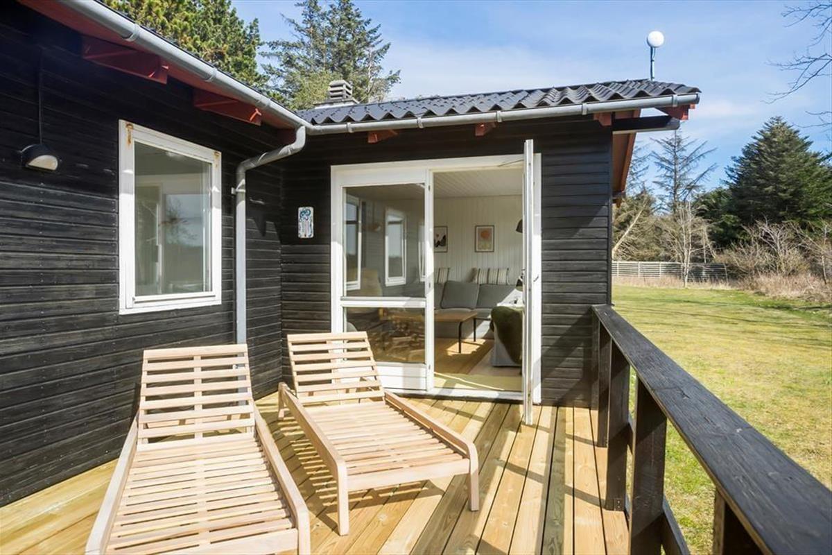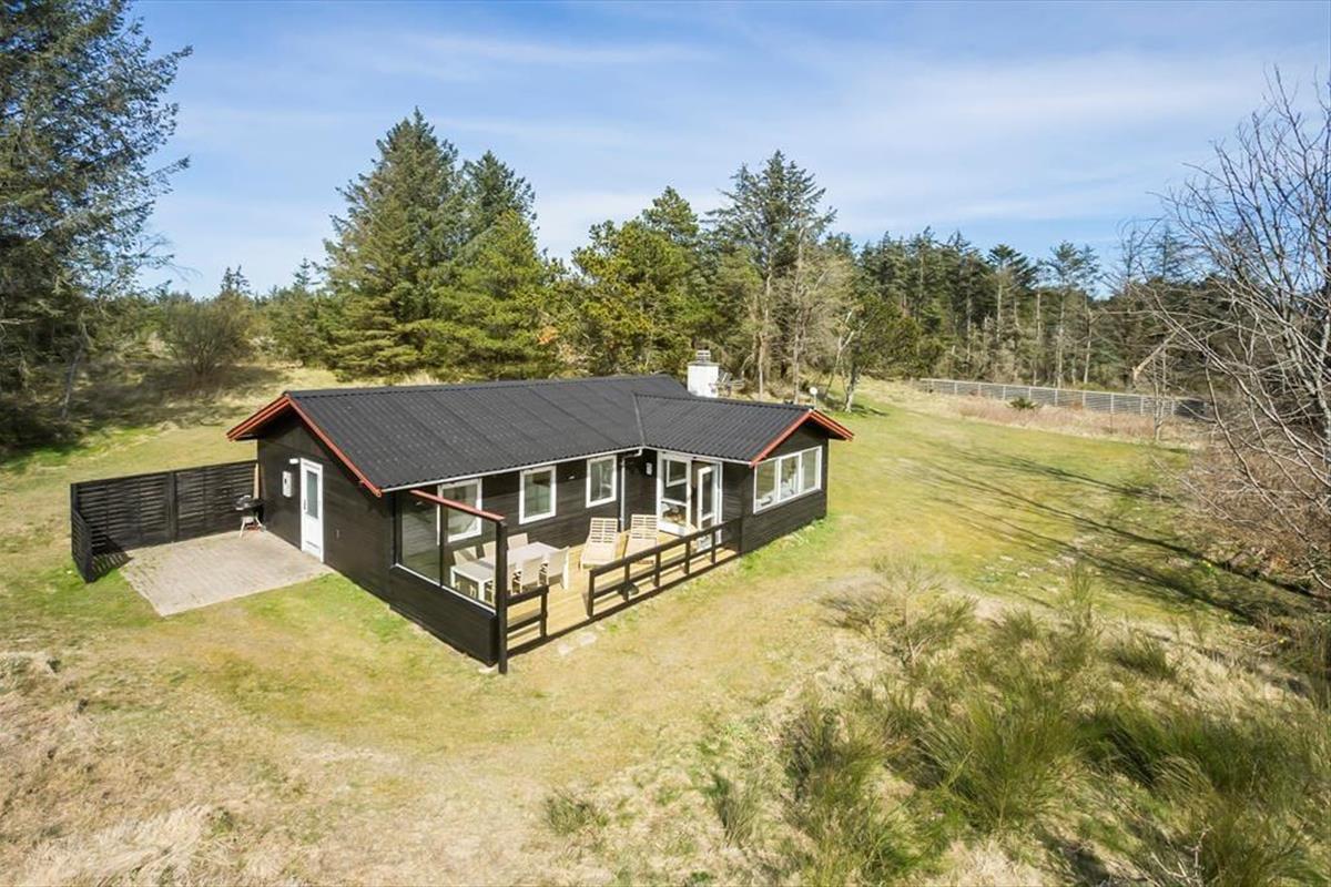 Dieses schöne Holzferienhaus ist der perfekte Ort, um sich zu entspannen und in Ferienmodus zu kommen. Das Haus selbst ist hell und gemütlich eingerichtet, und draußen können Sie die Sonne auf der Terrasse genießen, mit Blick auf die wunderschöne Natur rund um Rubjerg.