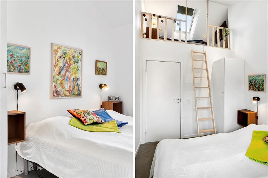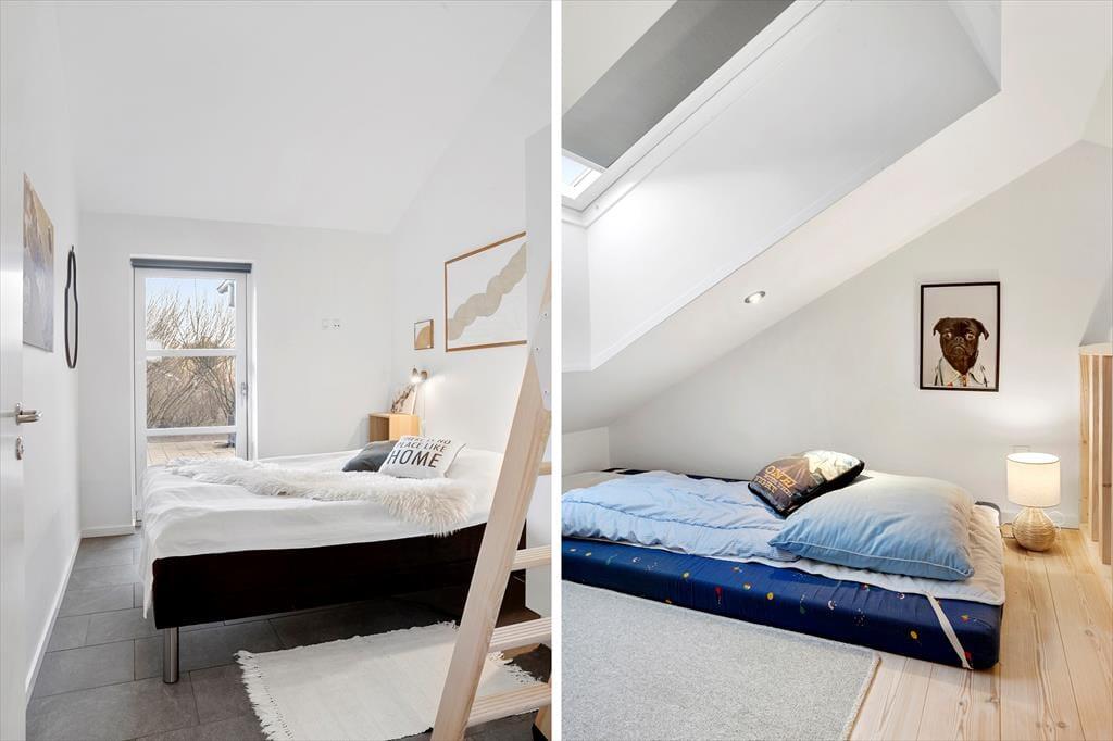 Die 10 Betten im Erdgeschoss des Ferienhauses verteilen sich auf vier Schlafzimmer und das Annex, dazu kommen vier gute Hems (Schlafböden), die vor allem für Kinder und Jugendliche gedacht sind. Auch die Hems sind mit Betten und Matratzen ausgestattet. Wollt ihr mit mehr als 10 Personen im Haus sein, ist dies nach Absprache mit uns bei Løkken möglich.