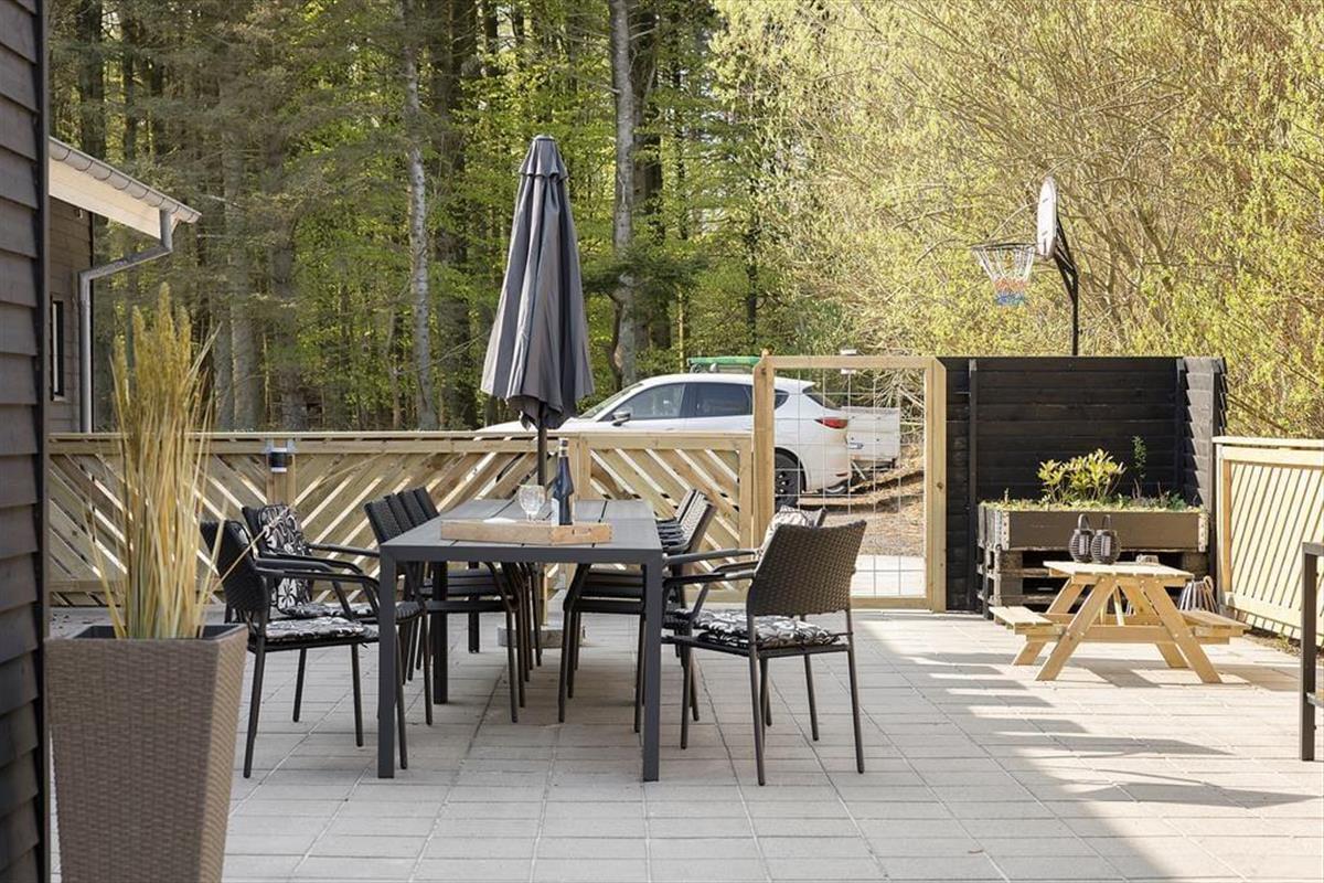 Die vielen Türen von Schlafzimmern und Wohnbereich führen direkt auf die große Terrasse, sobald die Sonne scheint. Ein Teil der Terrasse ist eingezäunt und besonders hundefreundlich mit einem 8 m² großen Hundezwinger. Wenn ihr davon träumt, im Freien zu kochen, stehen euch sowohl ein Holzkohlegrill als auch ein Gasgrill zur Verfügung, um die Familie mit einer sommerlichen Mahlzeit zu verwöhnen. Während ihr euch mit dem Kochen beschäftigt, haben die anderen reichlich Platz zum Spielen auf der großen Rasenfläche. Es gibt Fußballtore für ein Familienmatch, Schaukeln und einen Spielturm mit Rutsche für die Kinder. Ihr könnt die Familie auch auf der Petanque-Bahn herausfordern oder Basketball spielen.