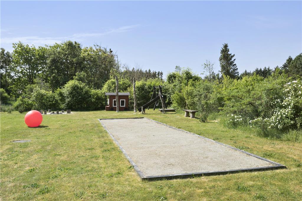 Der Außenbereich des Ferienhauses bietet viele spannende Möglichkeiten und Aktivitäten. Das Grundstück bietet viel Platz für draußen Spielen und Entspannen, unter anderem rund um den schönen Lagerfeuerplatz. Dieser Ort ist ideal für Familien mit Kindern jeden Alters und bietet auch eine Petanque-Bahn, ein Spielhaus, Schaukeln und einen Sandkasten sowie ein Volleyball- und Badmintonnetz.